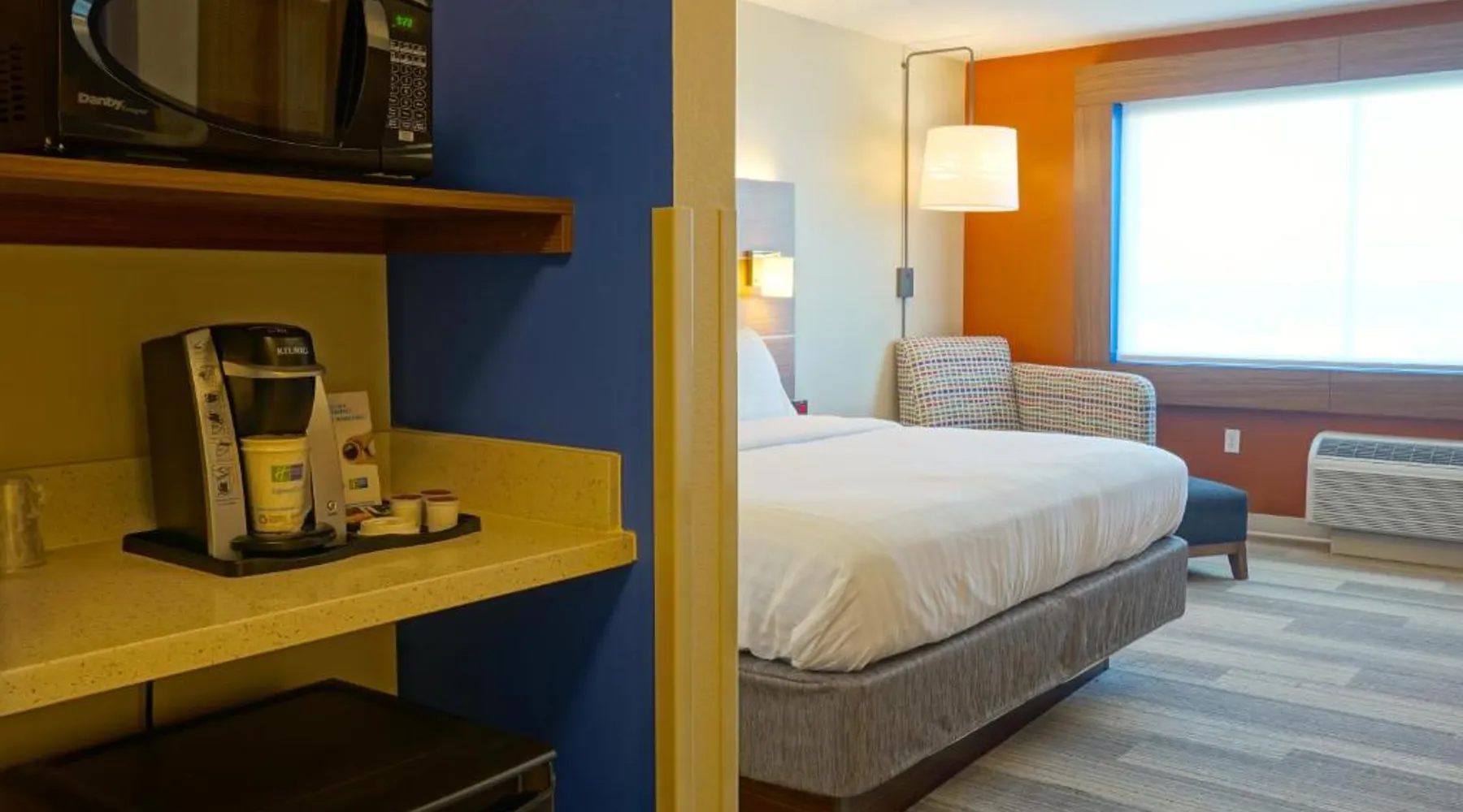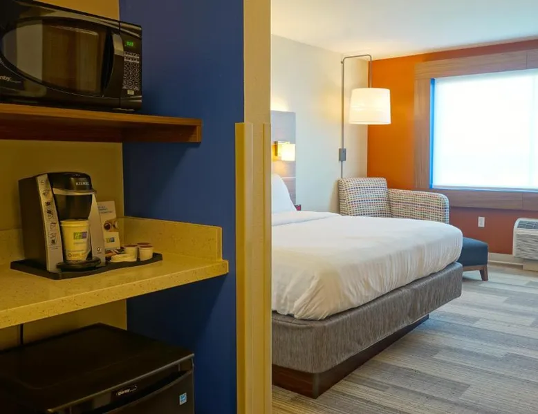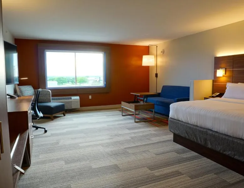 Comfortable Accommodations: Holiday Inn Express & Suites Omaha - Millard Area by IHG in Omaha offers rooms with air-conditioning, private bathrooms, and free WiFi. Each room includes a tea and coffee maker, hairdryer, refrigerator, work desk, seating area, free toiletries, microwave, shower, carpeted floors, TV, and sofa. Facilities and Services: Guests can enjoy a fitness center and a 24-hour front desk. The hotel provides free WiFi, ensuring connectivity throughout the stay. Convenient Location: Located 16 mi from Eppley Airfield, the hotel is near attractions such as Fun-Plex Waterpark & Rides (6.2 mi), Td Ameritrade Park Omaha (14 mi), and the University of Nebraska Omaha (9.3 mi). Highly rated for its staff, room cleanliness, and convenient location. Providing free toiletries, this double room includes a private bathroom with a shower and a hairdryer. The double room features carpeted floors, a seating area with a flat-screen TV with cable channels, air conditioning, a tea and coffee maker, as well as a wardrobe. The unit offers 1 bed.