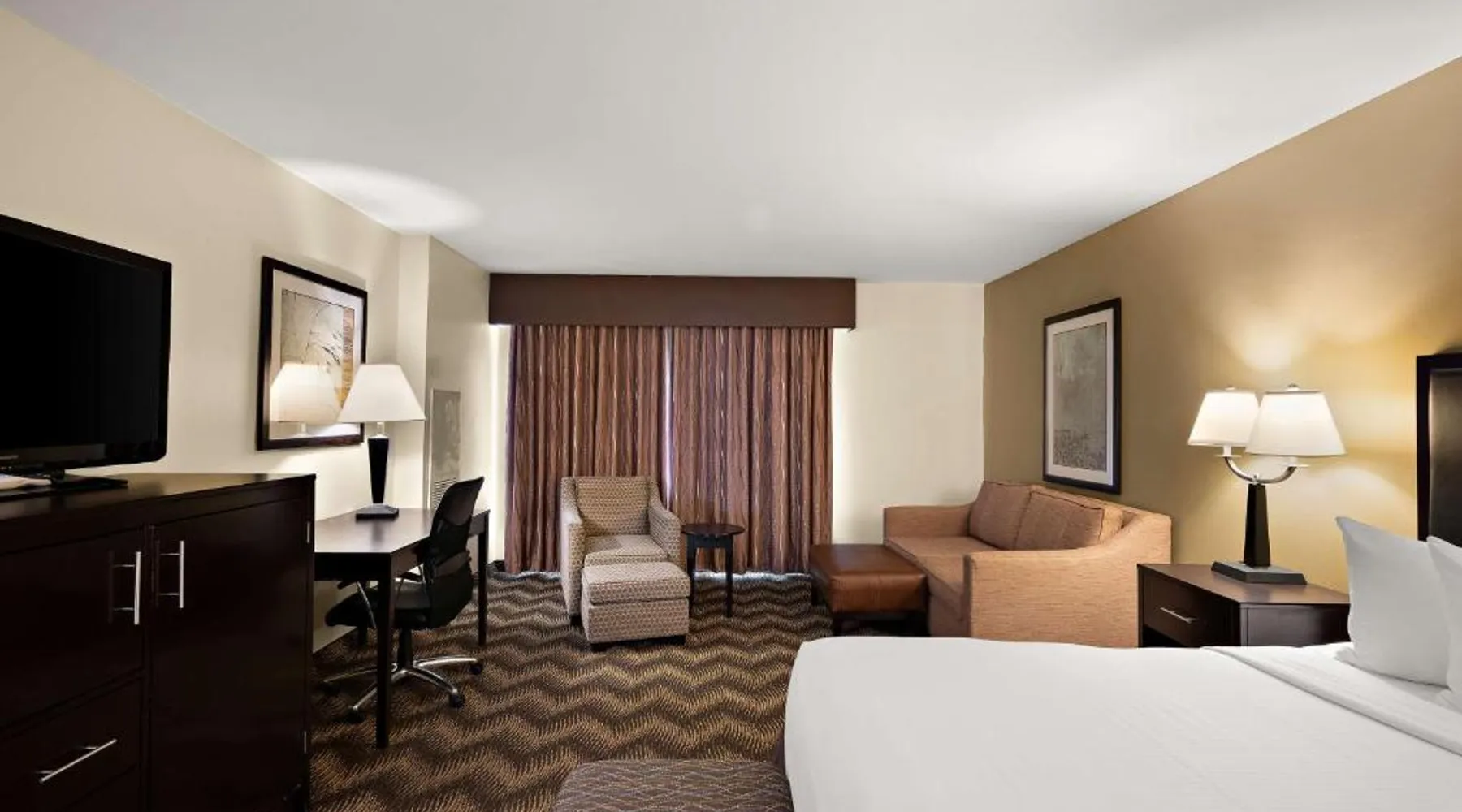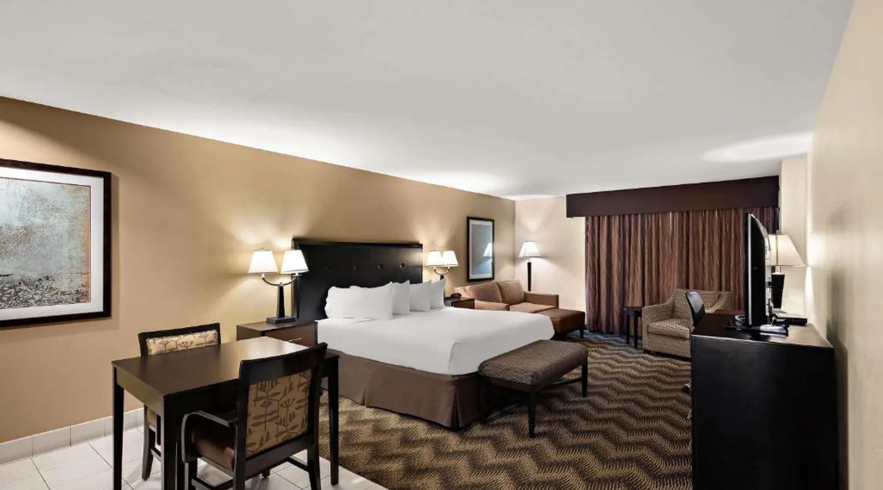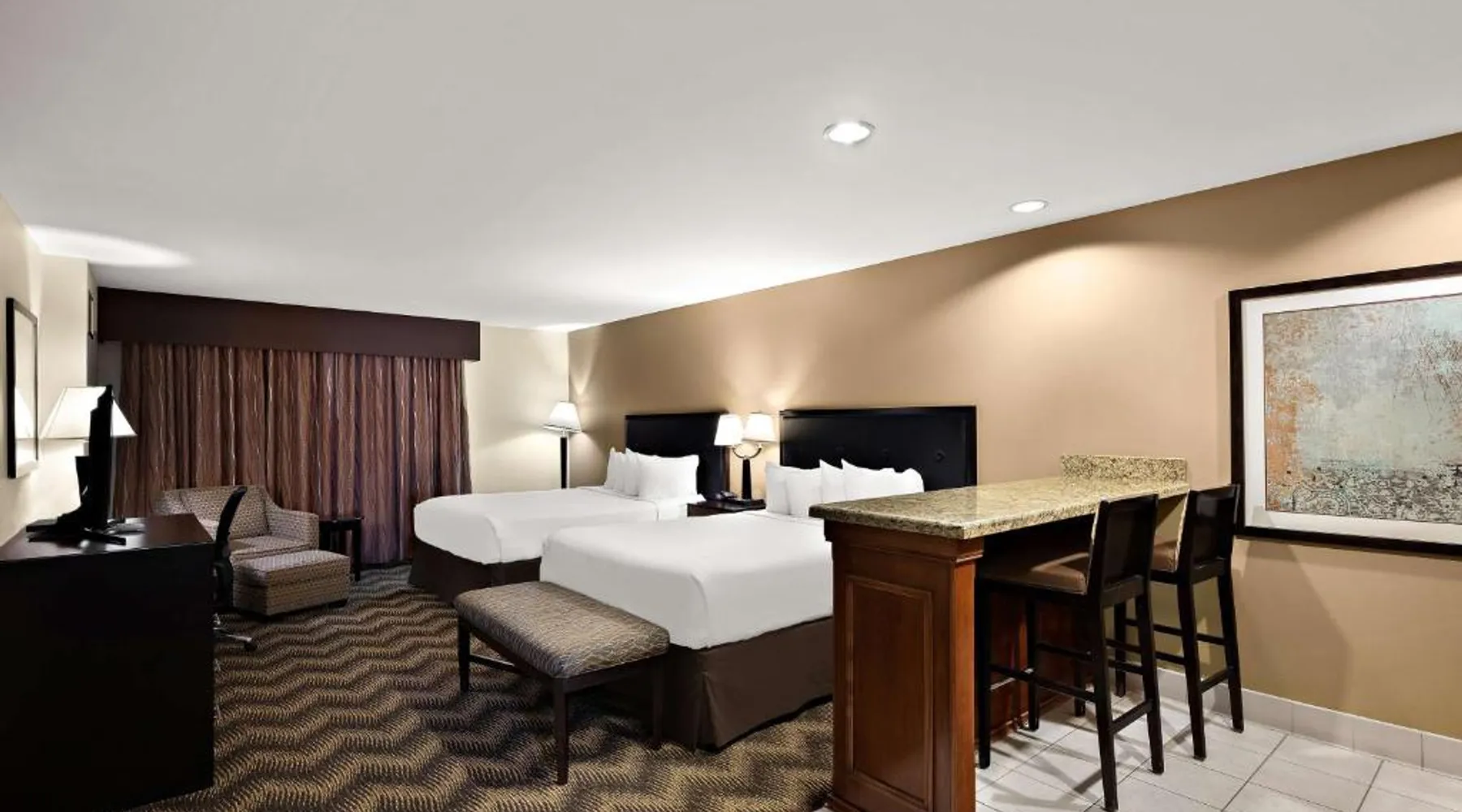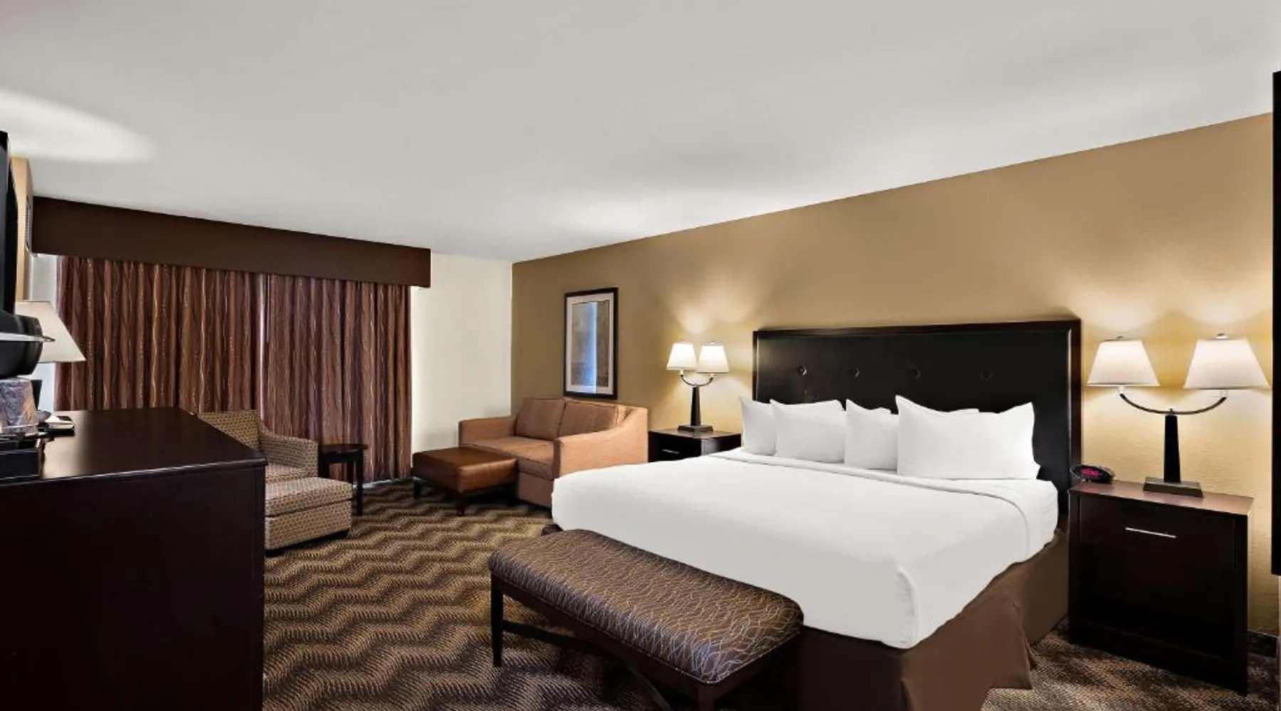 A seasonal outdoor pool and free WiFi are offered to guests at this Winnemucca, Nevada hotel. Located off Highway 95, the hotel provides a free transport service from Winnemucca Airport. Satellite cable TV with HBO movie channels is featured in all rooms at Best Western Plus Gold Country Inn. Rooms include tea/coffee-making facilities, an alarm clock and a hair-dryer. A full hot breakfast is served to guests of this hotel. An on-site business centre and a 24-hour front desk are available to guests of Best Western Plus Gold Country Inn. Free on-site parking is also available. The Model T Casino is 2 minutes’ walk from the Winnemucca Best Western Plus, while the Winnemucca Municipal Golf Course is 1.5 miles from the hotel. Offering free WiFi, this air-conditioned room includes a flat-screen TV, a coffee machine and ironing facilities.