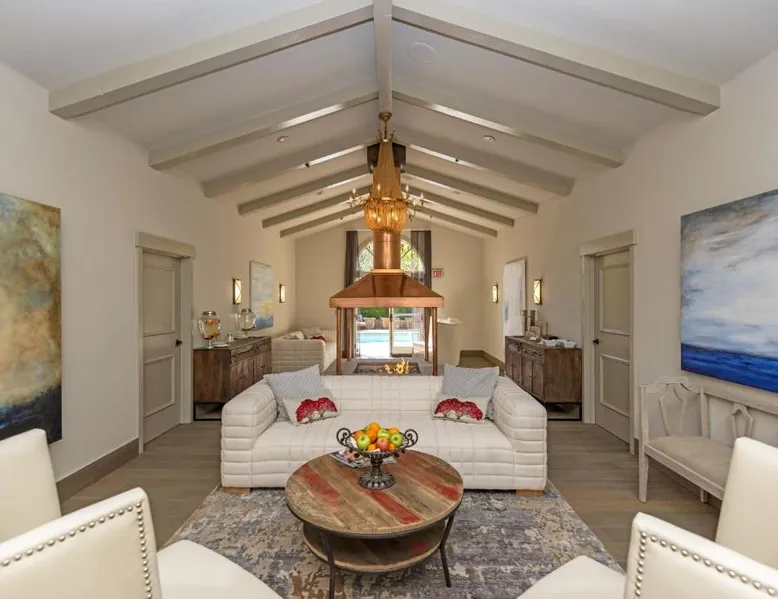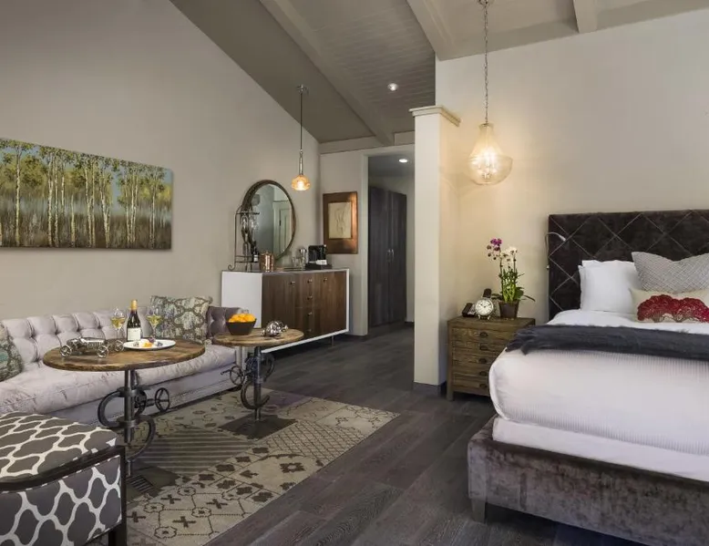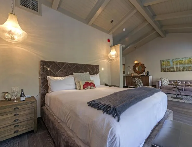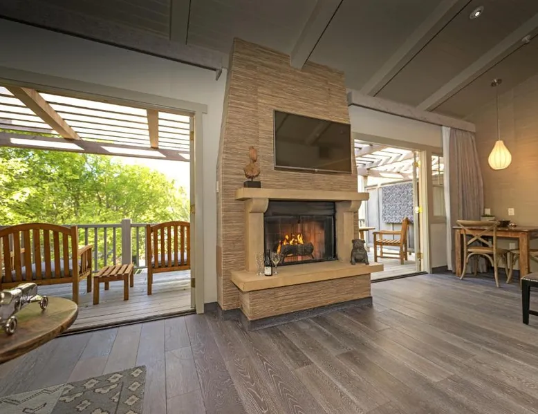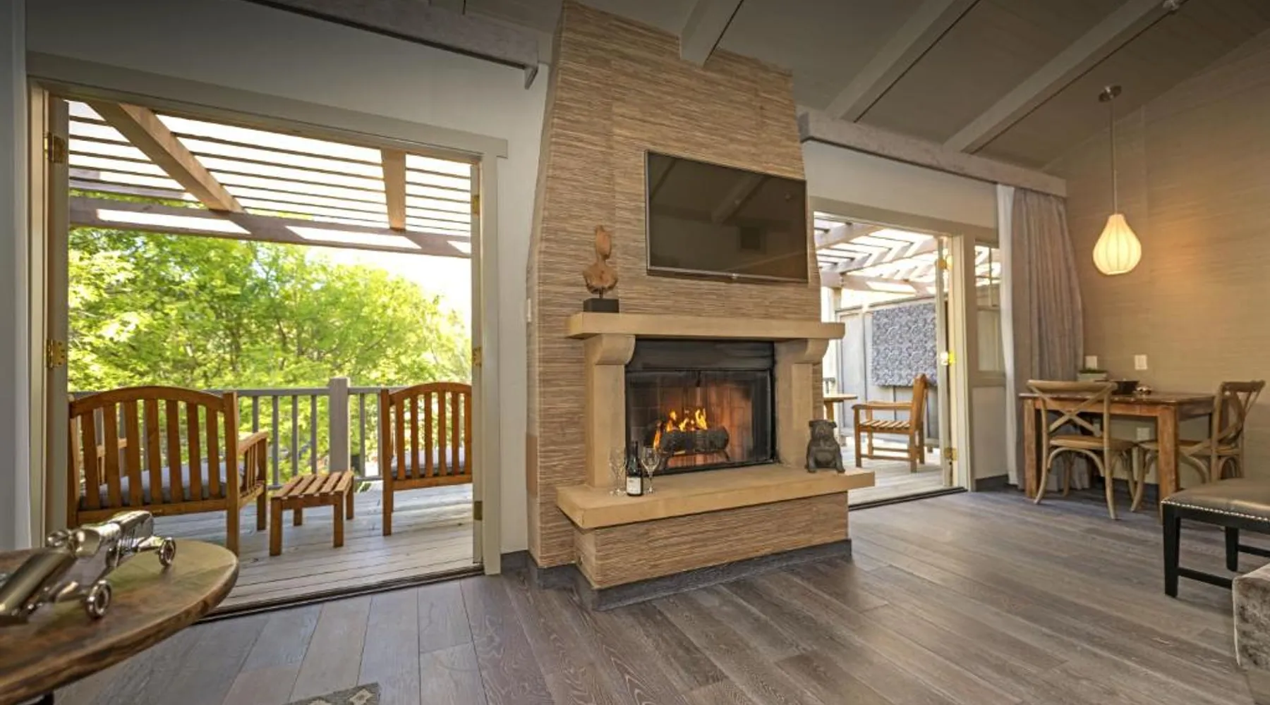 This Carmel Valley resort features star-rated dining, a wellness spa and outdoor heated pool. A limestone fireplace, 2-person soaking tub and down feather bedding are featured in each guest room. Monterey Bay Aquarium is 12 miles away. Guests are welcomed with a gourmet snack basket, fruit bowl, fresh roses, and a complimentary "wine grotto" minibar with Bernardus wines in their rooms. A flat-screen cable TV, iPod docking station and coffee machine are also provided. Lucia Restaurant & Bar boasts an extensive wine list and a menu that focuses on organic, local ingredients. The bar and lounge area provides a more casual menu and experience. The Spa at Bernardus includes marine-inspired massage services and body treatments in a spacious facility that features locker rooms, sauna rooms, a fitness room and a juice bar. A warming room with fireplace, a meditation garden, a dipping pool and a reflecting pool are available for guest relaxation. A full-service beauty salon is also available. Two tennis courts are on site. A croquet lawn and bocce court are provided for guest use. Garland Ranch Regional Park is just under 1 mile away. The Carmel Mission Basilica and Museum are 9.5 miles away. This suite's standout feature is the fireplace. The spacious suite offers air conditioning, a mini-bar, a terrace with mountain views as well as a private bathroom boasting a bath or a shower.