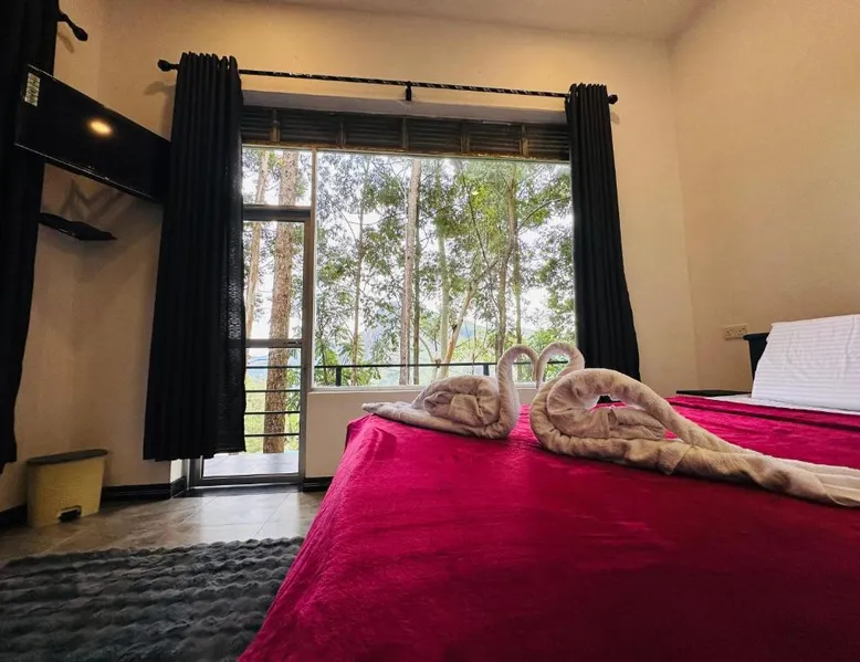 Elegant Accommodations: Pineapple Hills Ella in Ella offers a sun terrace, lush garden, and a restaurant. Guests enjoy free WiFi, private check-in and check-out, and a paid shuttle service. Comfortable Amenities: The guest house features a lounge, outdoor fireplace, concierge service, and a coffee shop. Additional services include room service, bike and car hire, and a tour desk. Delightful Breakfast: A variety of breakfast options are available, including continental, American, full English/Irish, and vegetarian. Breakfast includes juice, pancakes, cheese, and fruits. Prime Location: Located 53 mi from Mattala Rajapaksa International Airport, Pineapple Hills Ella is near Demodara Nine Arch Bridge (15-minute walk), Little Adam's Peak (0.9 mi), and Ella Railway Station (1.1 mi). Guests appreciate the scenic views and excellent service. The spacious double room features a tea and coffee maker, a seating area, a terrace with garden views as well as a private bathroom boasting a shower. The unit has 1 bed.