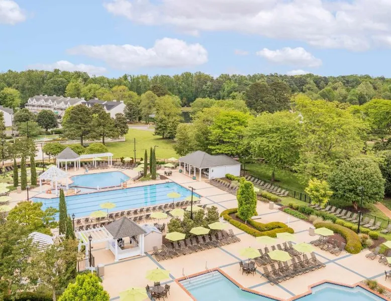 Hilton Vacation Club The Historic Powhatan Williamsburg offers suites on the grounds of a restored Manor House. Located 3.7 mi from Historic Williamsburg, the resort features an indoor and seasonal outdoor pool. All air-conditioned suites at Powhatan Williamsburg have a private bathroom, kitchen, washer and dryer, iron and hairdryer. Guests at the Powhatan can play tennis or mini golf. A children's playground and barbecue facilities are provided. The Historic Grounds Coffee House is open Wednesday - Sunday from 7:00 am - 2:00 pm. The Powhatan Bar & Grille is open Wednesday - Thursday 8:00 am - 11:00 am (breakfast) and 5:00 pm - 9:00 pm (dinner), Friday - Sunday 8:00 am - 9:00 pm. WakeMed Soccer Park is 3 mi away, while the College of William and Mary is 4.8 mi from the property. The well-equipped kitchen has a stovetop, a refrigerator, a dishwasher and kitchenware. The spacious suite features air conditioning, a tea and coffee maker, a seating area, a safe deposit box and a flat-screen TV with cable channels. The unit has 3 beds.