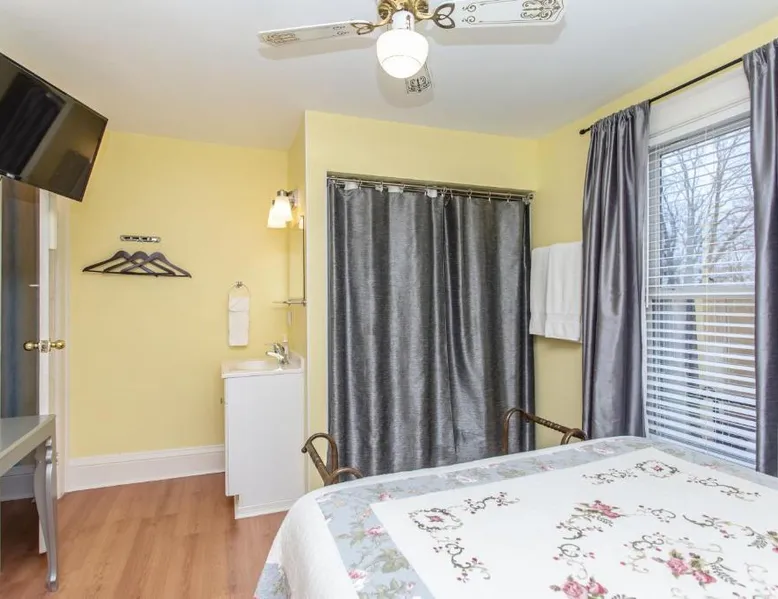 Comfortable Accommodations: Ambiance By The Falls B&B in Niagara Falls offers adults-only rooms with private bathrooms, air-conditioning, and city views. Each room includes a work desk, TV, and free toiletries. Modern Amenities: Guests enjoy free WiFi, private and express check-in and check-out services, a lounge, and bicycle parking. Additional amenities include a walk-in shower, wardrobe, and parquet floors. Delicious Breakfast: A variety of breakfast options are available, including continental, American, full English/Irish, vegetarian, and gluten-free. Breakfast includes warm dishes, fresh pastries, pancakes, fruits, and juice. Prime Location: Located less than 0.6 mi from Casino Niagara and Skylon Tower, the property is also close to attractions such as Rainbow Bridge and Niagara Fallsview Casino Resort. Guests appreciate the convenient location and excellent host. This tastefully decorated guest room includes free WiFi, air conditioning, cable TV and a private/private bathroom.