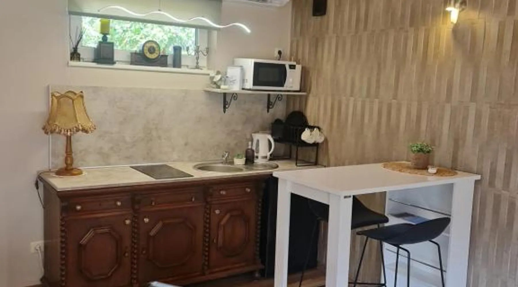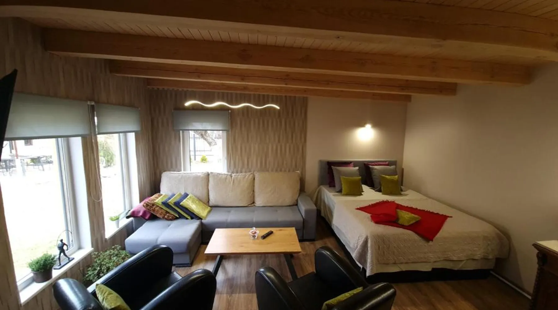 Spacious Accommodations: Sipis House in Šiauliai offers spacious family rooms with private bathrooms. Each room includes a kitchenette, refrigerator, microwave, and TV. Modern Amenities: Guests enjoy a terrace, outdoor seating area, and free on-site private parking. Additional facilities include a sauna, soundproofing, and parquet floors. Convenient Location: Located 1.2 mi from The Square of the Cock Clock, The Photography Museum, and St. George’s Church. Nearby attractions include the Hill of Crosses (7.5 mi) and the Bicycle Museum (1.2 mi). Guest Satisfaction: Highly rated for its sauna, room cleanliness, and convenient location. Guests will have a special experience as the double room features a sauna. Guests can make meals in the kitchenette that is equipped with a stovetop, a refrigerator, kitchenware and a microwave. The spacious double room provides a private entrance, soundproof walls, as well as a private bathroom featuring a shower and a hairdryer. The unit offers 1 bed.