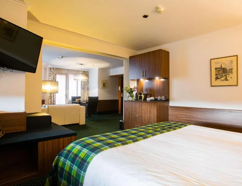 The 4-star Golden Tulip Hotel Central is located in the heart of 's-Hertogenbosch, overlooking the medieval market square. It features a brasserie, a private dining room and 2 bars, as well as a fitness center which offers a unique view of St. John's Cathedral from the top floor. Guests can start their day with a wholesome breakfast in the unique 14th-century vaulted cellar. Part of the Brasserie restaurant, Tony’s Bar offers live jazz music every 1st Friday of the month. The Moriaen Bar provides a warm atmosphere for a drink and a chat. At the end of the day, Brasserie Cé offers international dishes with regional flavors. The hotel is easy to reach by car and public transport. Discounted parking is available at Q-park Tolbrug, directly oppsite the hotel. The central station is only a 7-minute walk away and a bus stop is 164 feet from the hotel. Elegantly decorated with modern furniture and sober colors, this spacious room comes with a flat-screen TV, mini-bar and a safety deposit box. The private bathroom is fitted with a shower, free toiletries and hairdryer. It has an extra large single bed of 130 * 83 in. Free use of fitness facilities is also included.