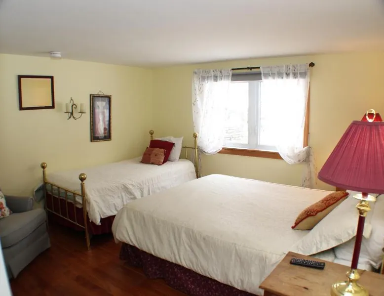 Comfortable Accommodations: The Inn at Quail Run in Wilmington offers family rooms with shared bathrooms. Each room includes a private balcony, ensuring a pleasant stay. Relaxing Facilities: Guests can enjoy a seasonal outdoor swimming pool, a beautiful garden, and free WiFi throughout the property. Additional amenities include an outdoor fireplace, hot tub, and games room. Outdoor Activities: The inn is located near skiing and hiking opportunities. Stratton Mountain is 22 mi away, while Mount Snow Resort lies 4.3 mi from the property. Local Attractions: Nearby attractions include Molly Stark State Park (8.1 mi) and Bennington Battle Monument (27 mi). Rutland State Airport is 60 mi from the inn. The unit offers 2 beds.
