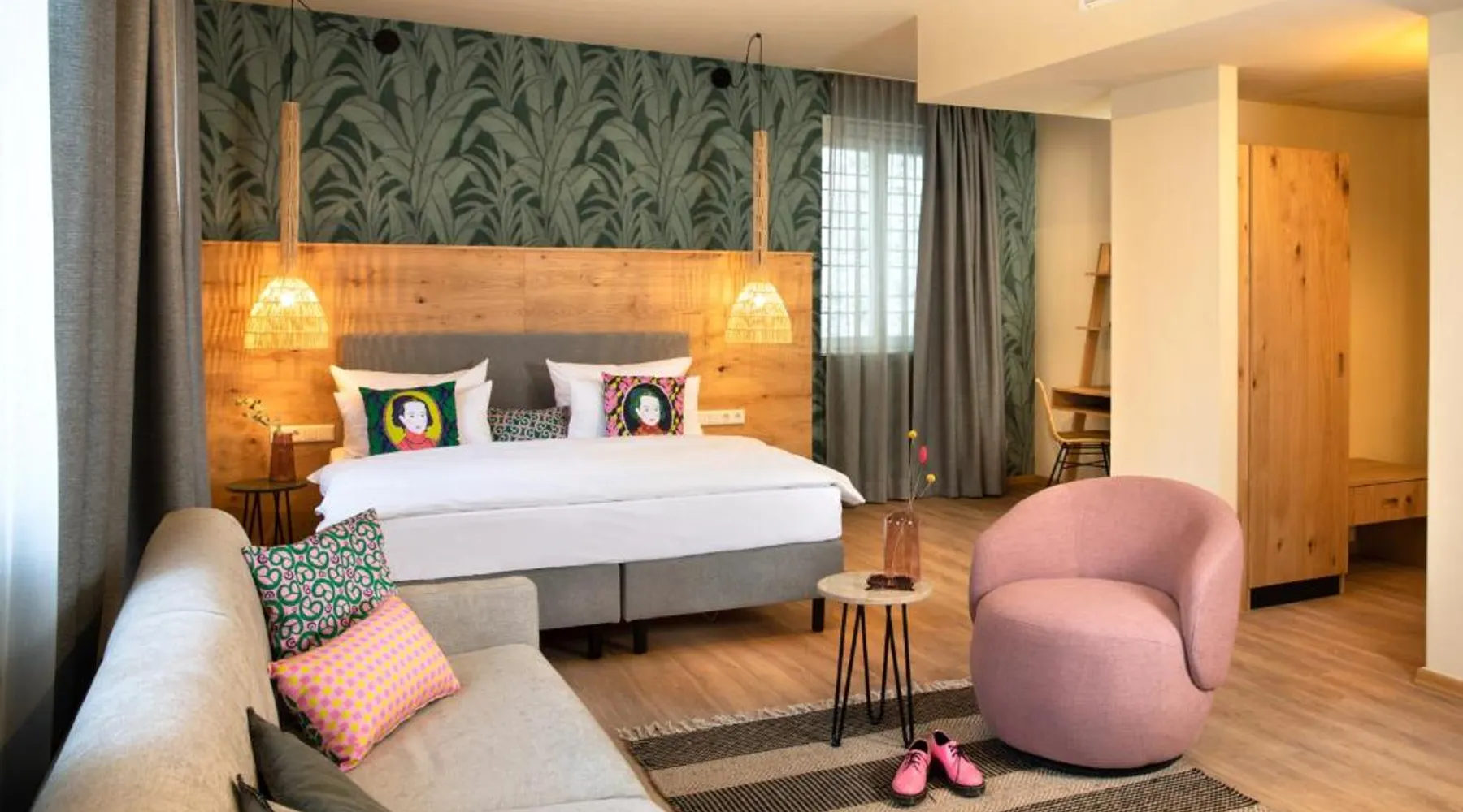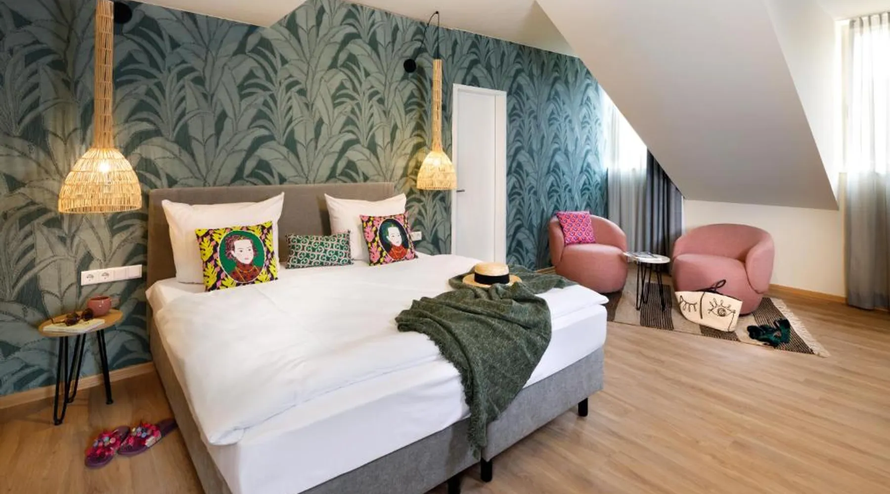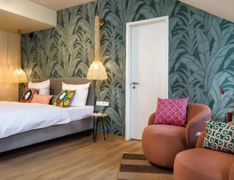 Central Location: Hotel Das Regensburg in Regensburg offers a central base with Regensburg Central Station a 6-minute walk away. Nearby attractions include Cathedral Regensburg (1640 feet) and Thurn und Taxis Palace (5-minute walk). Munich Airport is 62 mi from the property. Exceptional Facilities: Guests enjoy a sun terrace, garden, bar, and free WiFi. Additional amenities include a lounge, elevator, electric vehicle charging station, and bicycle parking. The hotel provides private check-in and check-out, room service, and luggage storage. Comfortable Accommodations: Rooms feature air-conditioning, private bathrooms, city views, and modern amenities such as flat-screen TVs and soundproofing. Family rooms and sofa beds cater to all travelers. Delicious Breakfast: A variety of breakfast options are available, including continental, buffet, vegetarian, vegan, and gluten-free. Fresh pastries, local specialties, and warm dishes enhance the morning experience. Providing free toiletries, this family room includes a private bathroom with a shower and a hairdryer. The air-conditioned family room provides a flat-screen TV with cable channels, soundproof walls, a tea and coffee maker, a seating area as well as city views. The unit offers 2 beds.