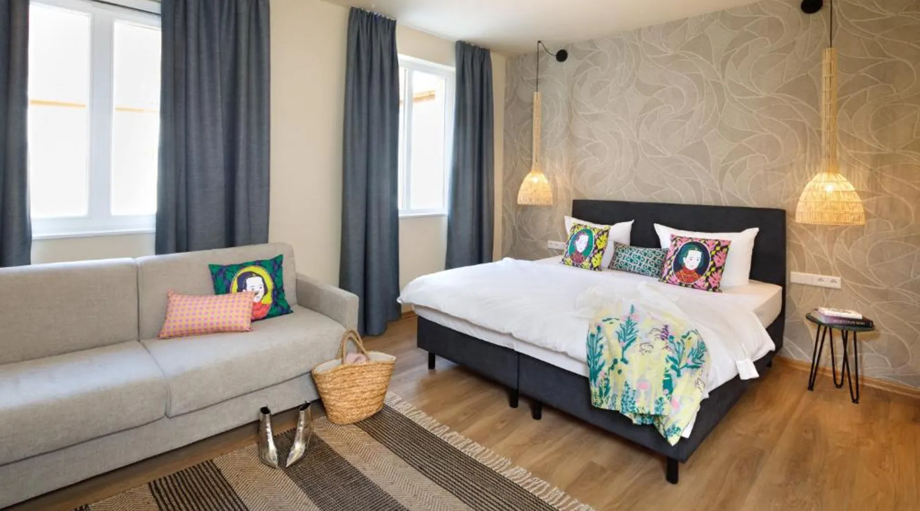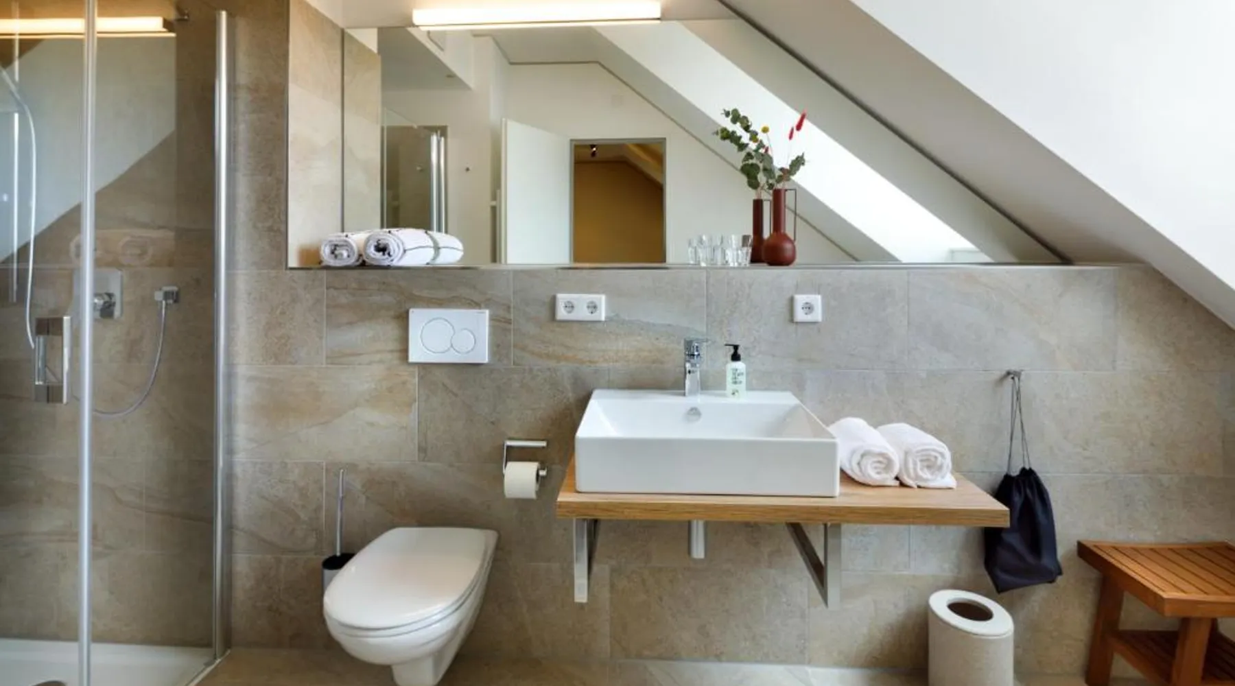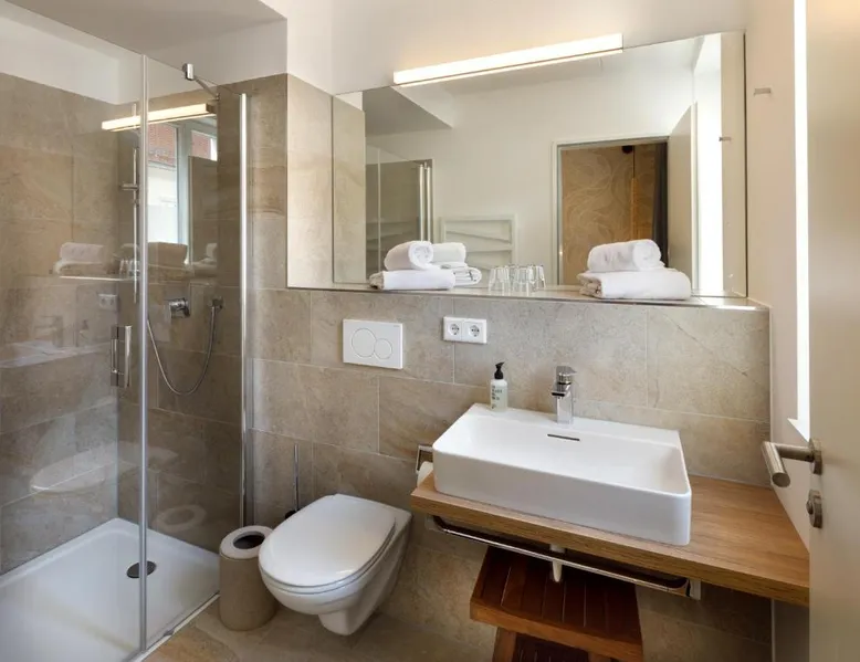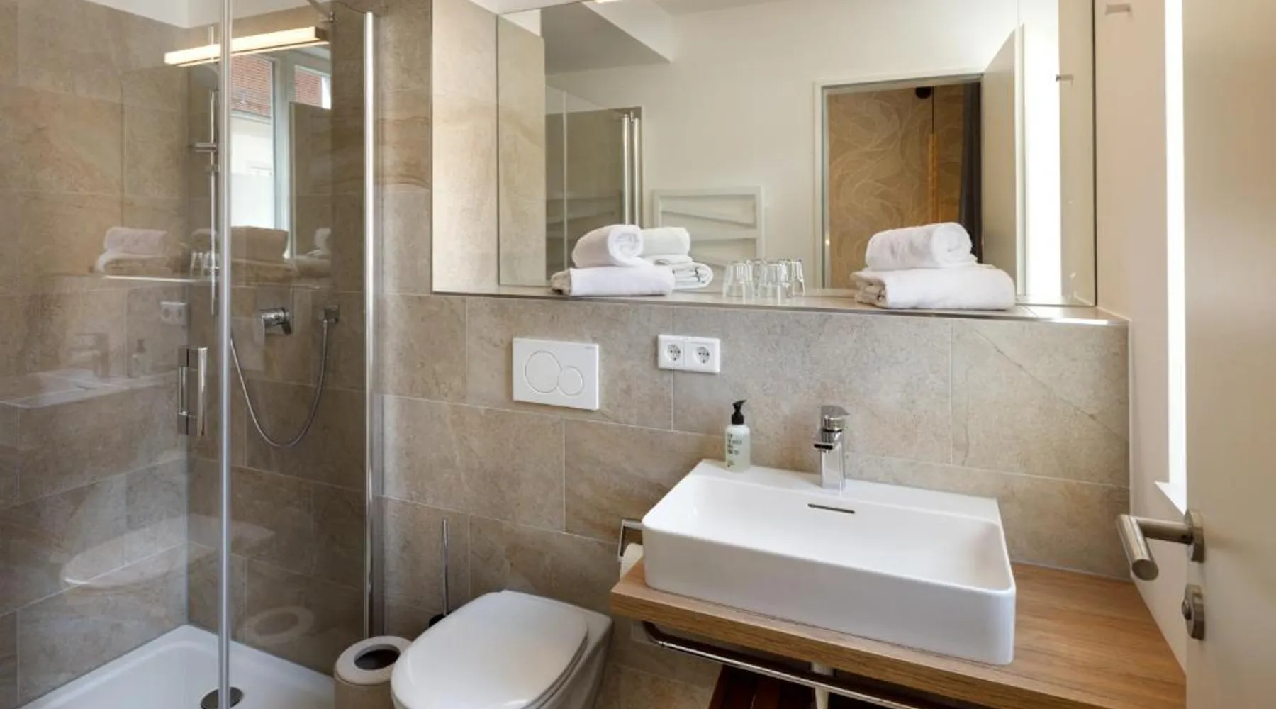 Central Location: Hotel Das Regensburg in Regensburg offers a central base with Regensburg Central Station a 6-minute walk away. Nearby attractions include Cathedral Regensburg (1640 feet) and Thurn und Taxis Palace (5-minute walk). Munich Airport is 62 mi from the property. Exceptional Facilities: Guests enjoy a sun terrace, garden, bar, and free WiFi. Additional amenities include a lounge, elevator, electric vehicle charging station, and bicycle parking. The hotel provides private check-in and check-out, room service, and luggage storage. Comfortable Accommodations: Rooms feature air-conditioning, private bathrooms, city views, and modern amenities such as flat-screen TVs and soundproofing. Family rooms and sofa beds cater to all travelers. Delicious Breakfast: A variety of breakfast options are available, including continental, buffet, vegetarian, vegan, and gluten-free. Fresh pastries, local specialties, and warm dishes enhance the morning experience. Providing free toiletries, this family room includes a private bathroom with a shower and a hairdryer. The air-conditioned family room provides a flat-screen TV with cable channels, soundproof walls, a tea and coffee maker, a seating area as well as city views. The unit offers 2 beds.