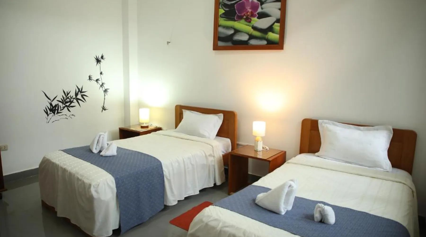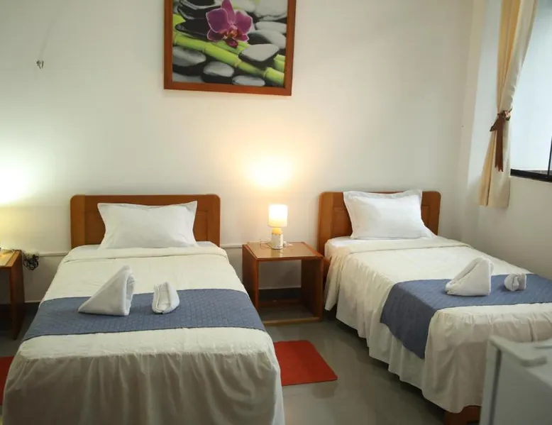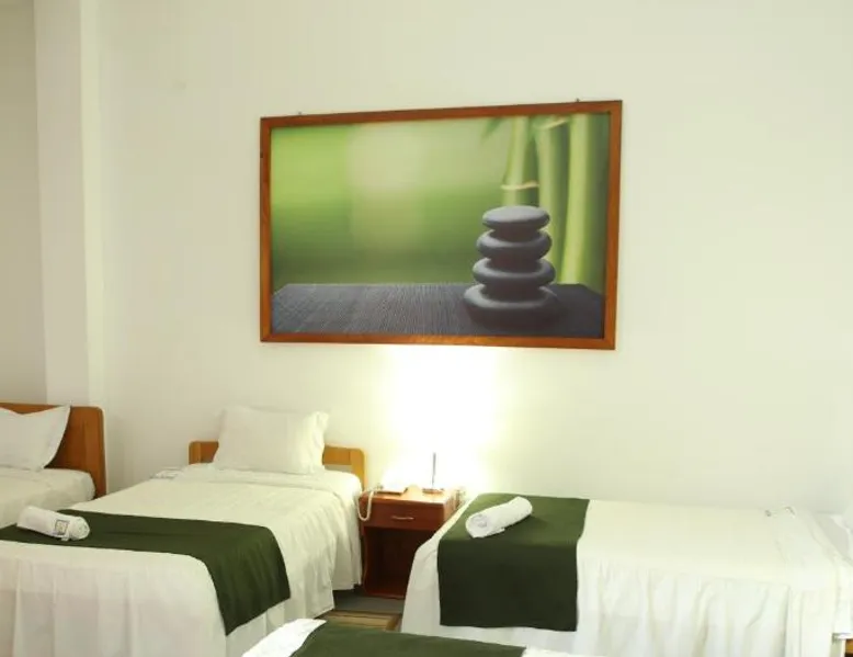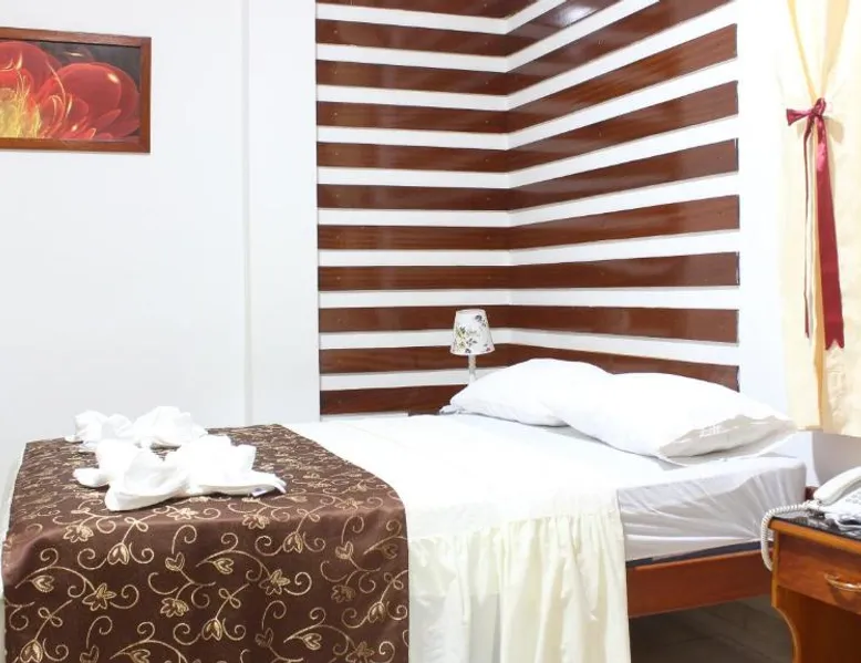 Comfortable Accommodations: Hotel Rulman in Puerto Maldonado offers family rooms with private bathrooms, air-conditioning, and garden or city views. Each room includes a work desk, mini-bar, and free toiletries. Exceptional Facilities: Guests can relax on the sun terrace or in the garden, enjoy free WiFi, and utilize the hot tub and lounge. Additional amenities include a coffee shop, public bath, and full-day security. Convenient Location: Located 3.7 mi from Puerto Maldonado International Airport, the hotel provides free on-site private parking and is praised for its convenient location and excellent service support. This triple room includes a flat-screen TV with cable channels, a private bathroom as well as a patio. The unit offers 3 beds.