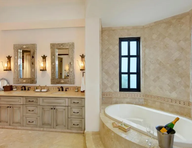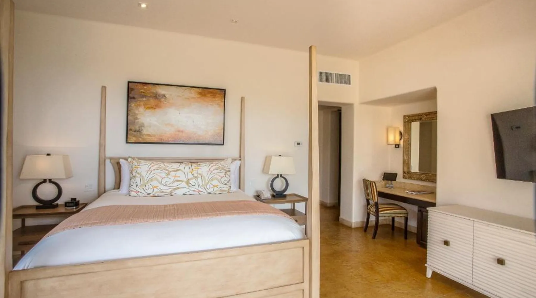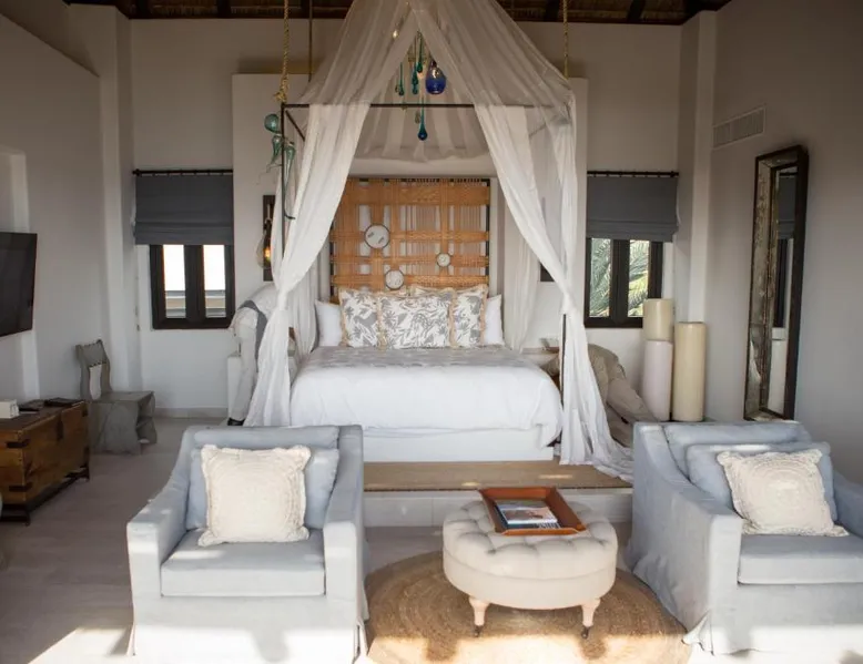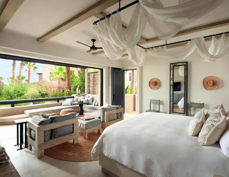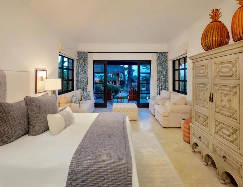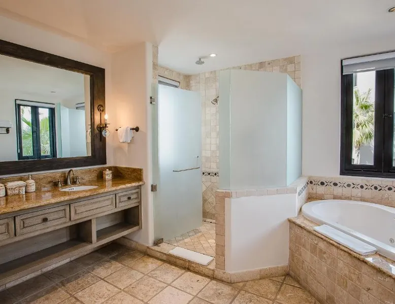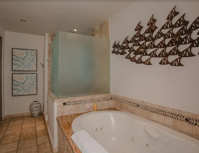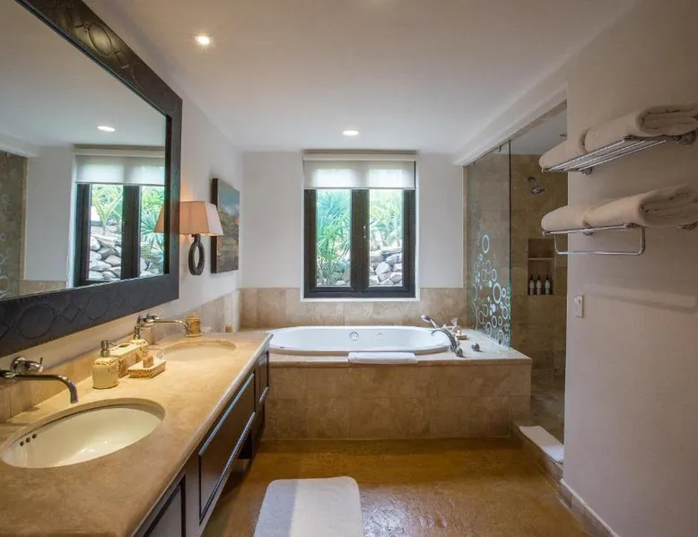Located on the coast of the Pacific Ocean, this luxury resort is 12 mi from downtown Los Cabos. It features a beachfront infinity pool, spa boutique, and free yoga sessions. Each spacious cabana-style room at the Cabo San Lucas Esperanza Resort is furnished with high ceilings and a large, private terrace. Guests can watch the flat-screen TV, use the free Wi-Fi, or charge their iPod with the iPod docking station. This resort features a private beach with concierge services. There is a large state-of-the-art gym and an on-site art gallery. Cocina del Mar, part of the resort, is carved into the cliffs overlooking the ocean and serves Baja-inspired cuisine. La Terraza Americana is open for lunch and offers American dishes in a casual outdoor atmosphere. The infinity pool has a swim-up bar. Cabo San Lucas International Airport is 8.8 mi from Esperanza Resort Cabo San Lucas. Downtown San José del Cabo is a 25-minute drive from the property. The spacious suite offers air conditioning, a mini-bar, a tea and coffee maker, a wardrobe and a TV. The unit offers 1 bed.