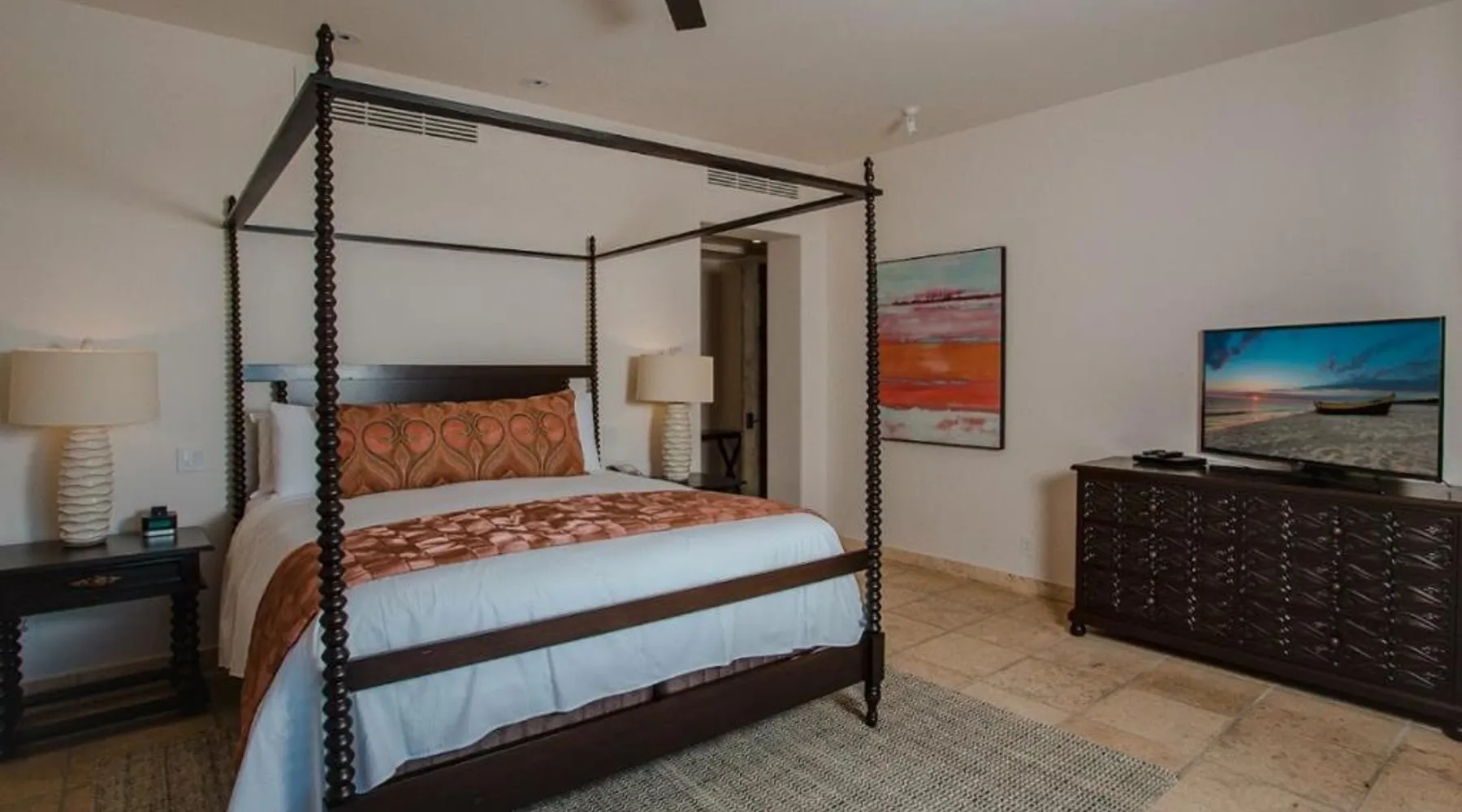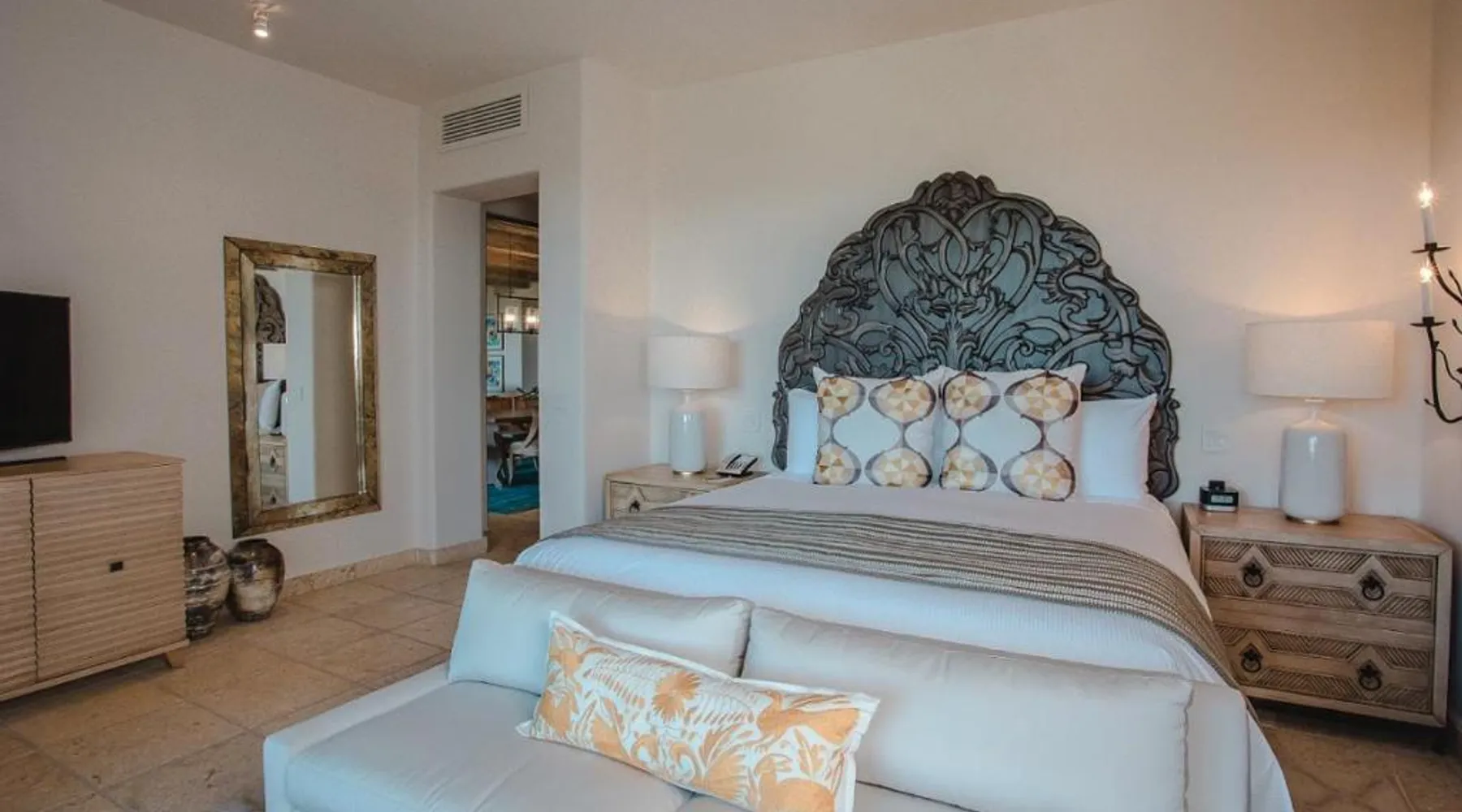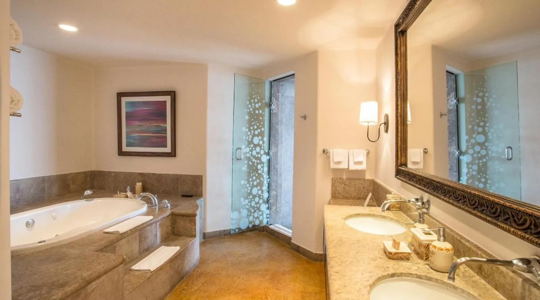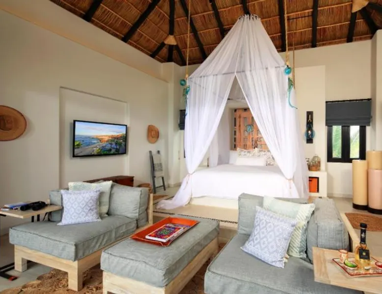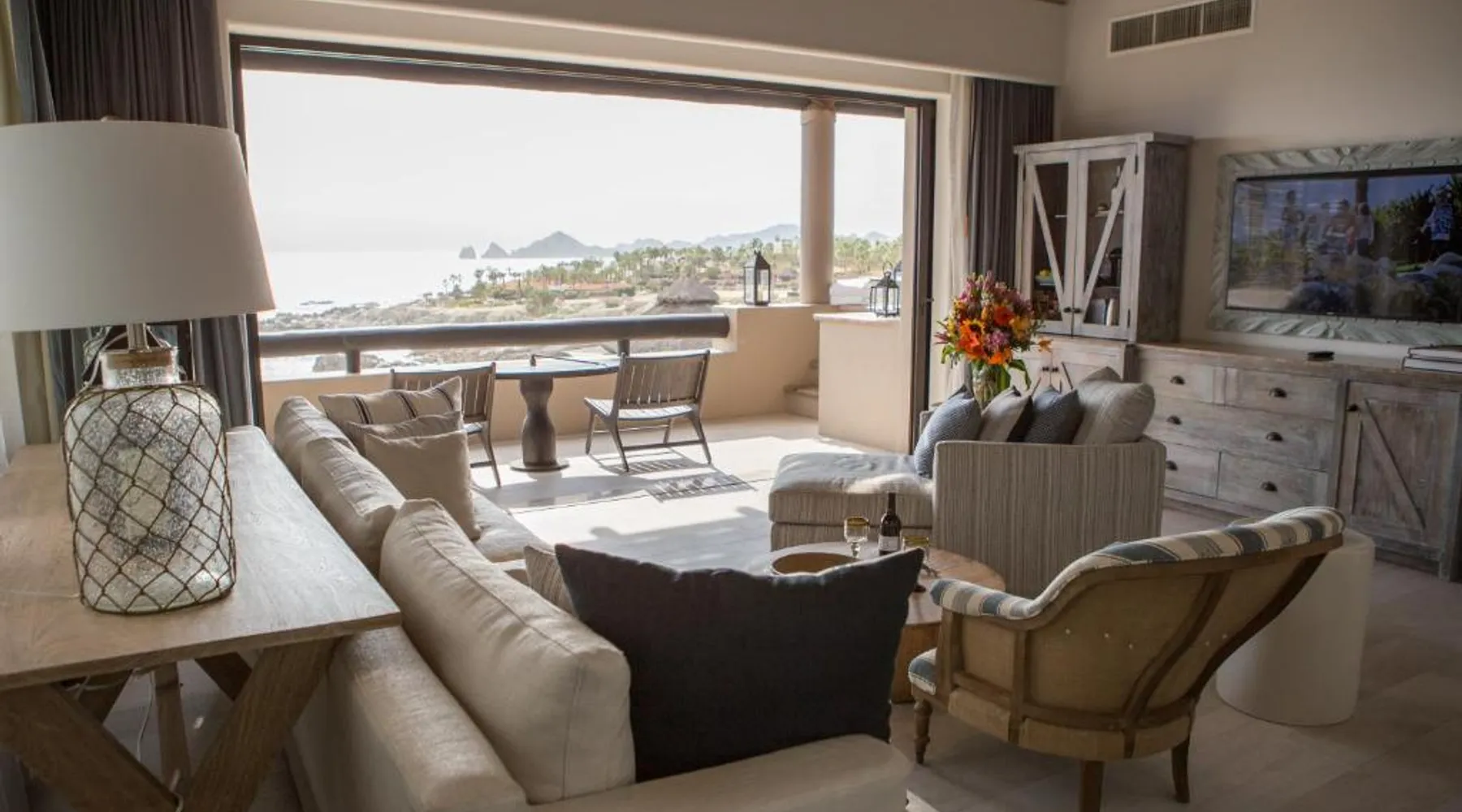 Located on the coast of the Pacific Ocean, this luxury resort is 12 mi from downtown Los Cabos. It features a beachfront infinity pool, spa boutique, and free yoga sessions. Each spacious cabana-style room at the Cabo San Lucas Esperanza Resort is furnished with high ceilings and a large, private terrace. Guests can watch the flat-screen TV, use the free Wi-Fi, or charge their iPod with the iPod docking station. This resort features a private beach with concierge services. There is a large state-of-the-art gym and an on-site art gallery. Cocina del Mar, part of the resort, is carved into the cliffs overlooking the ocean and serves Baja-inspired cuisine. La Terraza Americana is open for lunch and offers American dishes in a casual outdoor atmosphere. The infinity pool has a swim-up bar. Cabo San Lucas International Airport is 8.8 mi from Esperanza Resort Cabo San Lucas. Downtown San José del Cabo is a 25-minute drive from the property. The spacious suite offers air conditioning, a mini-bar, a tea and coffee maker, a wardrobe and a TV. The unit offers 1 bed.