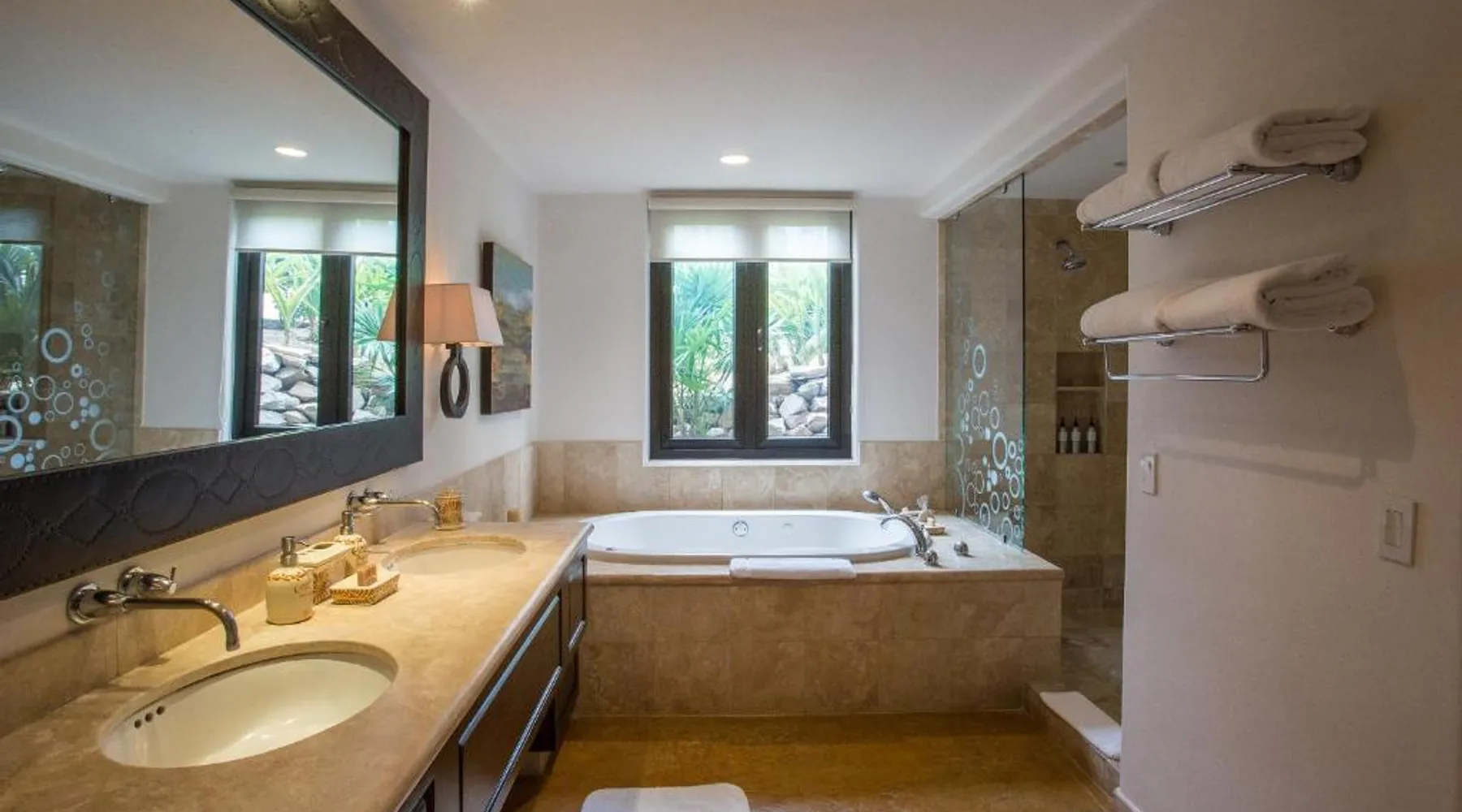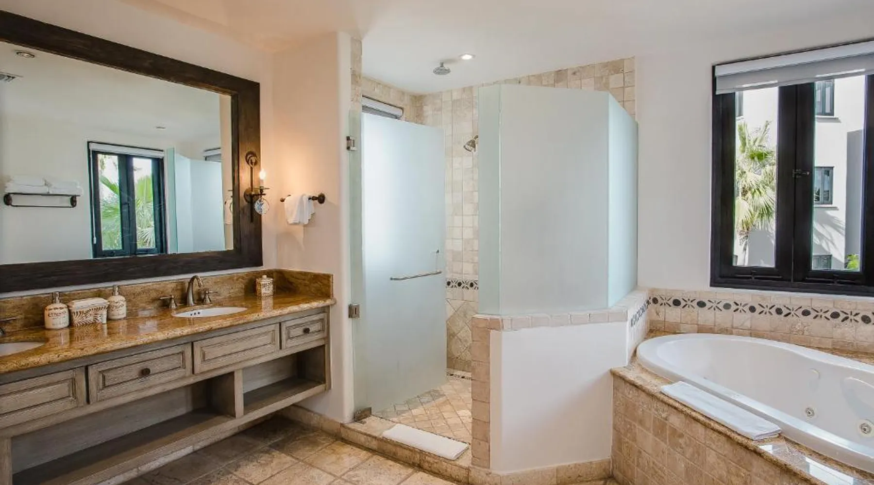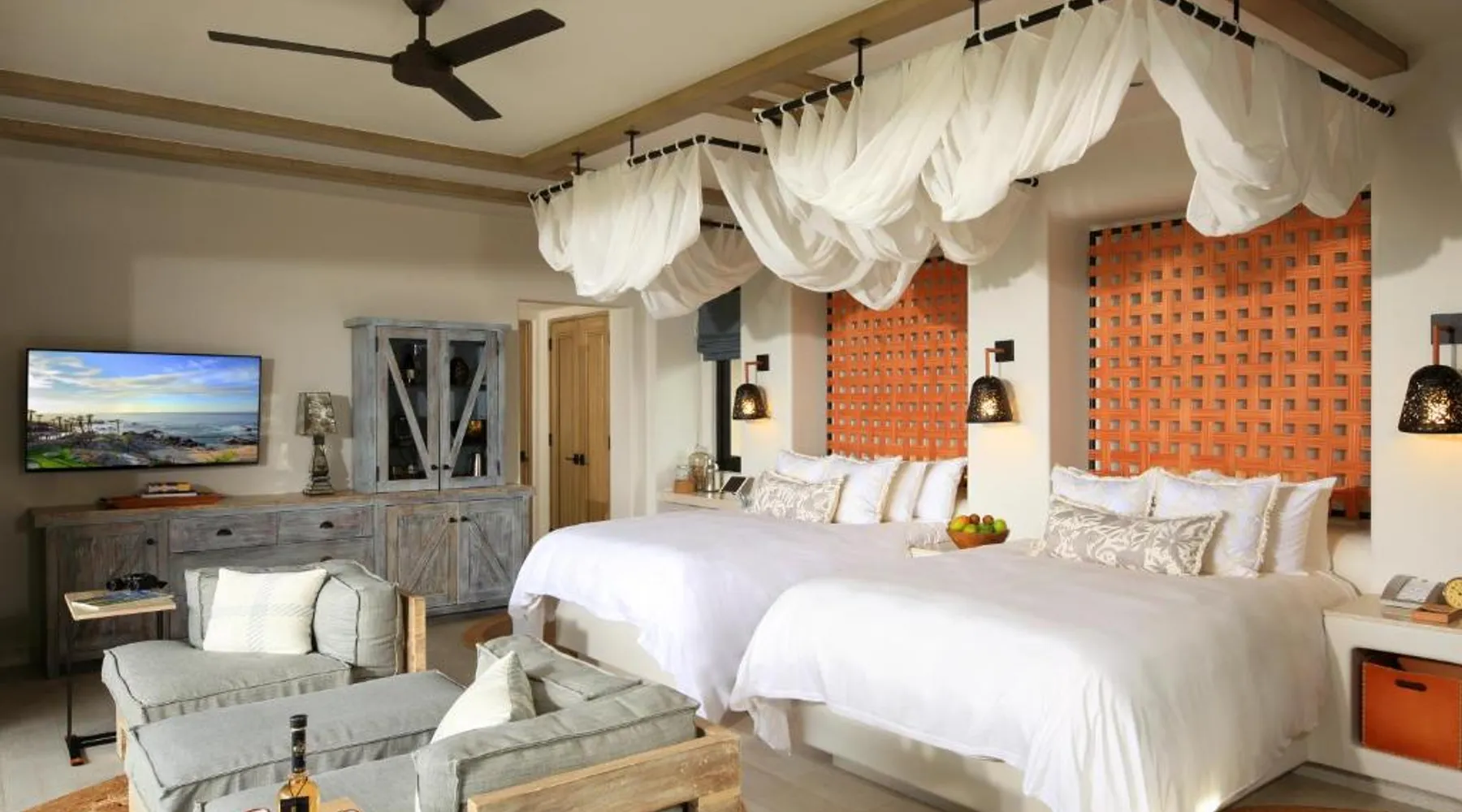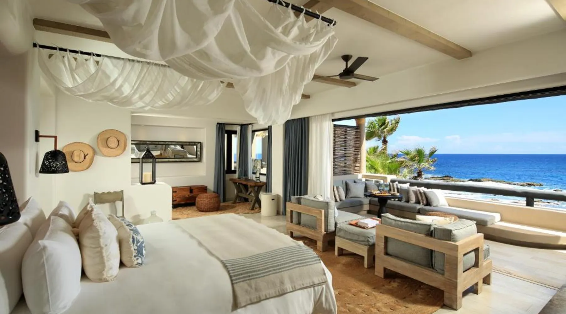 Located on the coast of the Pacific Ocean, this luxury resort is 12 mi from downtown Los Cabos. It features a beachfront infinity pool, spa boutique, and free yoga sessions. Each spacious cabana-style room at the Cabo San Lucas Esperanza Resort is furnished with high ceilings and a large, private terrace. Guests can watch the flat-screen TV, use the free Wi-Fi, or charge their iPod with the iPod docking station. This resort features a private beach with concierge services. There is a large state-of-the-art gym and an on-site art gallery. Cocina del Mar, part of the resort, is carved into the cliffs overlooking the ocean and serves Baja-inspired cuisine. La Terraza Americana is open for lunch and offers American dishes in a casual outdoor atmosphere. The infinity pool has a swim-up bar. Cabo San Lucas International Airport is 8.8 mi from Esperanza Resort Cabo San Lucas. Downtown San José del Cabo is a 25-minute drive from the property. The spacious suite offers air conditioning, a mini-bar, a tea and coffee maker, a wardrobe and a TV. The unit offers 1 bed.