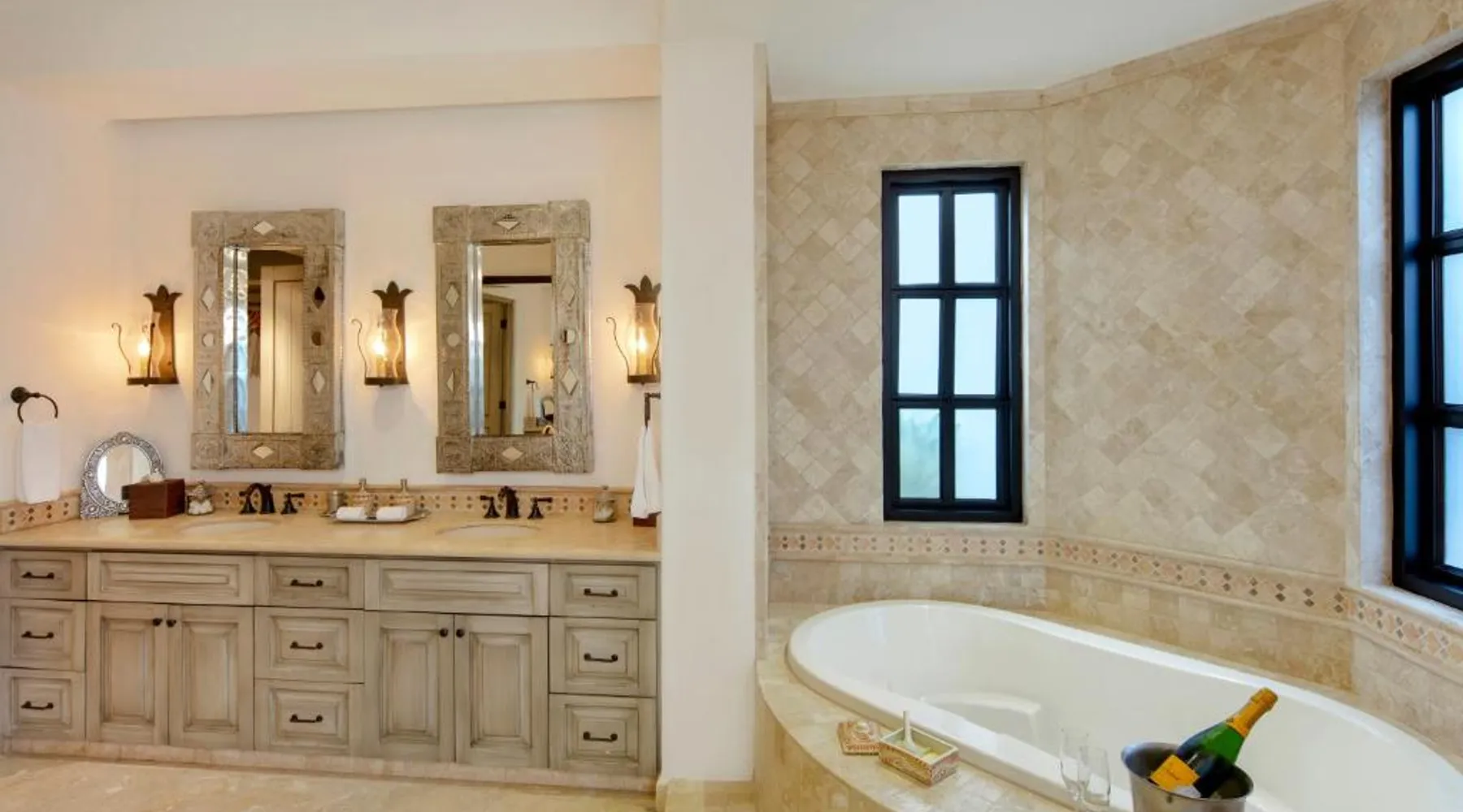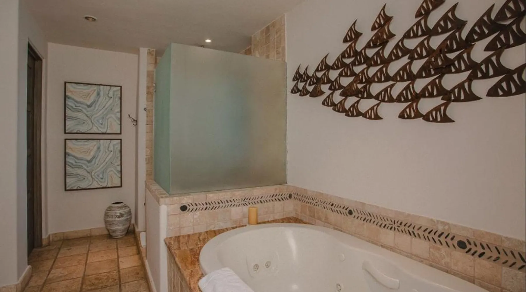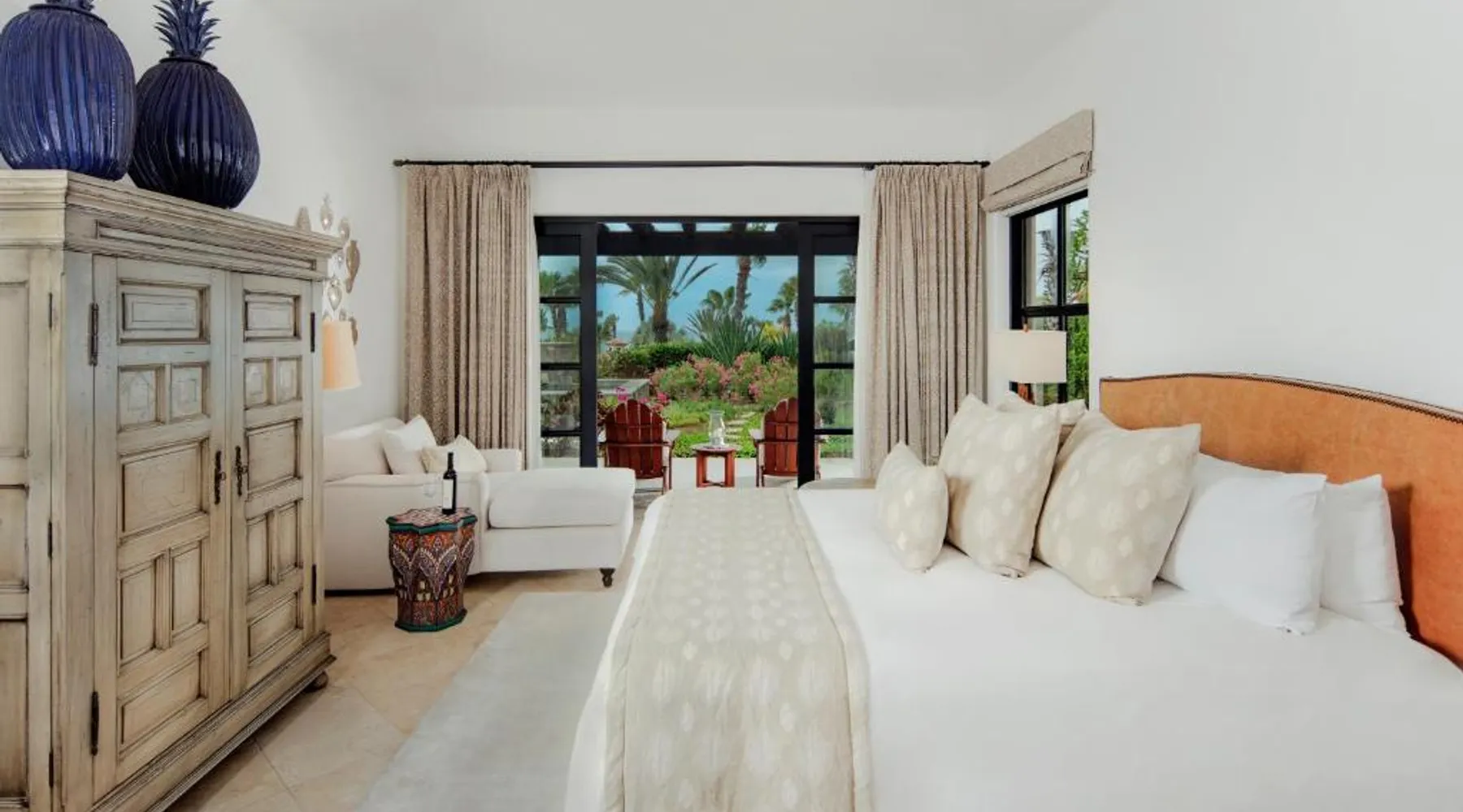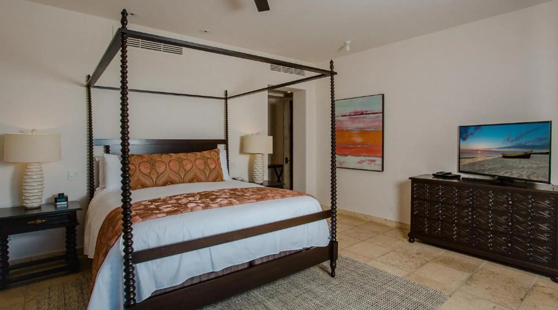 Located on the coast of the Pacific Ocean, this luxury resort is 12 mi from downtown Los Cabos. It features a beachfront infinity pool, spa boutique, and free yoga sessions. Each spacious cabana-style room at the Cabo San Lucas Esperanza Resort is furnished with high ceilings and a large, private terrace. Guests can watch the flat-screen TV, use the free Wi-Fi, or charge their iPod with the iPod docking station. This resort features a private beach with concierge services. There is a large state-of-the-art gym and an on-site art gallery. Cocina del Mar, part of the resort, is carved into the cliffs overlooking the ocean and serves Baja-inspired cuisine. La Terraza Americana is open for lunch and offers American dishes in a casual outdoor atmosphere. The infinity pool has a swim-up bar. Cabo San Lucas International Airport is 8.8 mi from Esperanza Resort Cabo San Lucas. Downtown San José del Cabo is a 25-minute drive from the property. The spacious suite offers air conditioning, a mini-bar, a tea and coffee maker, a wardrobe and a TV. The unit offers 1 bed.