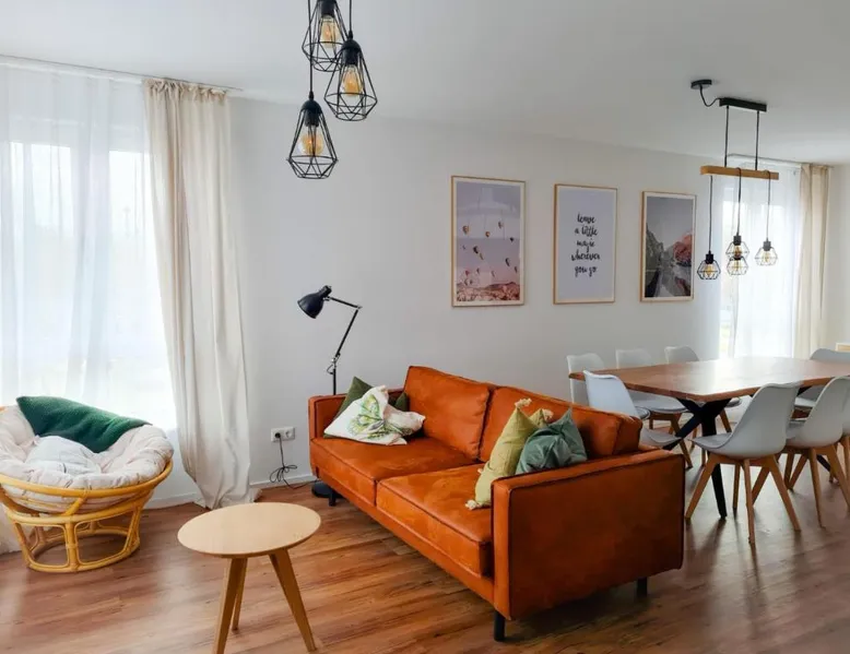Spacious Accommodations: Ferienwohnung Maja-Katharina in Bad Saarow offers a spacious apartment with two bedrooms and a bathroom. Family rooms provide ample space for relaxation and comfort. Modern Amenities: Guests enjoy free WiFi, a fully equipped kitchenette, balcony, washing machine, and free on-site private parking. Additional amenities include a dining area, work desk, and TV. Convenient Location: Located 30 mi from Berlin Brandenburg Airport, the apartment is near attractions such as Fair Frankfurt (Oder) and European University Viadrina. Boating and hiking activities are available in the surroundings. Guest Satisfaction: Highly rated by guests for its nearby shops, convenient location, and options for food and drinks nearby. Meals can be prepared in the well-fitted kitchen, which features a stovetop, a refrigerator, a dishwasher and kitchenware. The spacious apartment features a washing machine, a coffee machine, a seating area, a dining area and a flat-screen TV with satellite channels. The unit has 2 beds.
