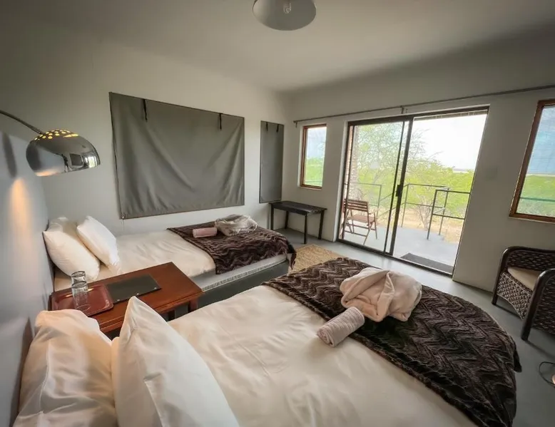 Elegant Accommodations: Uukwaluudhi Safari Lodge in Okahao offers comfortable rooms with private bathrooms, work desks, and free toiletries. Each room features a terrace and a view of the surrounding area. Exceptional Facilities: Guests can relax by the swimming pool with a view, enjoy the terrace, and stay connected with free WiFi. The lodge includes a pool bar and an outdoor seating area for leisure. Dining Experience: The family-friendly restaurant serves lunch and dinner with a continental breakfast. Breakfast includes warm dishes, juice, pancakes, cheese, and fruits. Convenient Location: Located 6.2 mi south-east of Omakange, the lodge provides free on-site private parking. Reception staff speak English, ensuring a pleasant stay. The chalet features 1 bedroom and 1 bathroom with a shower and free toiletries. The chalet has a terrace. The unit offers 2 beds.