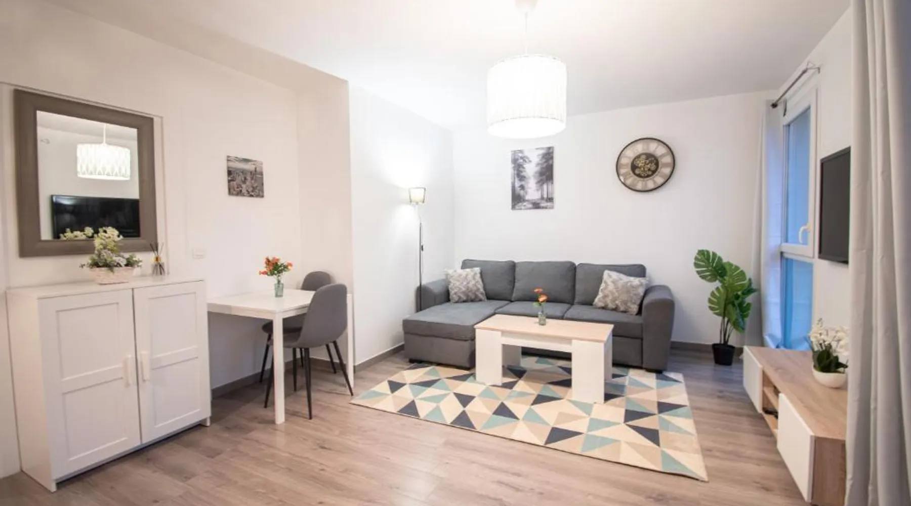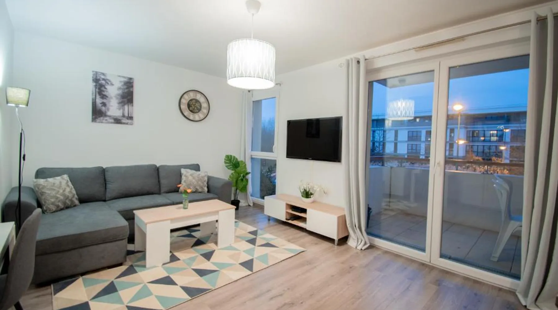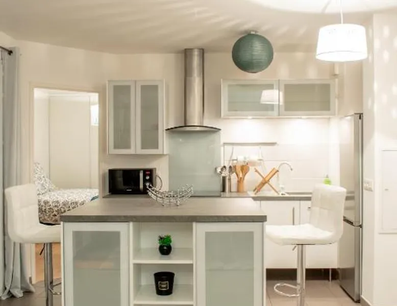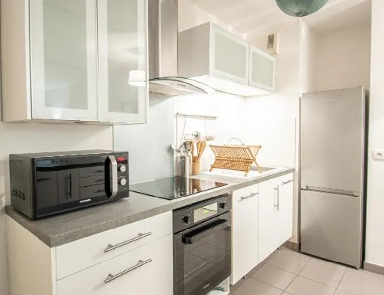 Comfortable Living Space: Le Paisible T2-48m2-Proche Val d'Europe-Disney in Montevrain offers a spacious apartment with one bedroom and a living room. The property features a balcony with garden views, a terrace, and a fully equipped kitchen. Modern Amenities: Guests benefit from a washing machine, dishwasher, microwave, and free on-site parking. Additional facilities include a elevator, electric vehicle charging station, and family rooms. Convenient Location: Located 16 mi from Paris Charles de Gaulle Airport, the apartment is a 16-minute walk from Val d'Europe RER Station. Nearby attractions include Disneyland Paris (3 mi) and Noter Dame Cathedral (24 mi). Guest Satisfaction: Highly rated for its convenient location, sightseeing opportunities, and room cleanliness. Guests can make meals in the kitchen that has a stovetop, a refrigerator, an oven and a microwave. Boasting a balcony with garden views, this apartment also features a washing machine and a flat-screen TV. The unit has 2 beds.