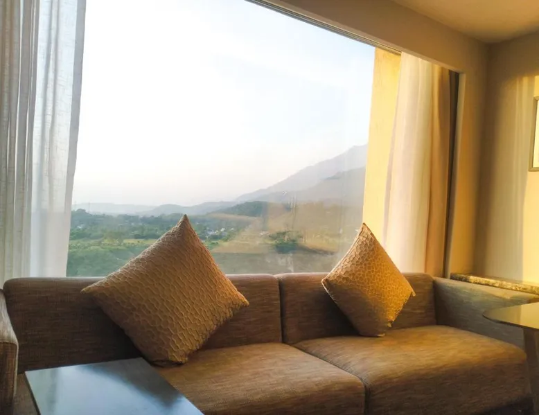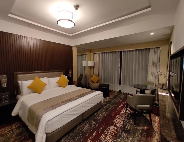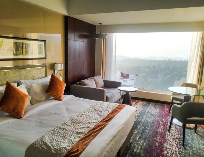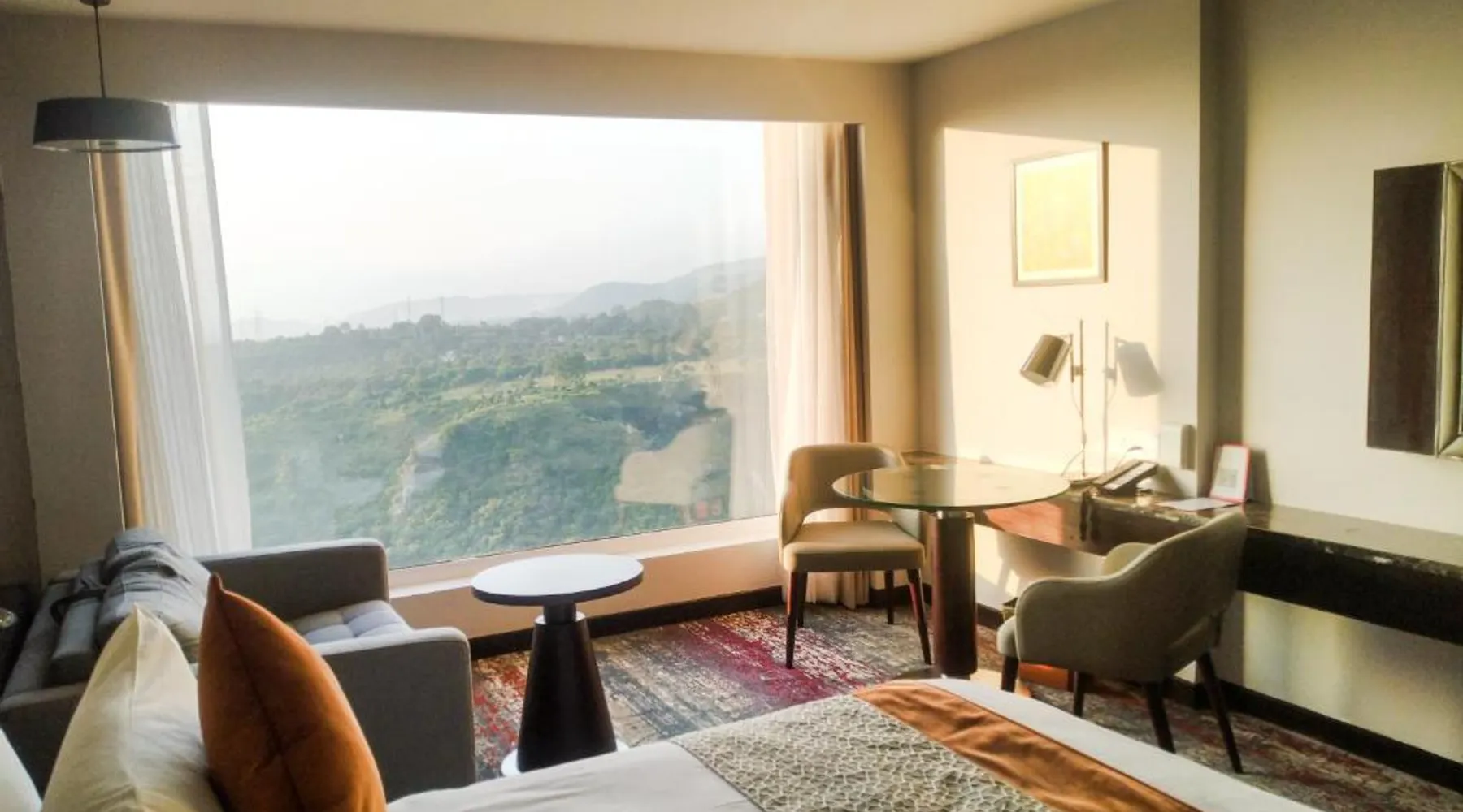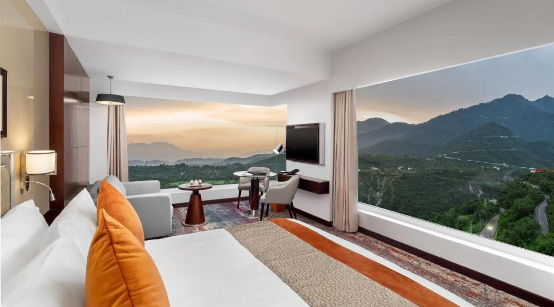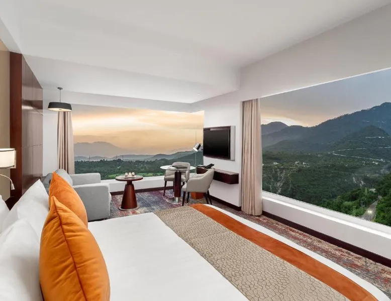 Elegant Accommodations: Welcomhotel By ITC Hotels, Katra in Katra offers a 5-star experience with adults-only access. Guests enjoy a rooftop swimming pool, sauna, and lush garden. Free WiFi is available throughout the property. Comfortable Amenities: The hotel features a family-friendly restaurant serving Chinese, Indian, and Italian cuisines. Additional facilities include a coffee shop, kids' pool, and free on-site private parking. Private check-in and check-out, a 24-hour front desk, and concierge service ensure a comfortable stay. Prime Location: Located 29 mi from Jammu Airport and a 19-minute walk to Vaishno Devi, the hotel provides easy access to local attractions. Guests appreciate the convenient location, attentive staff, and scenic views. The suite features air conditioning, a tea and coffee maker, a seating area and a flat-screen TV with satellite channels. The unit has 1 bed.