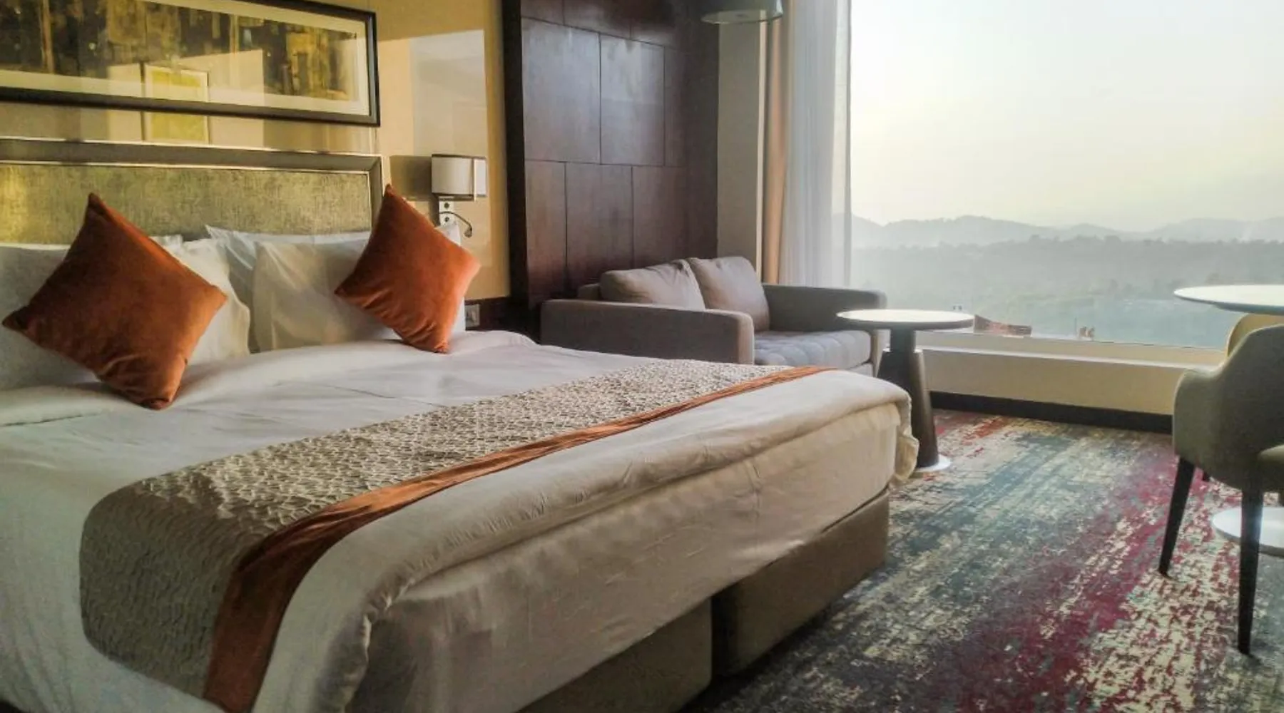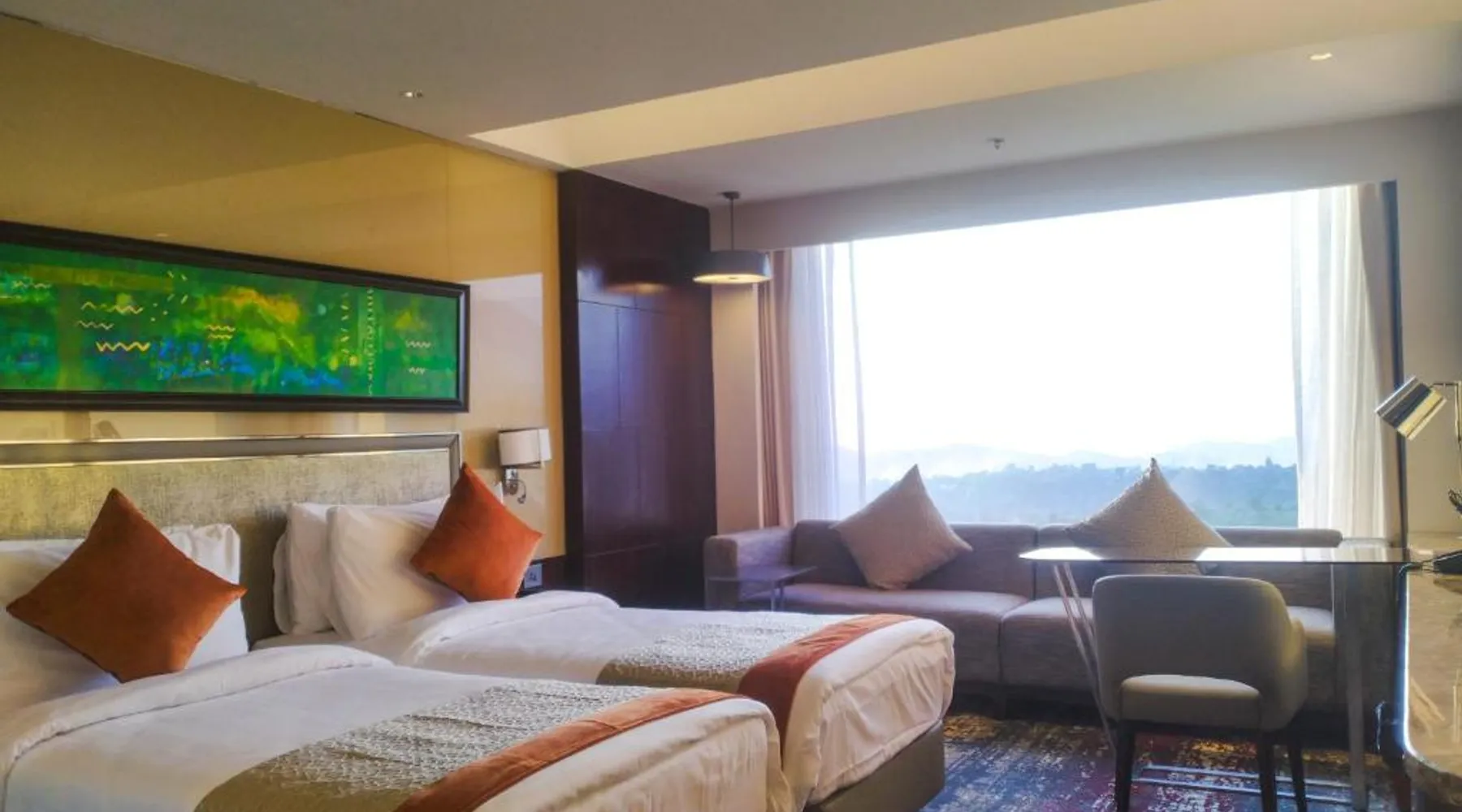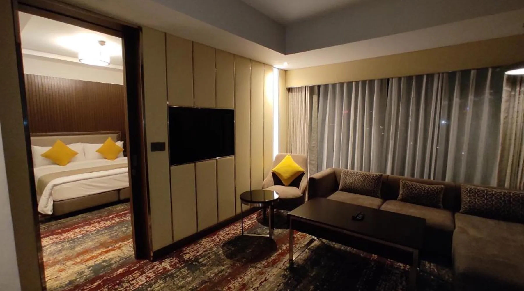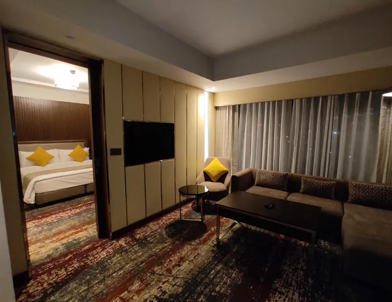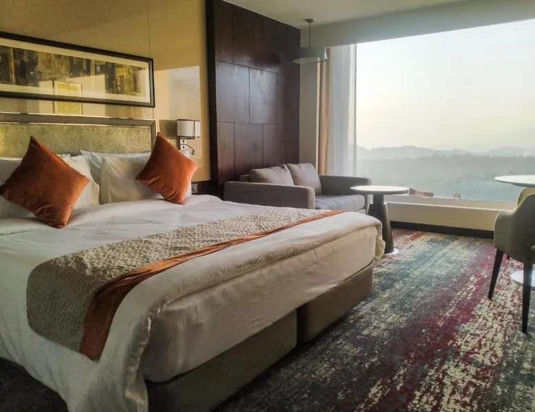 Elegant Accommodations: Welcomhotel By ITC Hotels, Katra in Katra offers a 5-star experience with adults-only access. Guests enjoy a rooftop swimming pool, sauna, and lush garden. Free WiFi is available throughout the property. Comfortable Amenities: The hotel features a family-friendly restaurant serving Chinese, Indian, and Italian cuisines. Additional facilities include a coffee shop, kids' pool, and free on-site private parking. Private check-in and check-out, a 24-hour front desk, and concierge service ensure a comfortable stay. Prime Location: Located 29 mi from Jammu Airport and a 19-minute walk to Vaishno Devi, the hotel provides easy access to local attractions. Guests appreciate the convenient location, attentive staff, and scenic views. The suite features air conditioning, a tea and coffee maker, a seating area and a flat-screen TV with satellite channels. The unit has 1 bed.