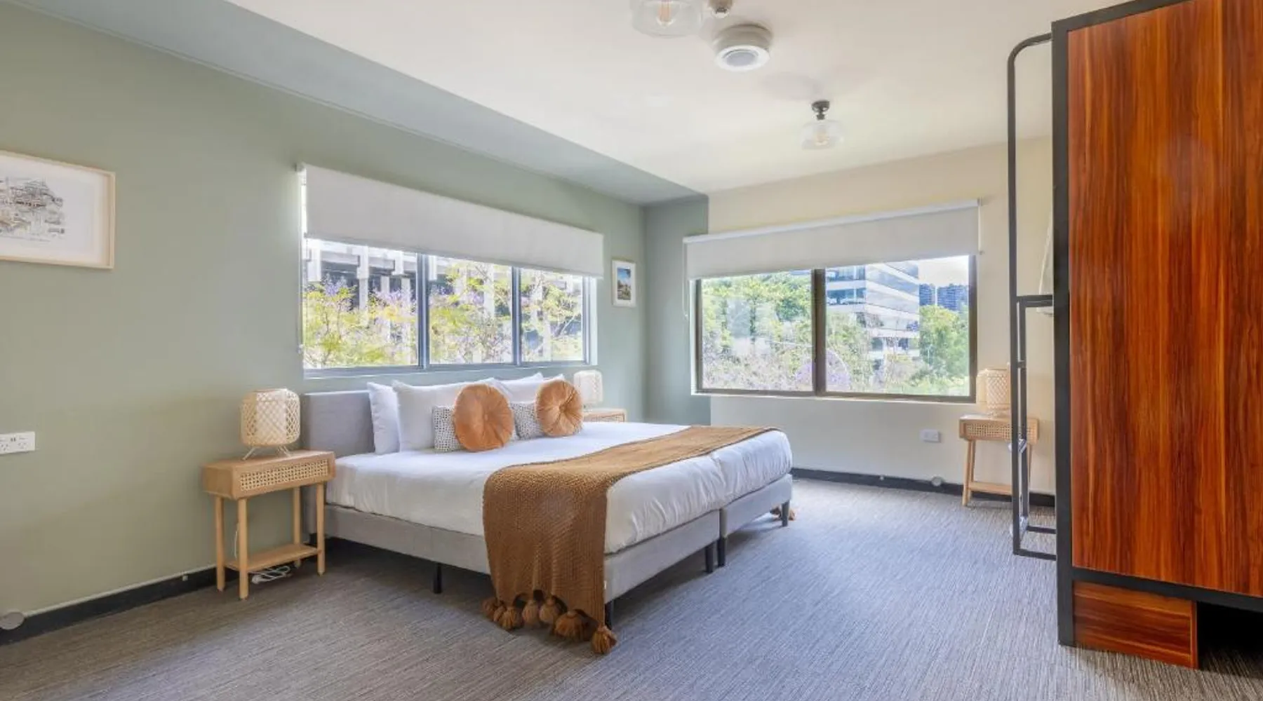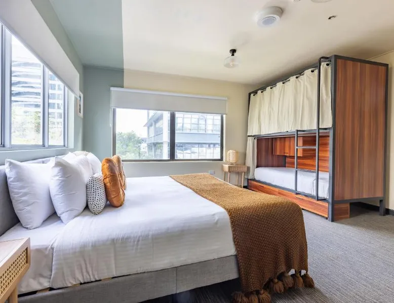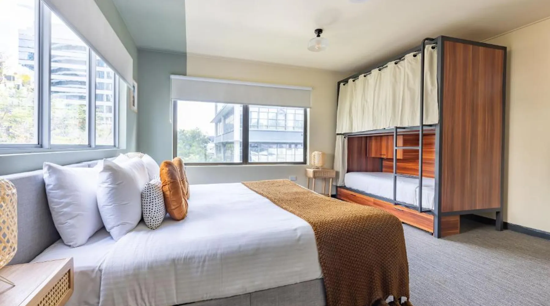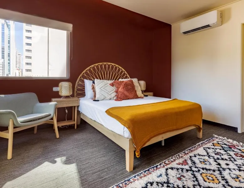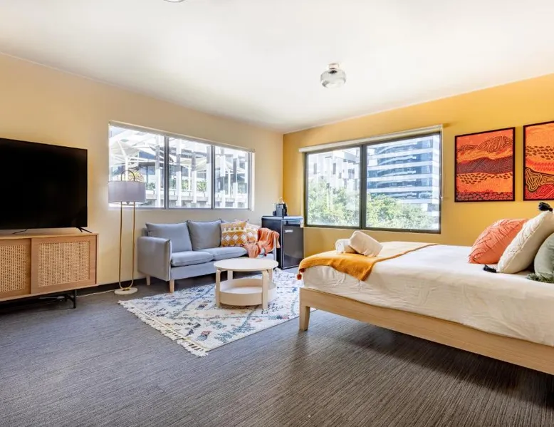 Located in Brisbane's vibrant CBD (Central Business District), Roamer Brisbane is perfectly positioned directly opposite the Roma Street Transit Center. Whether you're here for work, play, or a bit of both, we offer a unique blend of style, comfort, and community. Facilities & Amenities: Choose between dormitory and private rooms, all equipped with private bathrooms and air conditioning. A cozy shared kitchen, cinema room, and lounge room are available for guests. (Laundry room is accessible 7am-7pm, $5.30 per wash/dry payable by card, wash pods available from reception for $1.) 24-hour reception and security, with luggage storage for your convenience. Located just a 5-minute walk from Brisbane city center, and within walking distance of Suncorp Stadium (0.8 mi) and Roma St Station (1476 ft). Visit the Roamer Brisbane Bar, open daily for breakfast, lunch, and dinner. Please Note: - Standard rooms do not include TVs or fridges. Shared kitchens, fridges, cinemas, libraries, and TV rooms are beautifully designed for communal use. - Parking is not available on-site, but there's a secure parking facility just a 15-minute walk away. - International passport will be required for all the guests staying in shared dorms. - Credit card will be required at the check in just for guarantee purposes if any damage occurs. - For group reservations (5 rooms or more), special payment and cancelation policies will apply. - Please be advised that group bookings of 6 or more rooms/beds require additional confirmation from the property. - upper age limit for dormitory stays is under 35 years Come experience the Roamer lifestyle – where community, comfort, and convenience meet! The suite features 1 bedroom and 1 bathroom with a shower and free toiletries. The suite provides air conditioning, a seating area, a sofa, heating and a TV. The unit offers 1 bed.