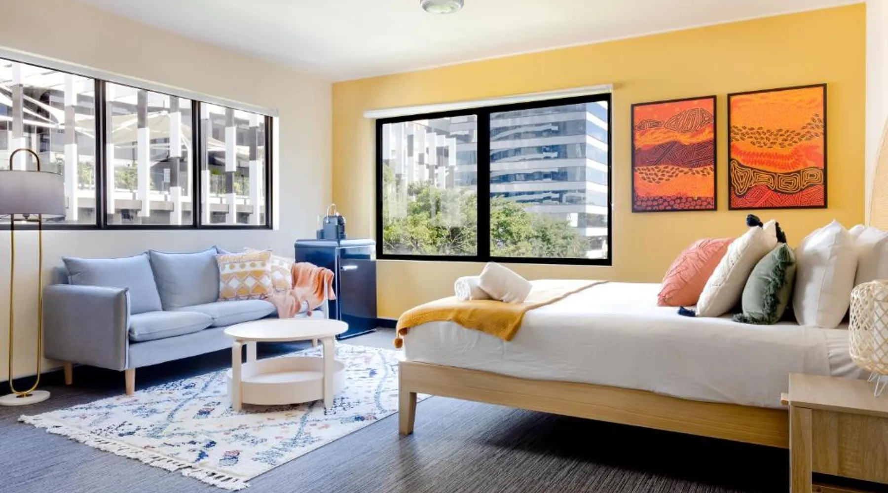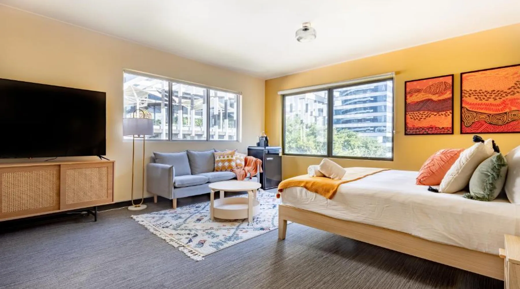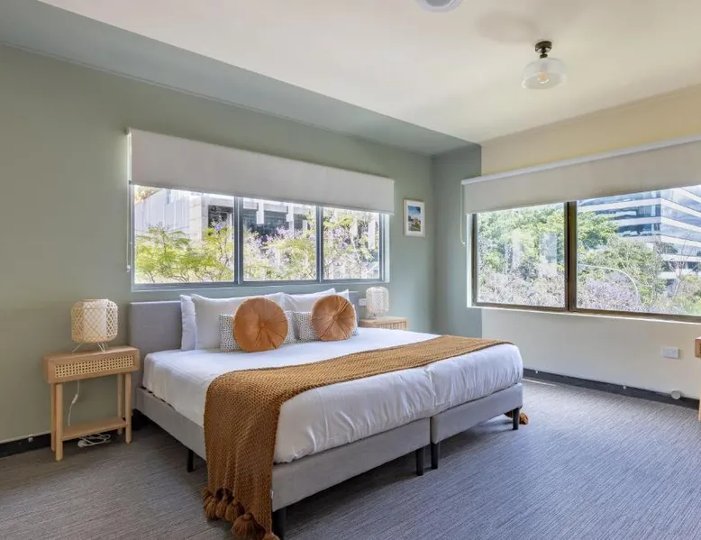 Located in Brisbane's vibrant CBD (Central Business District), Roamer Brisbane is perfectly positioned directly opposite the Roma Street Transit Center. Whether you're here for work, play, or a bit of both, we offer a unique blend of style, comfort, and community. Facilities & Amenities: Choose between dormitory and private rooms, all equipped with private bathrooms and air conditioning. A cozy shared kitchen, cinema room, and lounge room are available for guests. (Laundry room is accessible 7am-7pm, $5.30 per wash/dry payable by card, wash pods available from reception for $1.) 24-hour reception and security, with luggage storage for your convenience. Located just a 5-minute walk from Brisbane city center, and within walking distance of Suncorp Stadium (0.8 mi) and Roma St Station (1476 ft). Visit the Roamer Brisbane Bar, open daily for breakfast, lunch, and dinner. Please Note: - Standard rooms do not include TVs or fridges. Shared kitchens, fridges, cinemas, libraries, and TV rooms are beautifully designed for communal use. - Parking is not available on-site, but there's a secure parking facility just a 15-minute walk away. - International passport will be required for all the guests staying in shared dorms. - Credit card will be required at the check in just for guarantee purposes if any damage occurs. - For group reservations (5 rooms or more), special payment and cancelation policies will apply. - Please be advised that group bookings of 6 or more rooms/beds require additional confirmation from the property. - upper age limit for dormitory stays is under 35 years Come experience the Roamer lifestyle – where community, comfort, and convenience meet! The suite features 1 bedroom and 1 bathroom with a shower and free toiletries. The suite provides air conditioning, a seating area, a sofa, heating and a TV. The unit offers 1 bed.