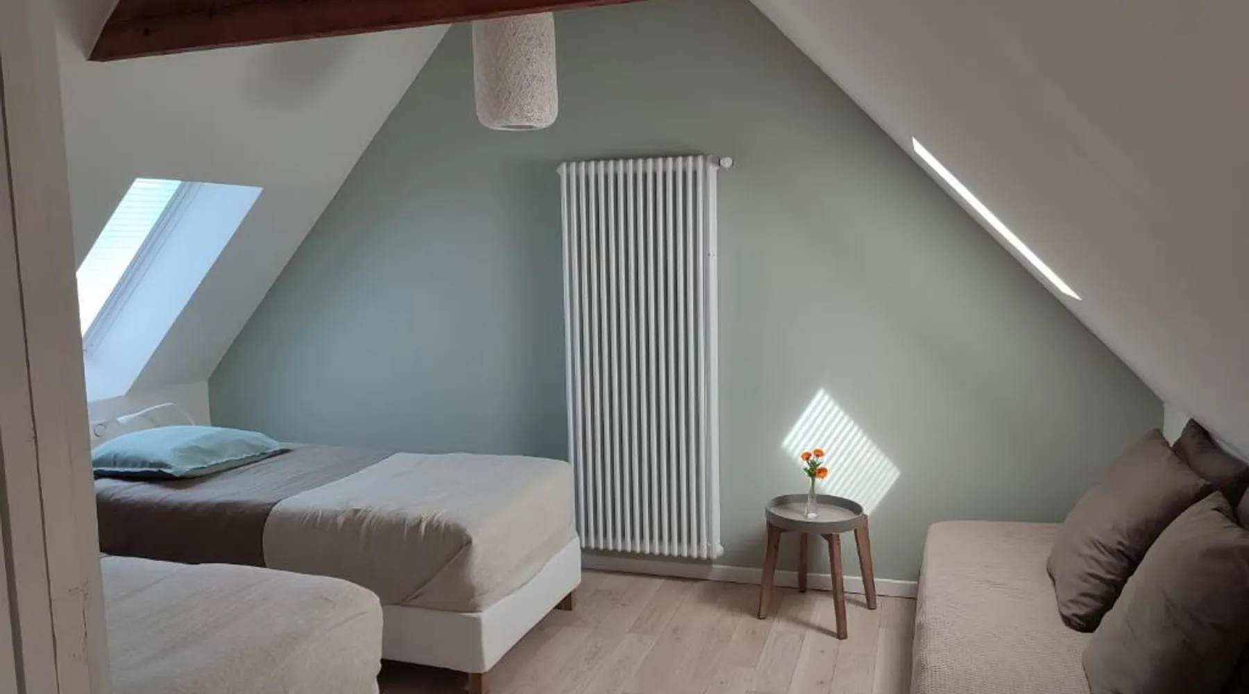Historic Setting: Chambres et tables d'hôtes Cornec in Ploubazlanec offers a historic building with a garden and terrace. Guests enjoy free WiFi, a restaurant, and outdoor seating areas. Comfortable Accommodations: Rooms feature private bathrooms with walk-in showers, garden views, and parquet floors. Additional amenities include sofa beds, hairdryers, and free toiletries. Dining Experience: The restaurant serves dinner with vegetarian and vegan options. Breakfast includes continental, buffet, and vegetarian, vegan, and gluten-free selections. Local Attractions: Launay Beach is a 19-minute walk away. Brest Bretagne Airport is 86 mi from the property. Nearby attractions include Saint-Brieuc Cathedral (31 mi) and Ajoncs-d'Or Golf Course (20 mi). The spacious twin/double room features parquet floors, heating, as well as a private bathroom boasting a walk-in shower and a hairdryer. The twin/double room has garden views.