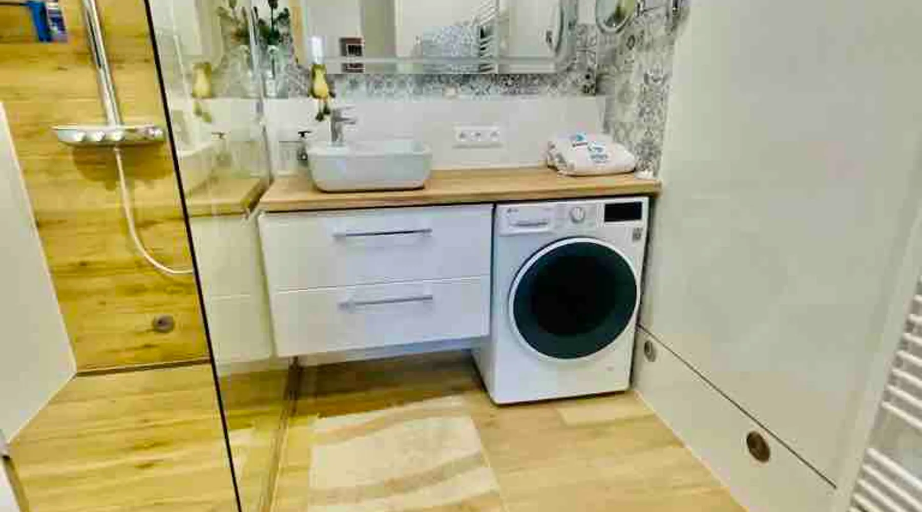 This stylish apartment is ideal for max up to 3 people with a beautiful view of the Bratislava city and Austria.Quiet evening sitting on the terrace ideal for relaxing by the winery. U need just a toothbrush. Bedroom with two wardrobe+ kingsize comfortable bed. Condo has a separate WC,beautiful above-standard furnished bathroom with a shower system imitating rain+massage Stretch leather sleeping couch,big TV +Netflix Gratis,Youtube local TV +GRATIS Welcome Drink The space CITYPARK RUZINOV building complex The whole apartment is fully furnished to a high standard with beautiful views in the center of Bratislava - accommodate a 3rd person sleeping on the couch (extra fee per 3rd person 15,-€ per night) +MINIBar with alco and nonalco drink for fee Guest access U can use Bus -3 mins from accomodation Taxi via uber Or own car- we can offer you private parking in the building for 12,-€ per night or (28 days/75,-€) Other things to note - when staying for 28 days you can use 5 m3 of water, in case of pumping more than 5 m3 a surcharge for water is required (15,-m3) - no visitors Allowed !!! (only for 100% fee of the booking) - No pets allowed - Night rest between 20:00 and 8:00 (8:00pm-8:00AM) Privat Parking 75,-€/month or 12-€/day Check in at 14:00-18:00pm Late check in 19:00-21:00 is for fee 40,-€ Checkout at 11:00 am Late checkout at 13:00 -14:00 pm is for fee 40,-€