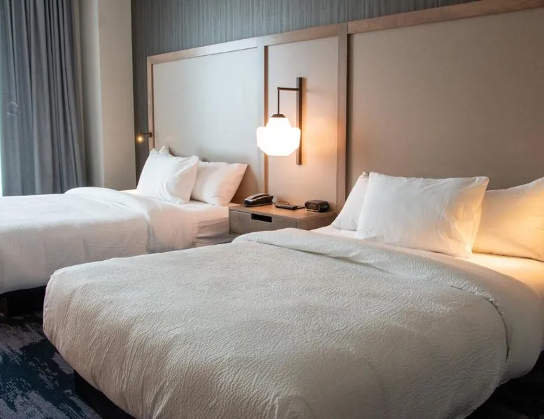 Comfortable Accommodations: Fairfield Inn & Suites by Marriott Davenport Quad Cities in Davenport offers family rooms with air-conditioning. Each room includes free WiFi, ensuring a pleasant stay. Exceptional Facilities: Guests can enjoy an indoor swimming pool and a 24-hour front desk. Free on-site parking is available, along with a variety of amenities for added convenience. Convenient Location: Located 9.3 mi from Quad City International Airport, the hotel is near attractions such as Fryxell Geology Museum (6.8 mi) and Quad Cities Waterfront Convention Center (3.7 mi). Guest Satisfaction: Highly rated for room cleanliness, breakfast provided by the property, and attentive staff and service support. The double room offers air conditioning. The unit has 3 beds.
