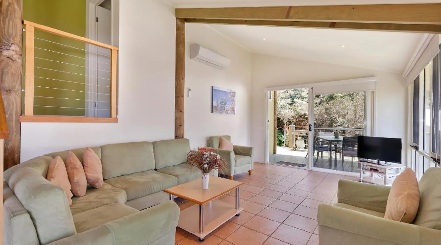 Tathra Beach House is located directly opposite Tathra's famous surf beach. Set in landscaped grounds with native gardens, ponds and waterfalls, it features 2 swimming pools and 1 spa pool. All accommodations at Tathra Beach House Holiday Apartments features a private balcony, bathroom, air conditioning and tea/coffee making facilities. Free Wi-Fi access is included. Apartments with separate bedrooms, kitchen, dining and living areas, and a secure garage are available. Most rooms have views of the pool and gardens. Some rooms offer ocean views. Facilities include a hydrotherapy swim spa, barbecue area and guest laundry. Free covered car parking is provided. Continental breakfast is available at an extra charge. Tathra Beach Country Club is a 2-minute drive from Tathra Beach House Apartments. Mimosa Rocks National Park is only 8.1 mi away. Featuring a private entrance, this air-conditioned apartment is consisted of of 1 living room, 3 separate bedrooms and 2 bathrooms with a walk-in shower and a bath. Guests will find a stovetop, a refrigerator, a dishwasher and kitchenware in the fully equipped kitchen. The apartment also has a barbecue. The spacious apartment offers a flat-screen TV with cable channels, a washing machine, soundproof walls, a tea and coffee maker as well as sea views. The unit offers 5 beds.
