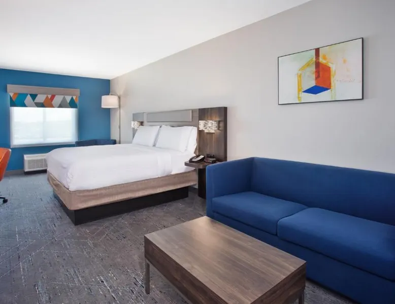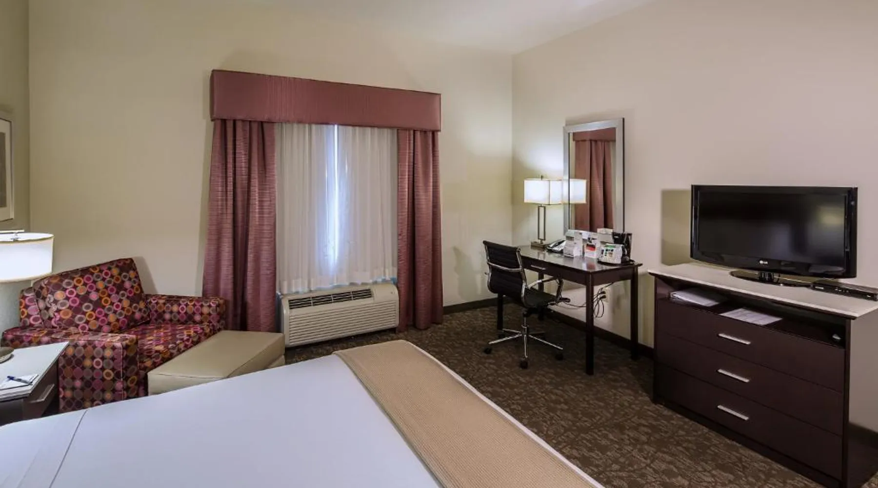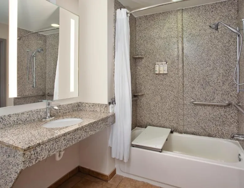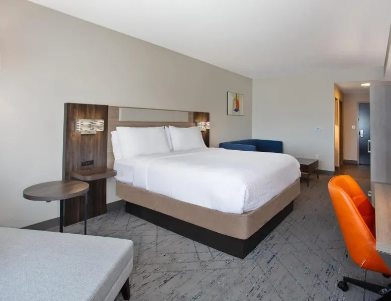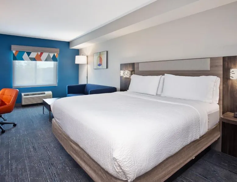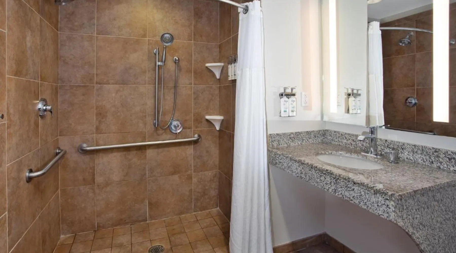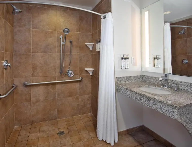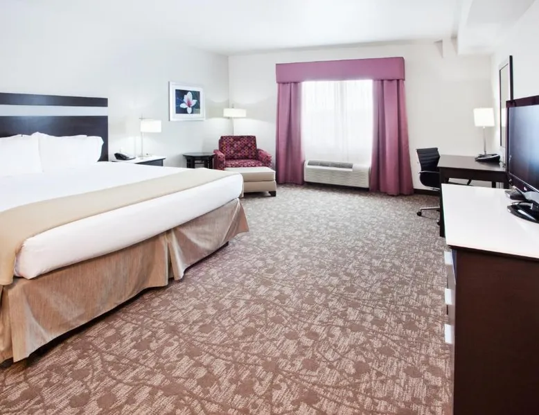 Comfortable Accommodations: Holiday Inn Express Augusta North by IHG in Augusta offers air-conditioned rooms with private bathrooms, baths, tea and coffee makers, hairdryers, refrigerators, work desks, seating areas, free toiletries, microwaves, and TVs. Facilities and Services: Guests enjoy a fitness center, indoor swimming pool, hot tub, elevator, 24-hour front desk, room service, and free on-site parking. The property staff and service support receive high ratings from guests. Local Attractions: Located 16 mi from Augusta Regional Airport, the hotel is near Augusta Golf Club (1.9 mi), Augusta National Golf Club (3.7 mi), Augusta Museum of History (6.2 mi), and Augusta Mall (5.6 mi). This spacious room with disability access is fitted with 1 king-size bed and a roll-in shower.