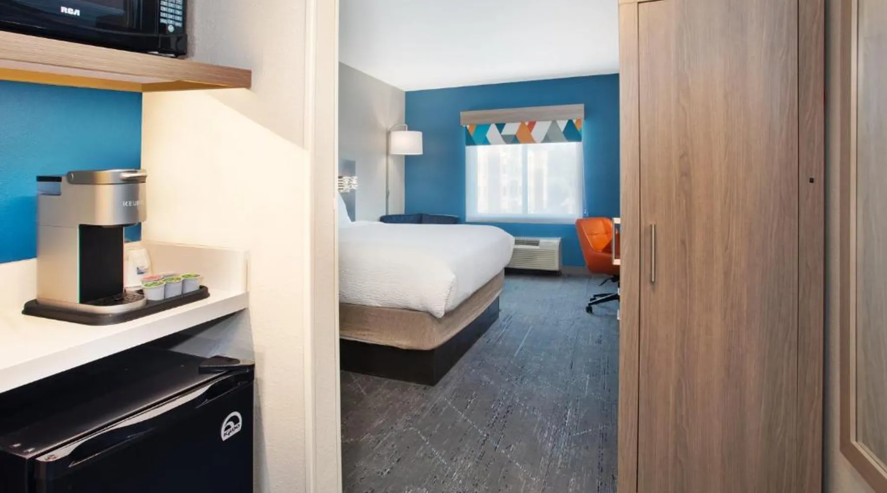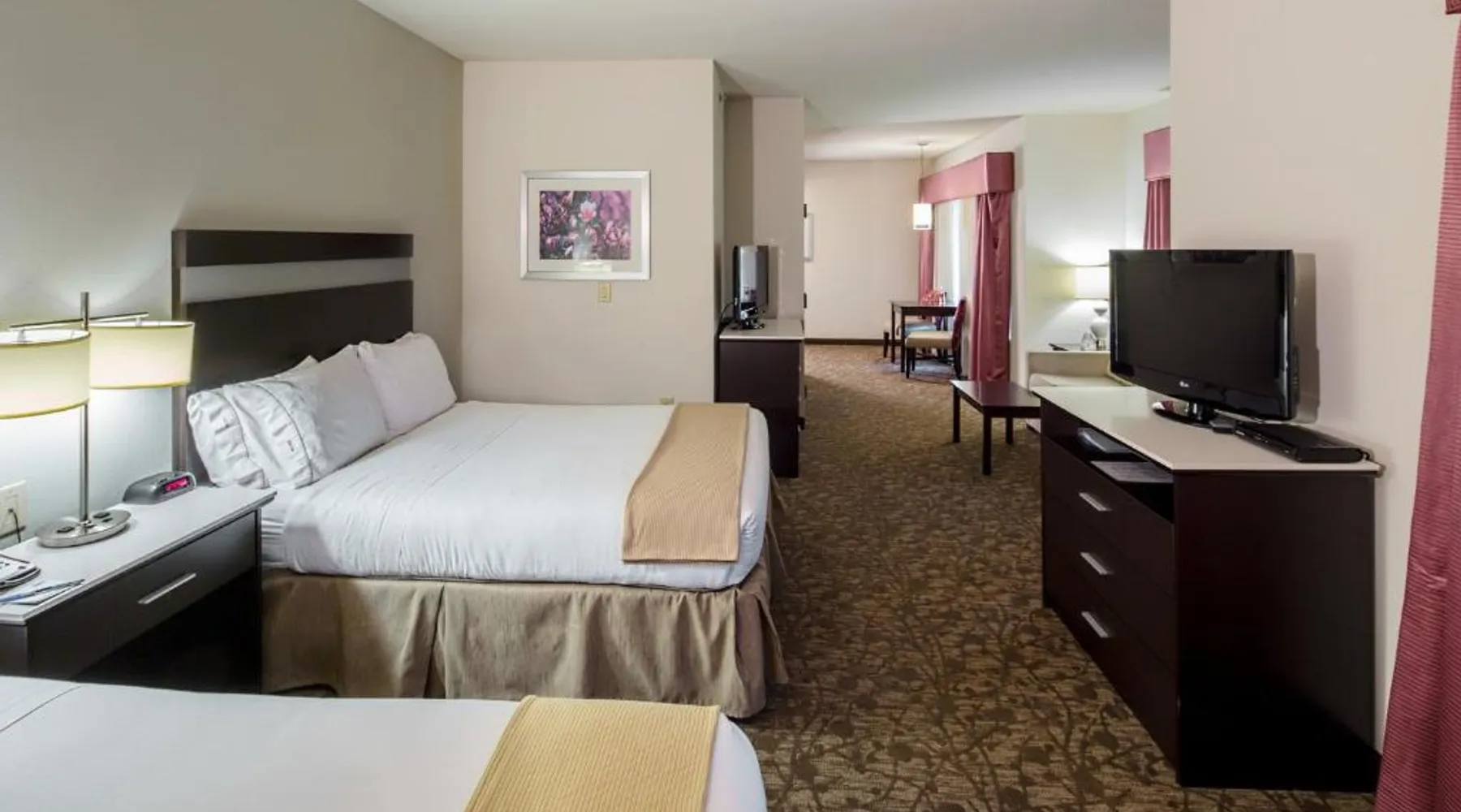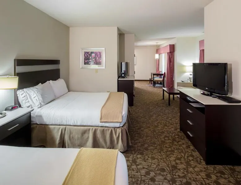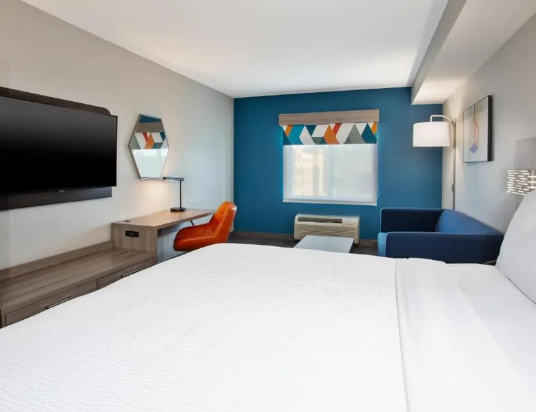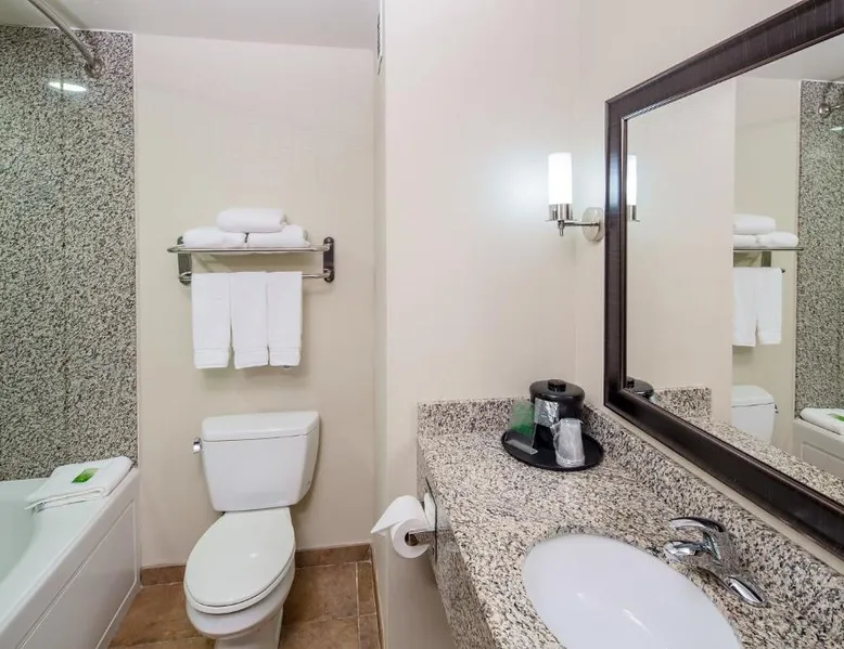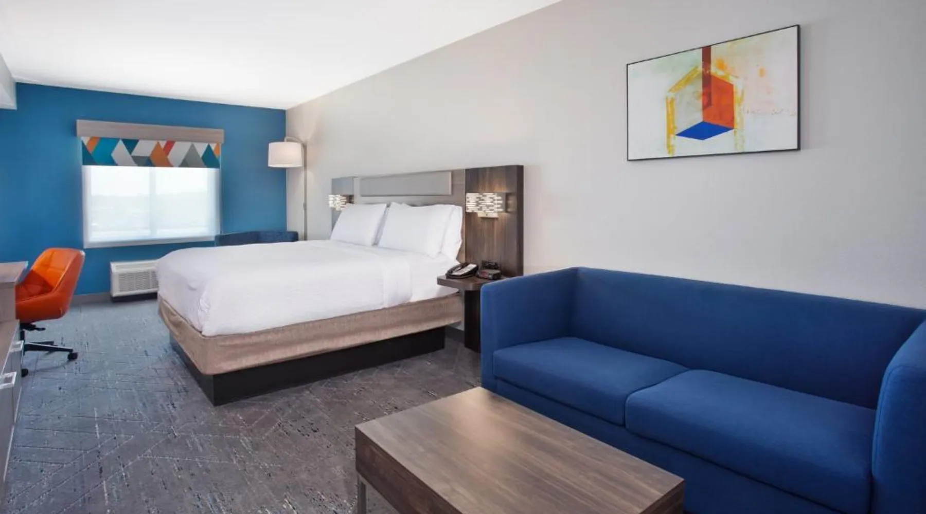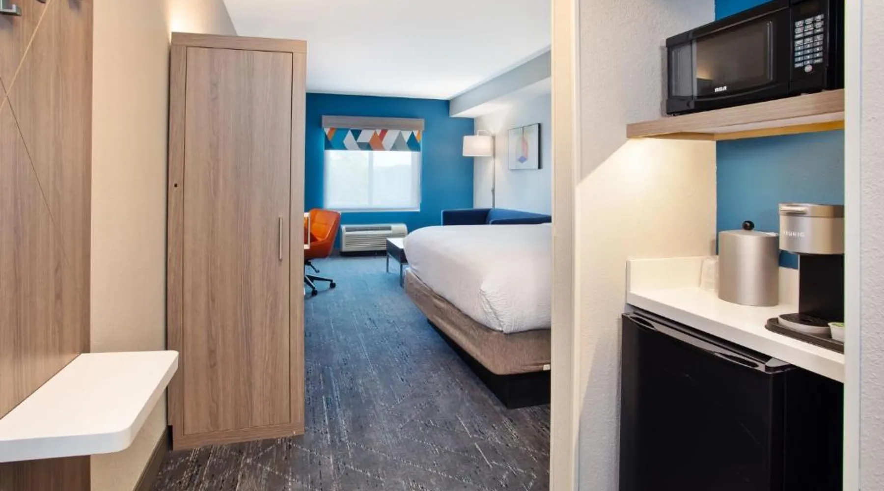 Comfortable Accommodations: Holiday Inn Express Augusta North by IHG in Augusta offers air-conditioned rooms with private bathrooms, baths, tea and coffee makers, hairdryers, refrigerators, work desks, seating areas, free toiletries, microwaves, and TVs. Facilities and Services: Guests enjoy a fitness center, indoor swimming pool, hot tub, elevator, 24-hour front desk, room service, and free on-site parking. The property staff and service support receive high ratings from guests. Local Attractions: Located 16 mi from Augusta Regional Airport, the hotel is near Augusta Golf Club (1.9 mi), Augusta National Golf Club (3.7 mi), Augusta Museum of History (6.2 mi), and Augusta Mall (5.6 mi). This spacious room with disability access is fitted with 1 king-size bed and a roll-in shower.
