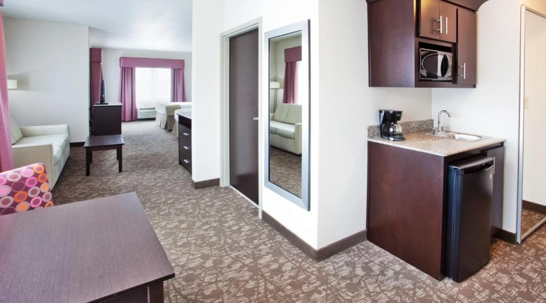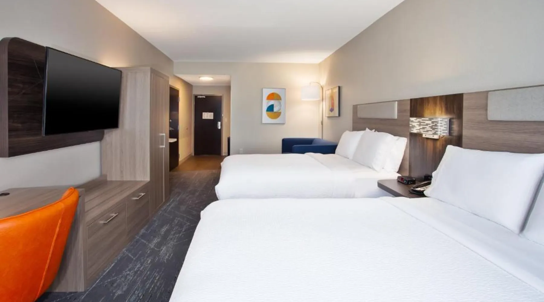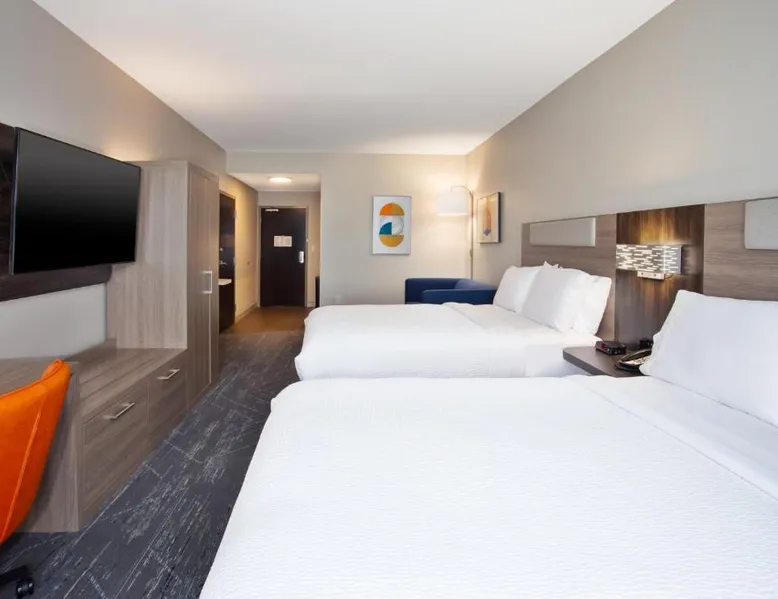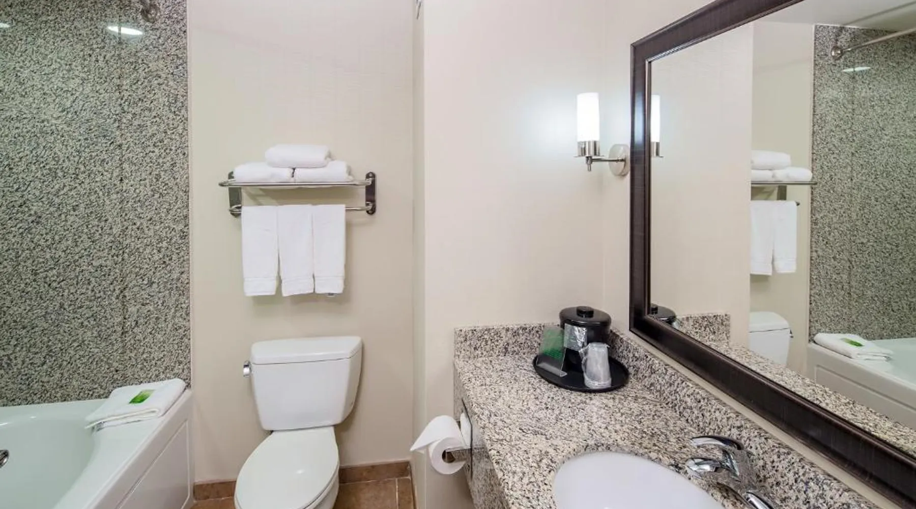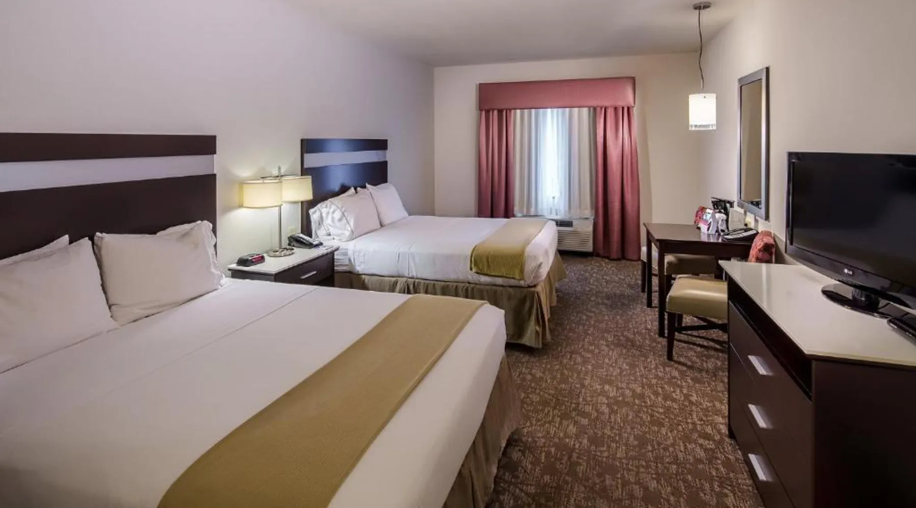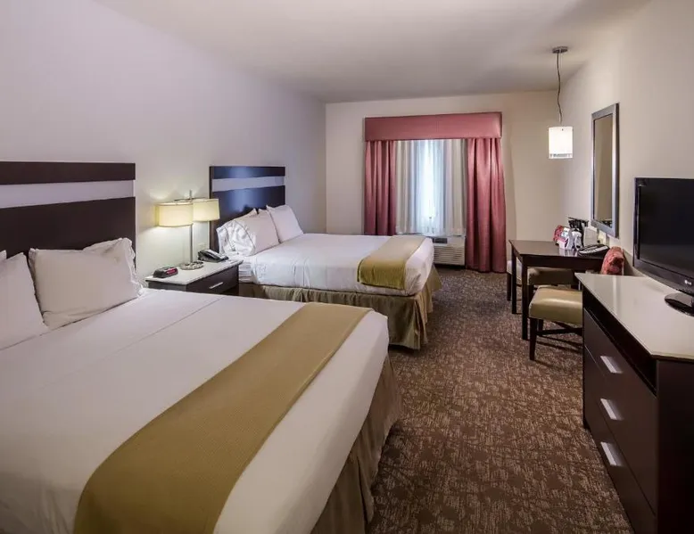 Comfortable Accommodations: Holiday Inn Express Augusta North by IHG in Augusta offers air-conditioned rooms with private bathrooms, baths, tea and coffee makers, hairdryers, refrigerators, work desks, seating areas, free toiletries, microwaves, and TVs. Facilities and Services: Guests enjoy a fitness center, indoor swimming pool, hot tub, elevator, 24-hour front desk, room service, and free on-site parking. The property staff and service support receive high ratings from guests. Local Attractions: Located 16 mi from Augusta Regional Airport, the hotel is near Augusta Golf Club (1.9 mi), Augusta National Golf Club (3.7 mi), Augusta Museum of History (6.2 mi), and Augusta Mall (5.6 mi). This spacious room with disability access is fitted with 1 king-size bed and a roll-in shower.