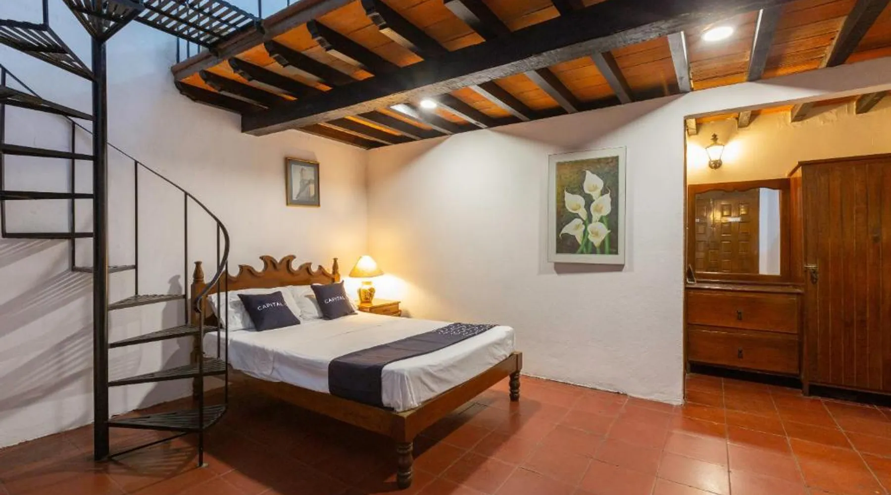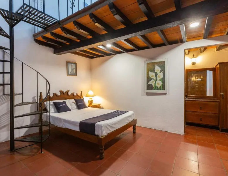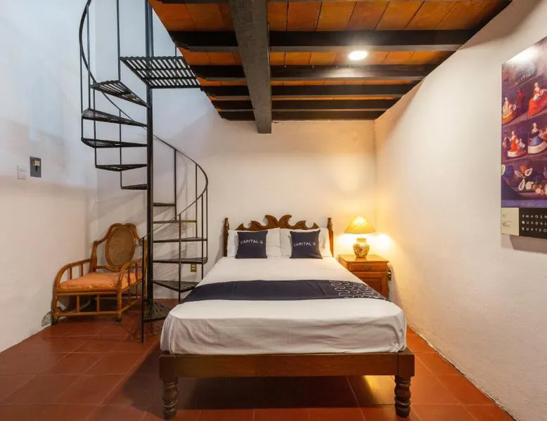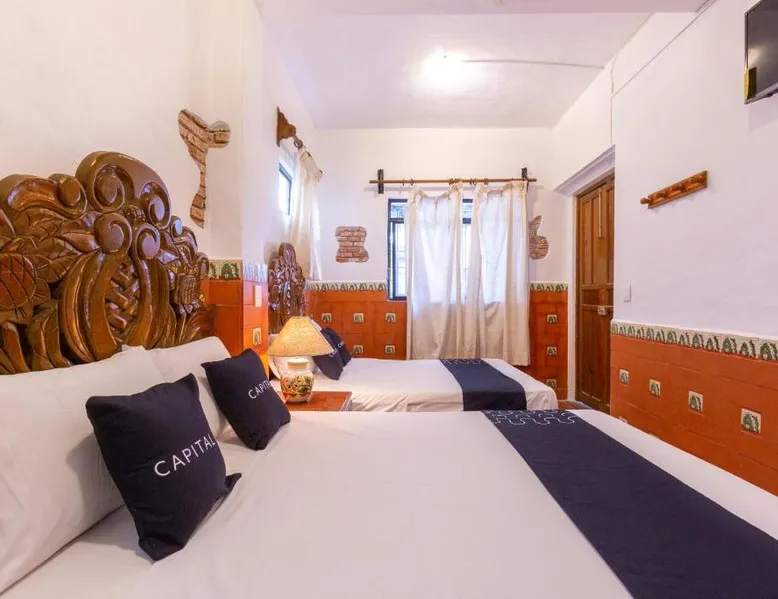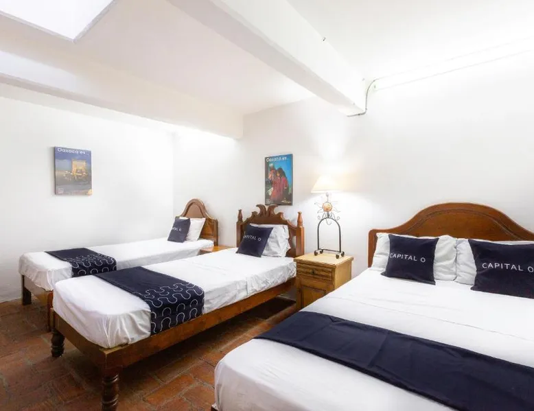 Comfortable Accommodations: Capital O Posada La Casa De La Tia in Oaxaca City offers 4-star comfort with private bathrooms, city views, and modern amenities. Each room includes a work desk, seating area, free toiletries, shower, carpeted floors, TV, wardrobe, and soundproofing. Dining and Leisure: Guests can enjoy meals at the on-site restaurant serving lunch and dinner. The bar provides a relaxing space to unwind. Free WiFi is available throughout the property. Convenient Location: Located 4.3 mi from Oaxaca International Airport, the hotel is a short walk from Oaxaca Cathedral (6 minutes) and Santo Domingo Temple (1969 feet). Nearby attractions include Monte Alban (5 mi) and Tule Tree (6.2 mi). Guest Services: The hotel features a 24-hour front desk with English and Spanish-speaking staff. Guests appreciate the convenient location, attentive staff, and excellent service support. Offering free toiletries, this triple room includes a private bathroom with a shower. The triple room offers a flat-screen TV with cable channels, a private entrance, soundproof walls, a seating area as well as city views. The unit offers 2 beds.