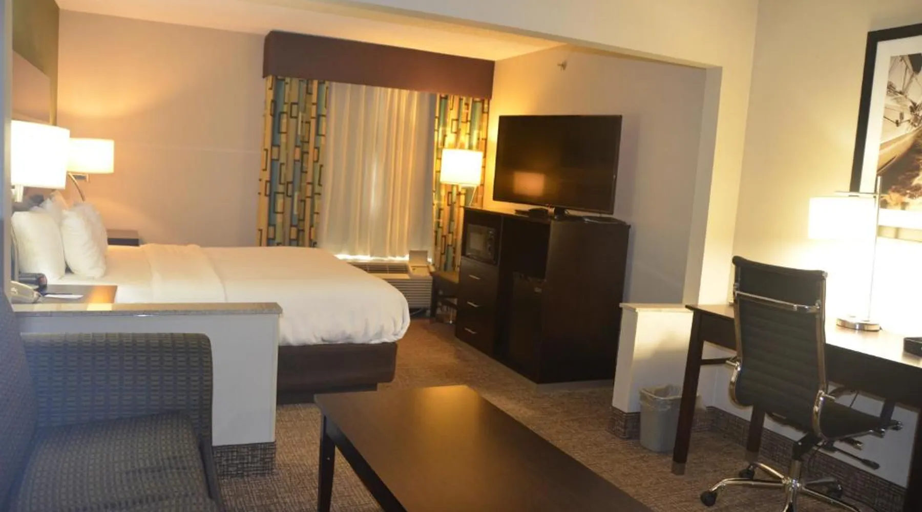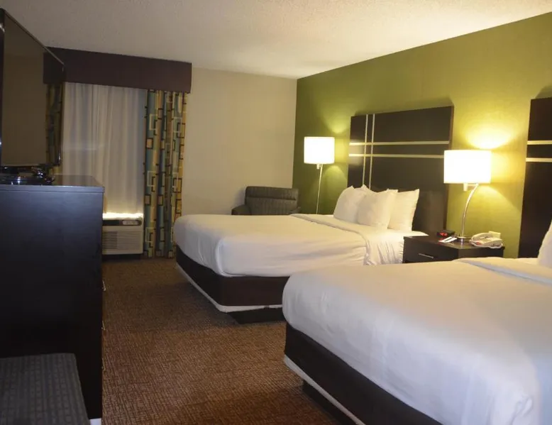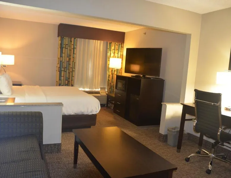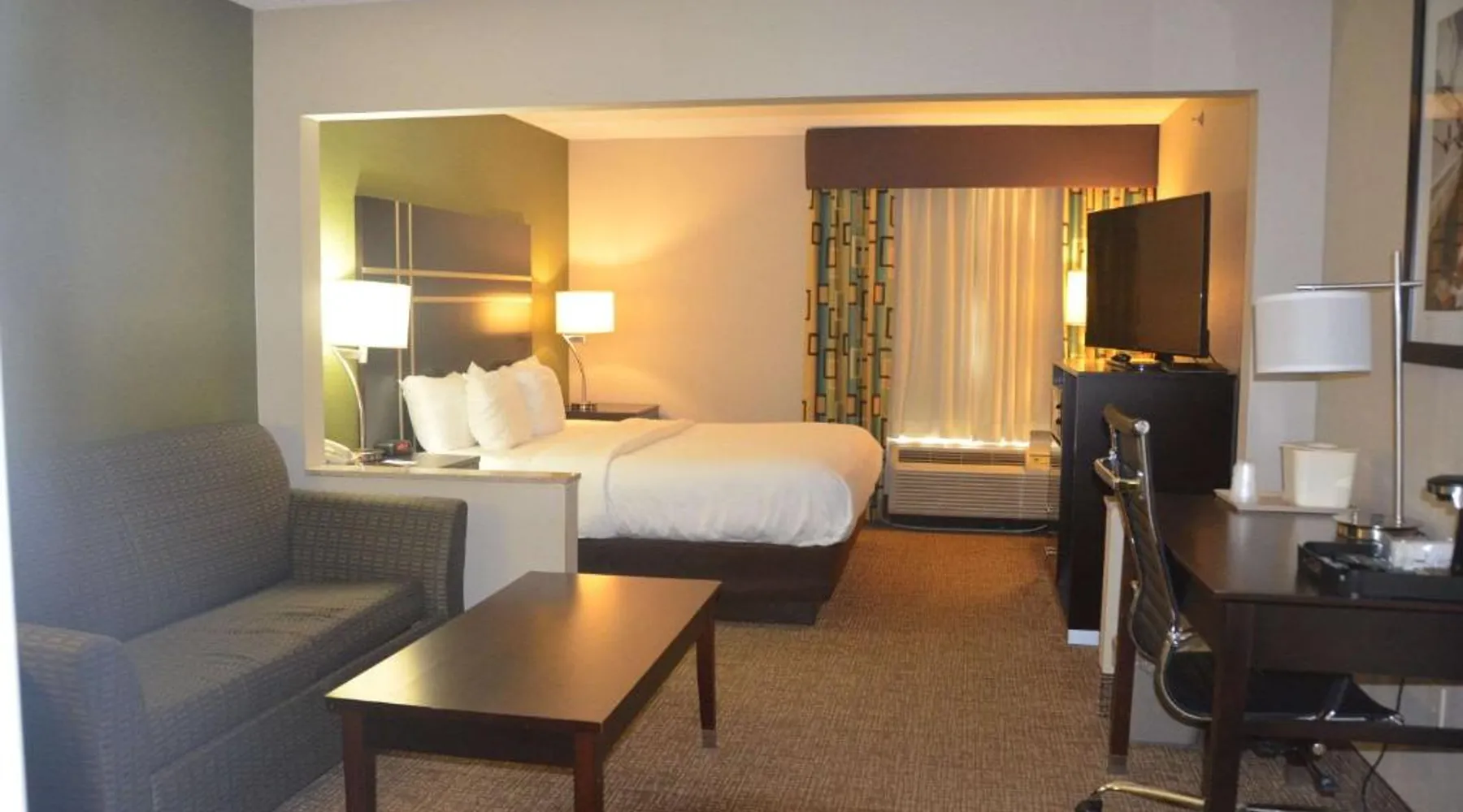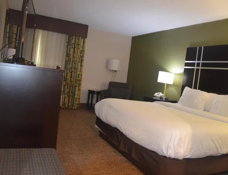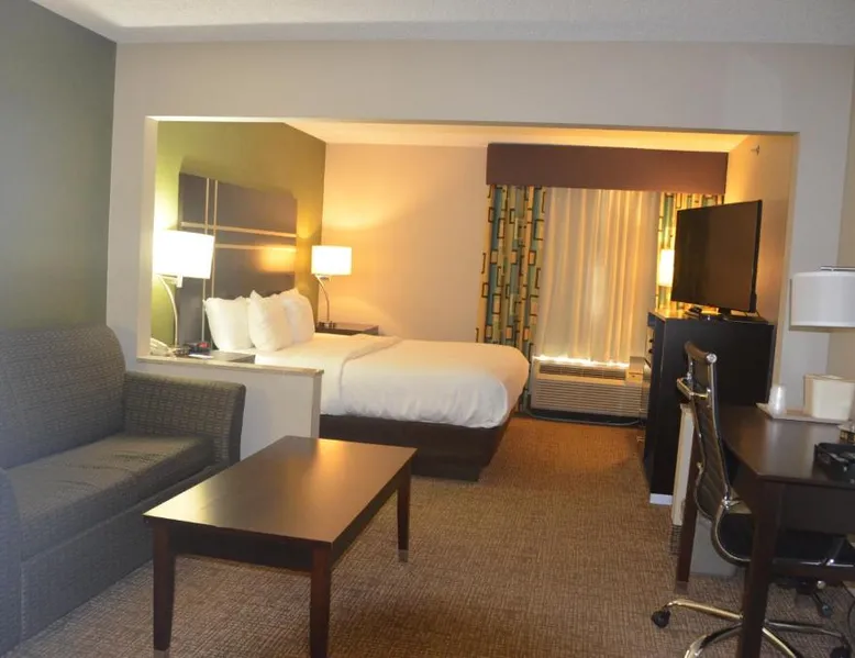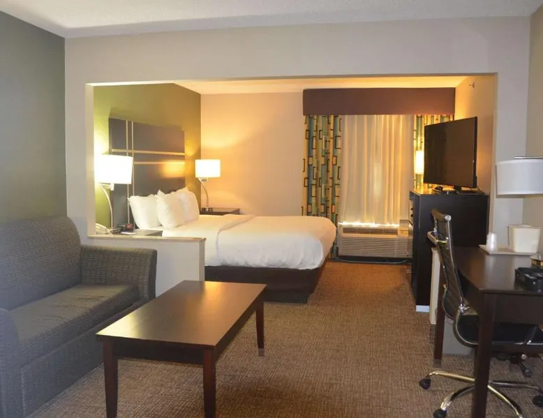 The Comfort Inn & Suites hotel is located off Interstate 80/90 and close to Arrowhead Business Park and the Lucas County Recreational Center. The Toledo Zoo, Hollywood Casino Toledo and Imagination Station, a hands-on science museum, are nearby. Toledo's SeaGate Convention Center, University of Toledo, the University of Toledo Health Science Campus, Bowling Green State University and downtown Toledo are just 10 minutes away. Stranahan Theater is only one mile away. Other attractions close by include Toledo Botanical Garden, Toledo Speedway, Maumee SportsMall, Maumee Antique Mall, Raceway Park harness race track, Valentine Theater and Fifth Third Field, home to the Toledo Mud Hens. It is close to The Shops at Fallen Timbers and Levis Commons shopping, dining and entertainment district. A wide variety of restaurants nearby include Red Lobster, Cracker Barrel Old Country Store, Bob Evans, Olive Garden, Outback Steakhouse, LongHorn Steakhouse and Applebee's. It offers full-service amenities including free hot breakfast, free wired and wireless high-speed Internet access, on-site fitness center and free pass to Urban Active Fitness, indoor pool, hot tub and free newspaper. Business travelers will appreciate the lobby computer with free high-speed Internet and access to copy and fax services. There is also a hospitality room that can be used for business meetings and other events. All guest rooms come equipped with microwaves, refrigerators and 32-inch flat-screen televisions. King suite have a separate sitting area with a sofa sleeper. The hotel also offers whirlpool suites for guest relaxation and rejuvenation. This double room is air-conditioned and has a TV with cable channels, a tea and coffee maker and a seating area. The unit has 1 bed.