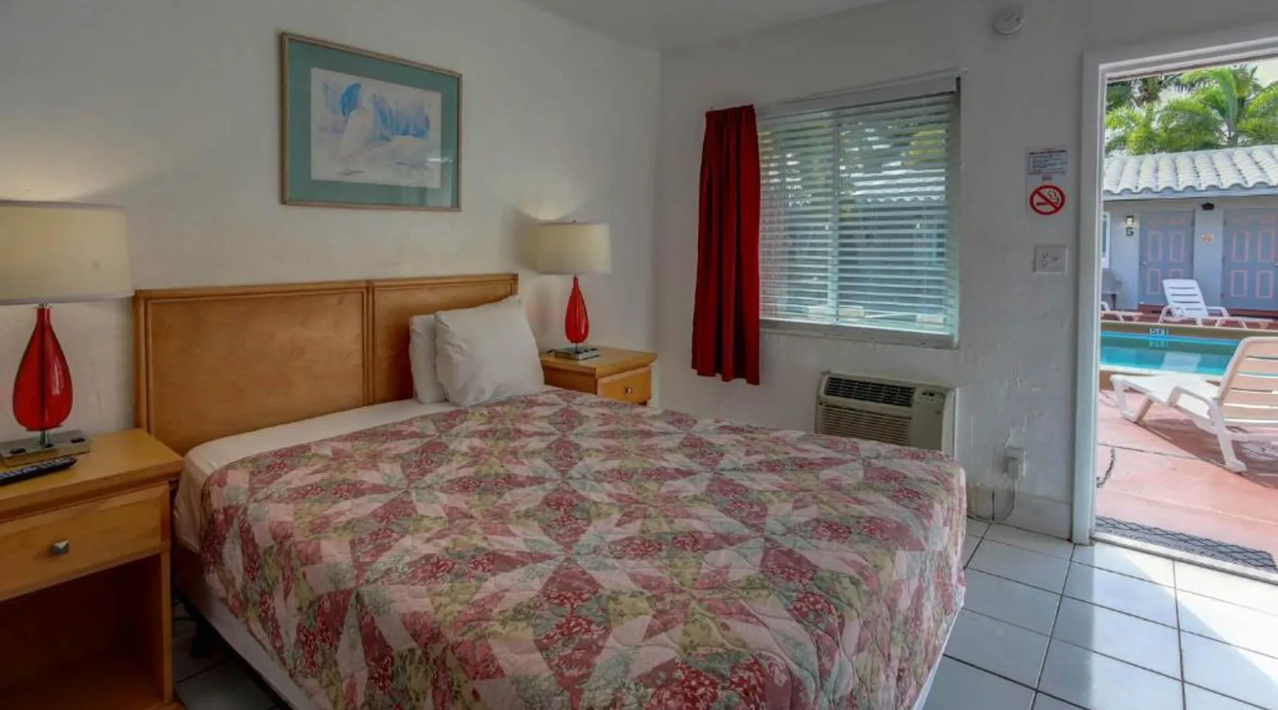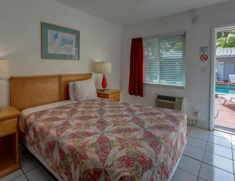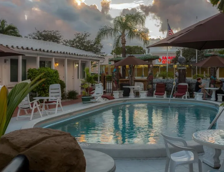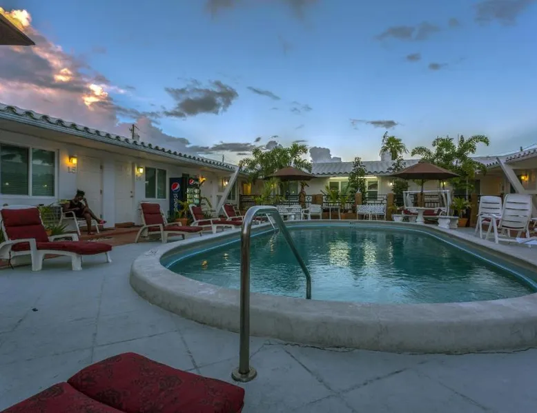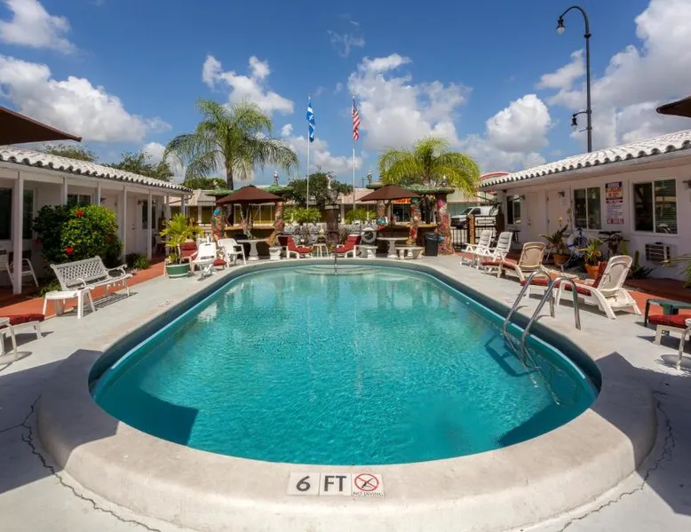 Comfortable Accommodations: Green Seas Motel in Hollywood offers 3-star comfort with air-conditioning, private bathrooms, and ground-floor units. Each room includes a refrigerator, microwave, TV, and tiled floors. Essential Facilities: Guests enjoy a garden and free WiFi. The property features a swimming pool and a 24-hour front desk. Free on-site private parking is available. Convenient Location: Located 5.6 mi from Fort Lauderdale-Hollywood International Airport, the hotel is near attractions such as Seminole Hard Rock Hotel & Casino (8.7 mi) and Fort Lauderdale Beach Park (9.9 mi). Guests appreciate the convenient location and excellent swimming pool. The studio's kitchen, which features a refrigerator and a microwave, is available for cooking and storing food. This air-conditioned studio includes a flat-screen TV with cable channels and a private bathroom. The unit offers 1 bed.