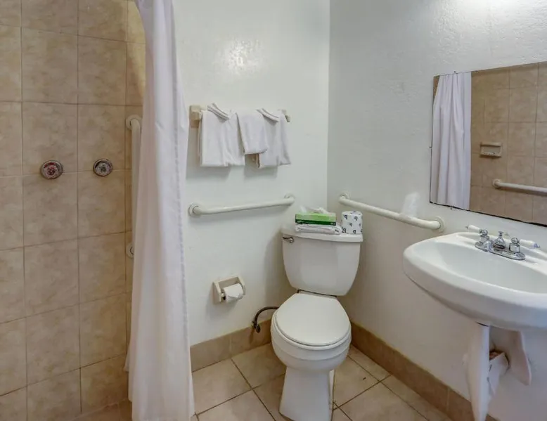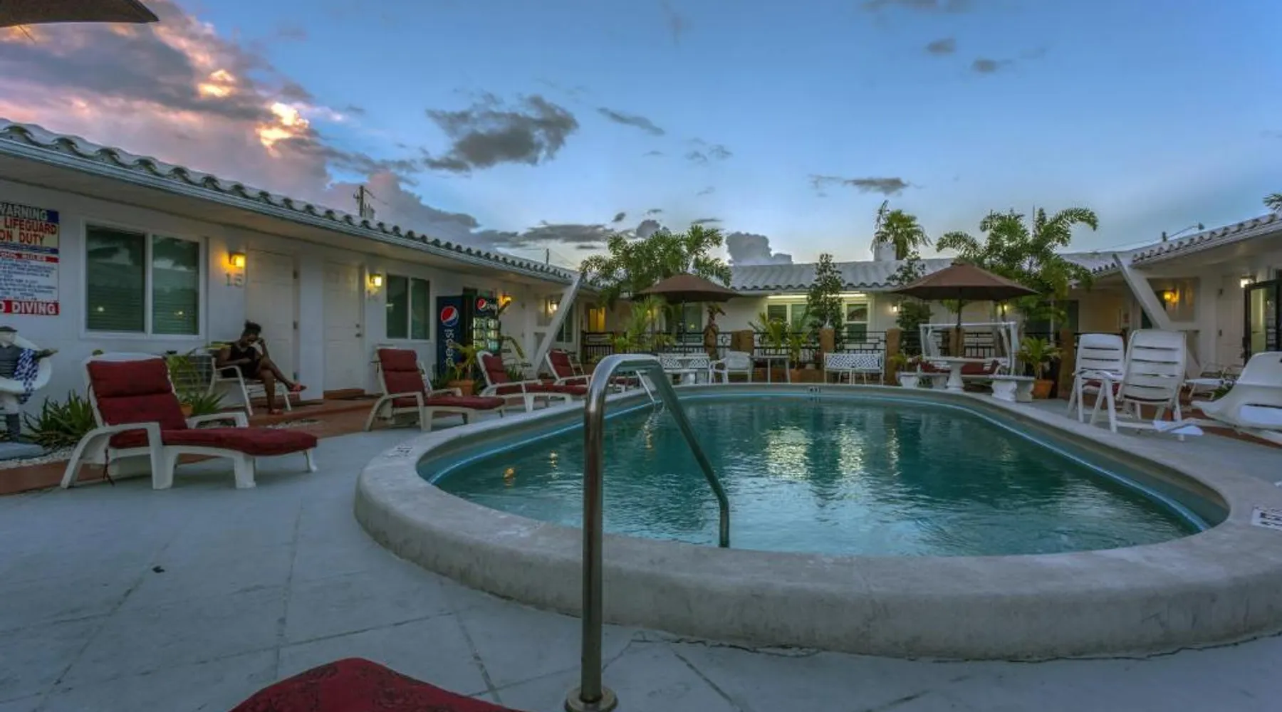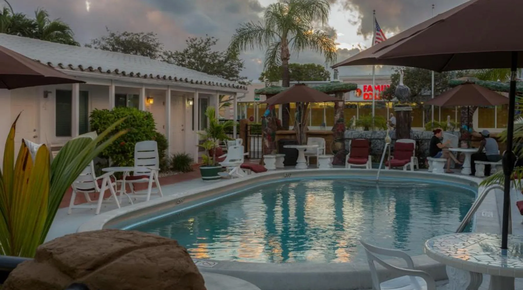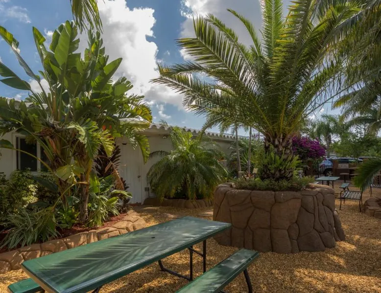 Comfortable Accommodations: Green Seas Motel in Hollywood offers 3-star comfort with air-conditioning, private bathrooms, and ground-floor units. Each room includes a refrigerator, microwave, TV, and tiled floors. Essential Facilities: Guests enjoy a garden and free WiFi. The property features a swimming pool and a 24-hour front desk. Free on-site private parking is available. Convenient Location: Located 5.6 mi from Fort Lauderdale-Hollywood International Airport, the hotel is near attractions such as Seminole Hard Rock Hotel & Casino (8.7 mi) and Fort Lauderdale Beach Park (9.9 mi). Guests appreciate the convenient location and excellent swimming pool. The studio's kitchen, which features a refrigerator and a microwave, is available for cooking and storing food. This air-conditioned studio includes a flat-screen TV with cable channels and a private bathroom. The unit offers 1 bed.