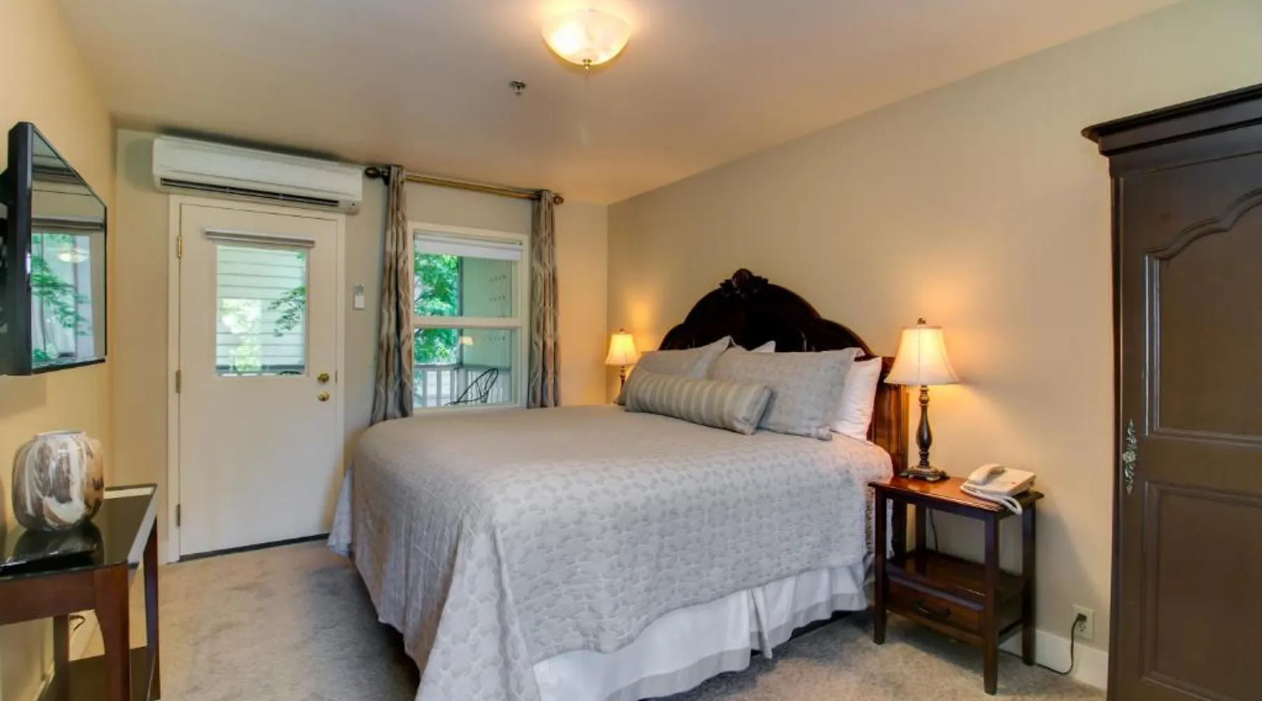 Historic Charm: Winchester Inn in Ashland offers a historic setting with a beautiful garden, tennis court, and free WiFi. The property features a modern restaurant and bar, ideal for relaxation and dining. Comfortable Accommodations: Rooms include air-conditioning, private bathrooms, and amenities such as bathrobes and free toiletries. Family rooms and ground-floor units provide additional comfort, ensuring a pleasant stay for all guests. Dining Experience: The restaurant serves French, American, and local cuisines in a family-friendly, modern, and romantic ambiance. Breakfast includes champagne, fresh pastries, and a variety of warm dishes, highly praised by guests. Convenient Location: Located 24 mi from Rogue Valley International-Medford Airport, the hotel is near Oregon Cabaret Theater (2-minute walk), Ashland Library (984 feet), and Oregon Shakespeare Festival (4-minute walk). An ice-skating rink is also nearby. Along with a fireplace and spa bath, this suite features bathrobes, imported toiletries, and a hairdryer. This room is located on the main property.
