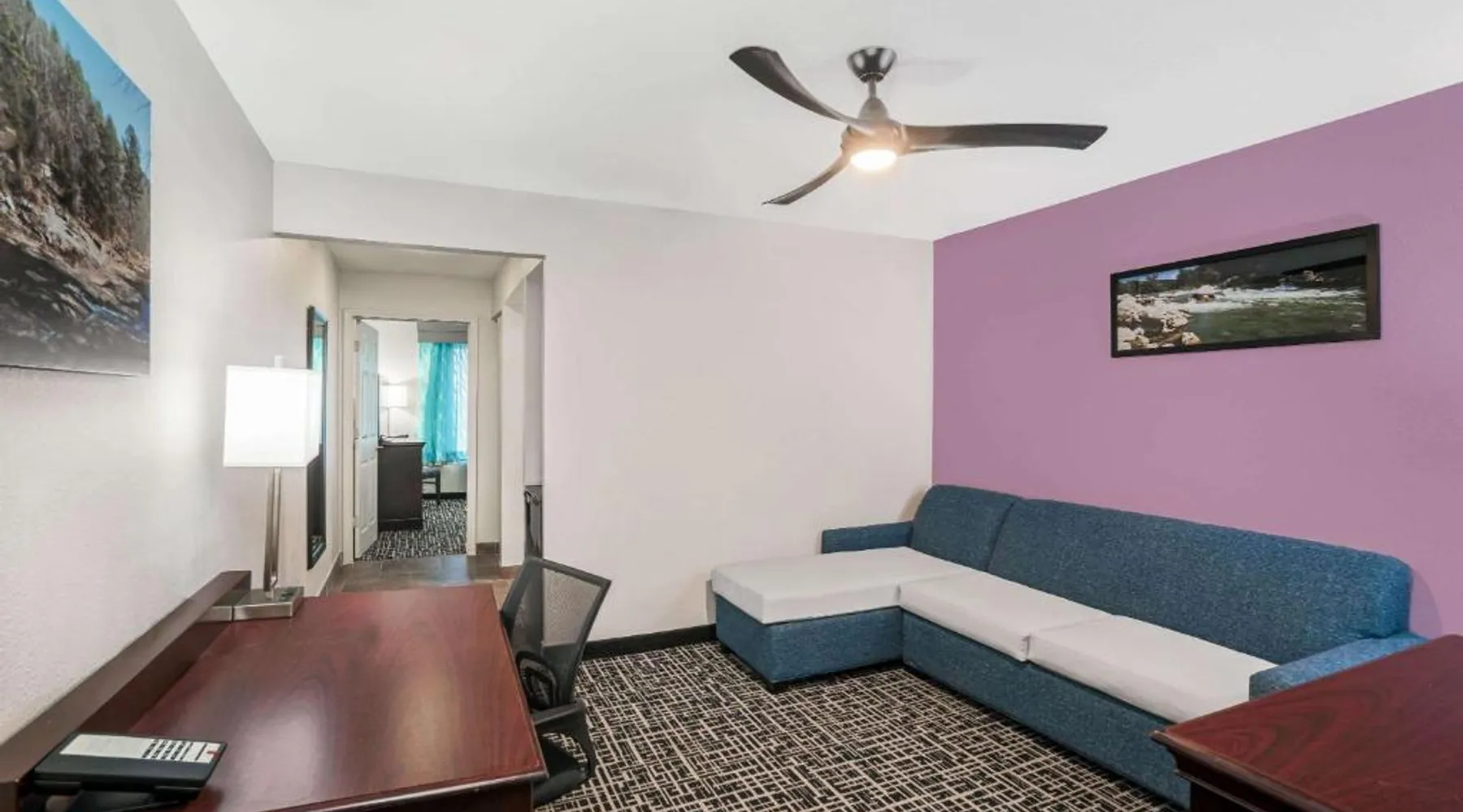 Just off of Interstate 40, this Cookeville hotel is 3 miles from Tennessee Tech University. The hotel features an outdoor pool, free Wi-Fi and daily continental breakfast. Each guest room at the La Quinta Inn and Suites Cookeville includes a microwave and refrigerator. They are also equipped with a 32-inch flat-screen TV with cable channels. Free 24-hour coffee, cookies and candy is available in the lobby at the Cookeville La Quinta Inn and Suites. Guests can also enjoy the gym. The Cookeville Golf Club and Cane Creek Park are within 3 miles of the Country Inn Cookeville. Burgess Falls State Park, home to beautiful waterfalls and hiking trails, is 8.6 miles away. The air-conditioned suite features 1 bedroom and 1 bathroom with a bath and a shower. The suite provides a wardrobe, a carpeted floor, heating, as well as a flat-screen TV with cable channels. The unit offers 2 beds.