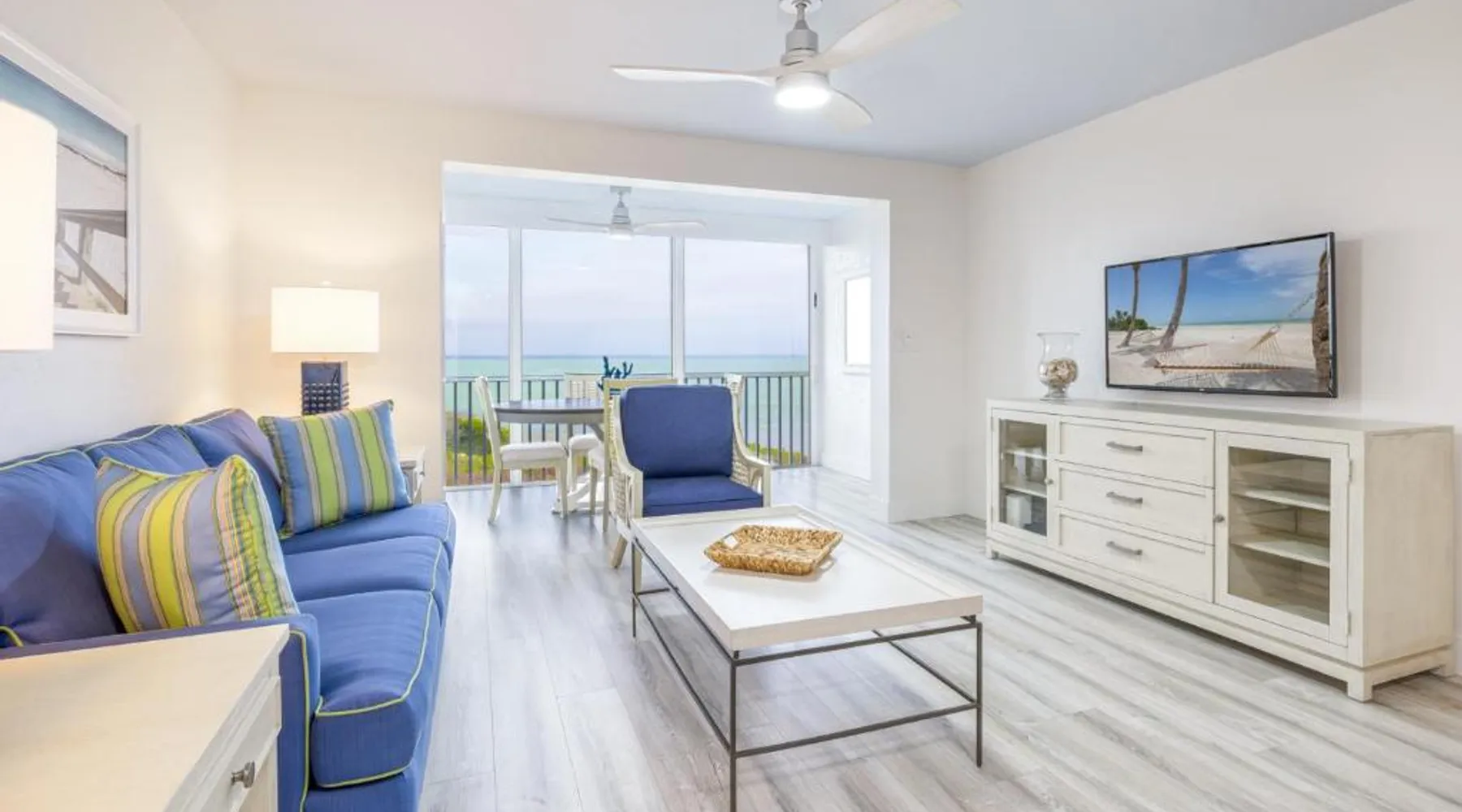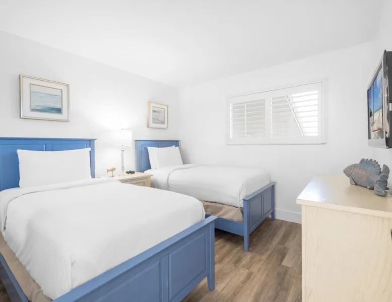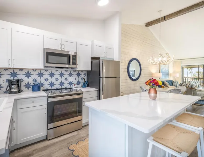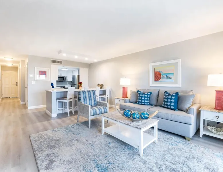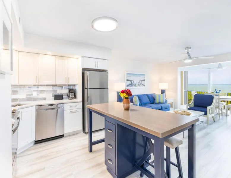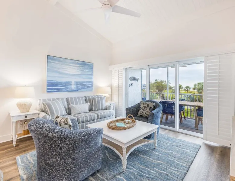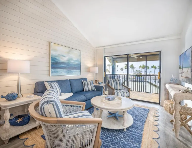 A wildlife sanctuary, beachfront South Seas Resort - Official Site offers shelling kayak tours, family cruises, and guided and unguided fishing excursions. Numerous spa and beauty services and 3 pools are available on site. Free WiFi is featured in every room and villa, as is a private balcony. All rooms include a refrigerator and coffee maker and every villa offers a fully equipped kitchen. A trolley service provides transportation around South Seas Resort - Official Site. Seaside golf and an on-site tennis court and tennis classes are offered. Guests can enjoy the fitness facilities, and exercise trails. The resort features 8 dining options, including a Starbucks ®, full-service market, and a Caribbean-inspired bar and grill. South Seas Resort - Official Site is located 15 miles from the Sanibel Lighthouse and the city center. Fort Myers Beach is 45 minutes’ drive away. Sanibel Outlet is 19 miles away while Miromar Outlet is 36 miles away. This two-bedroom loft-style villa features a gulf-inspired decor. Interior decor in unit may differ. Villas are not freestanding, and are attached to other units..