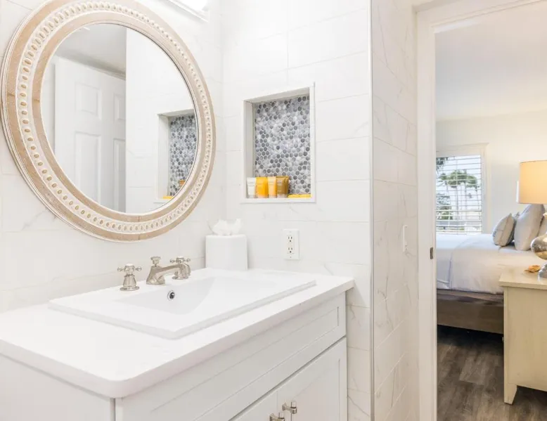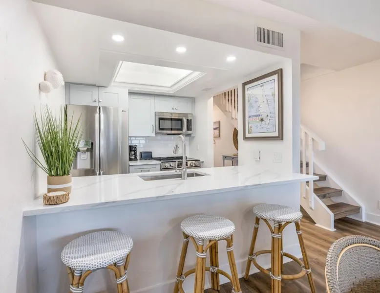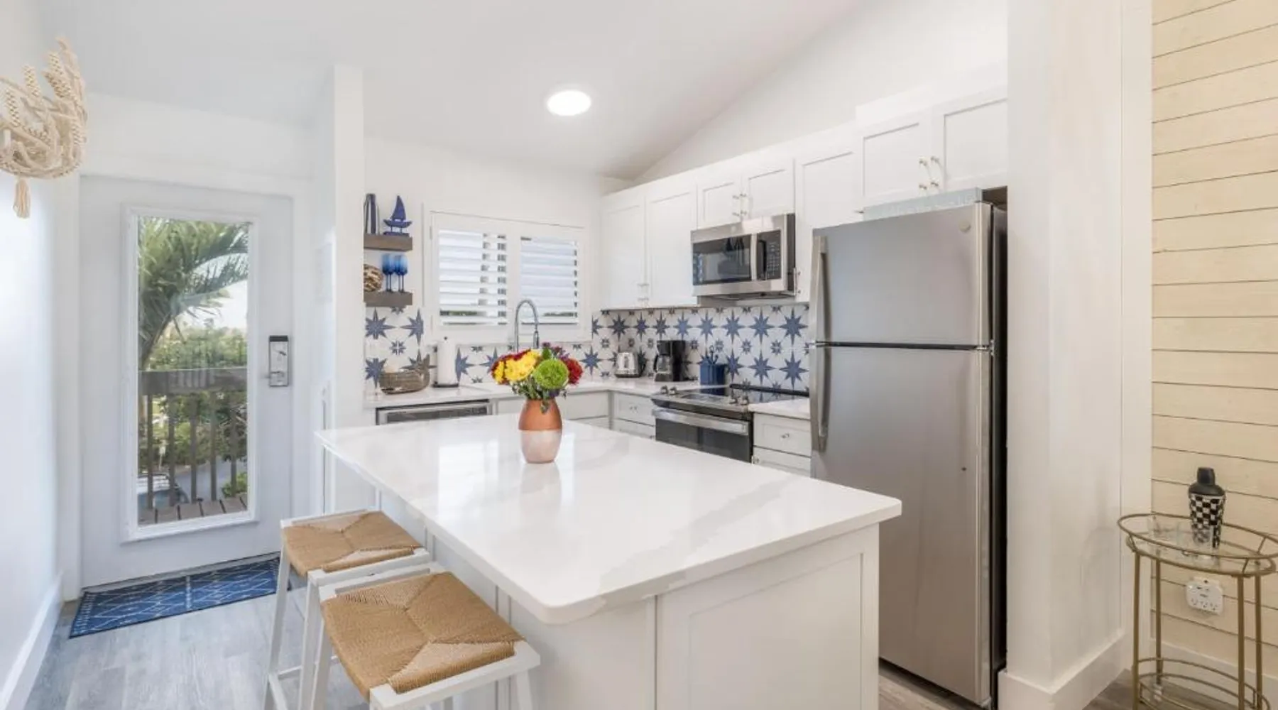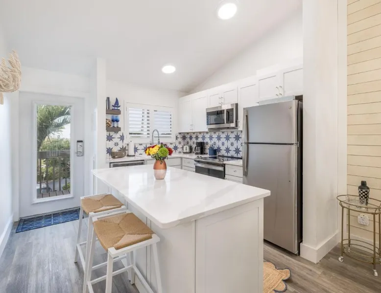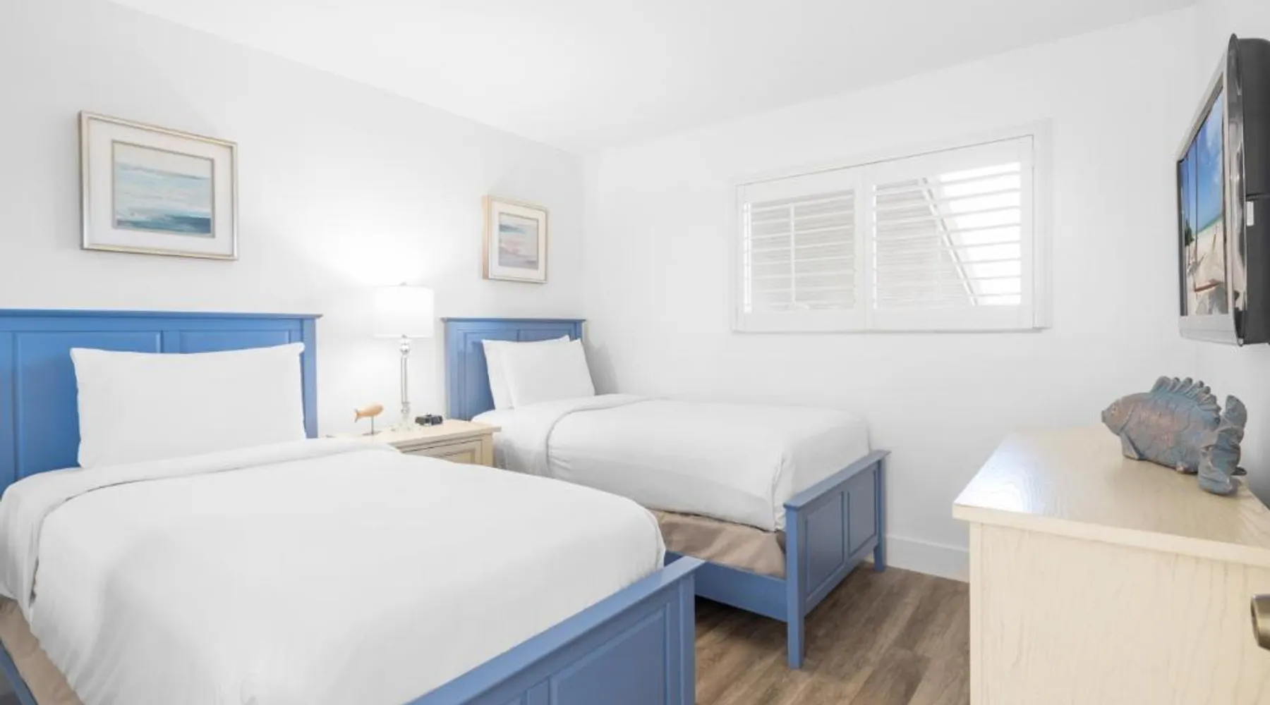 A wildlife sanctuary, beachfront South Seas Resort - Official Site offers shelling kayak tours, family cruises, and guided and unguided fishing excursions. Numerous spa and beauty services and 3 pools are available on site. Free WiFi is featured in every room and villa, as is a private balcony. All rooms include a refrigerator and coffee maker and every villa offers a fully equipped kitchen. A trolley service provides transportation around South Seas Resort - Official Site. Seaside golf and an on-site tennis court and tennis classes are offered. Guests can enjoy the fitness facilities, and exercise trails. The resort features 8 dining options, including a Starbucks ®, full-service market, and a Caribbean-inspired bar and grill. South Seas Resort - Official Site is located 15 miles from the Sanibel Lighthouse and the city center. Fort Myers Beach is 45 minutes’ drive away. Sanibel Outlet is 19 miles away while Miromar Outlet is 36 miles away. This two-bedroom loft-style villa features a gulf-inspired decor. Interior decor in unit may differ. Villas are not freestanding, and are attached to other units..