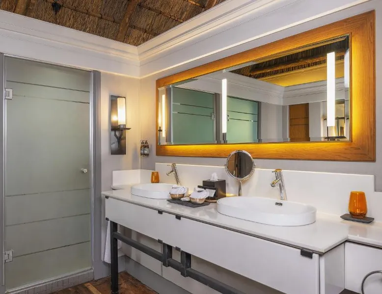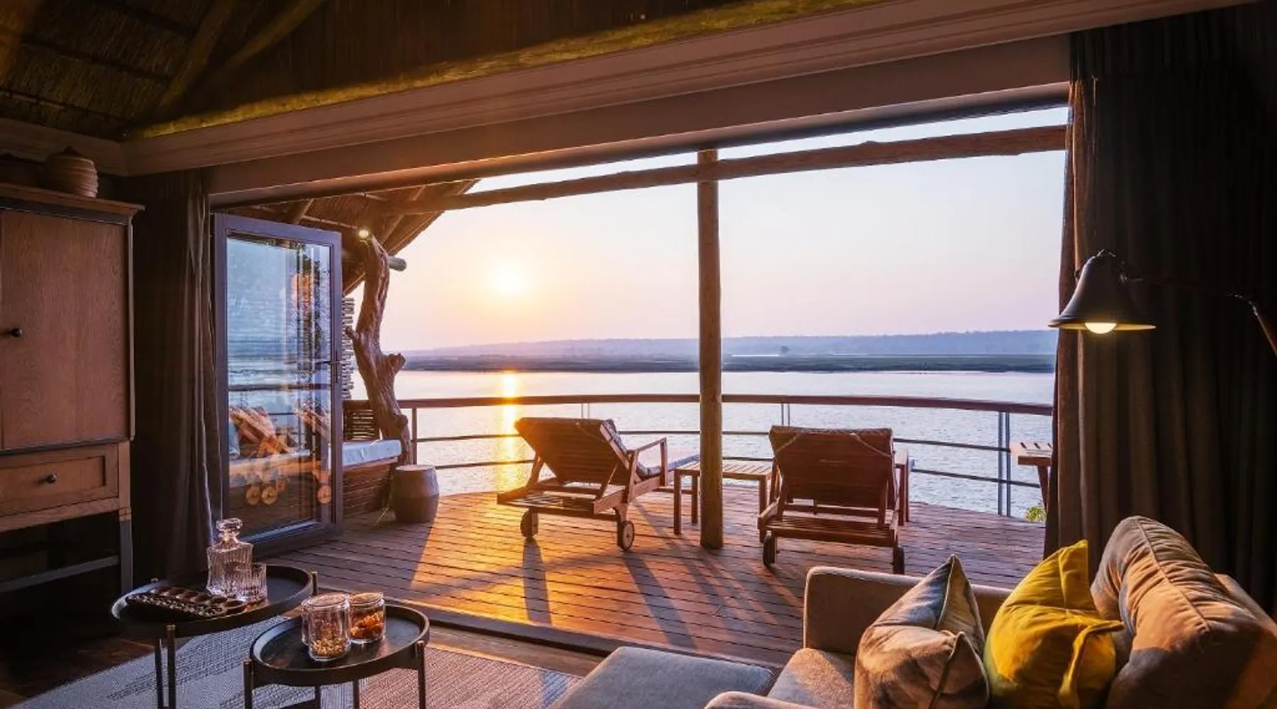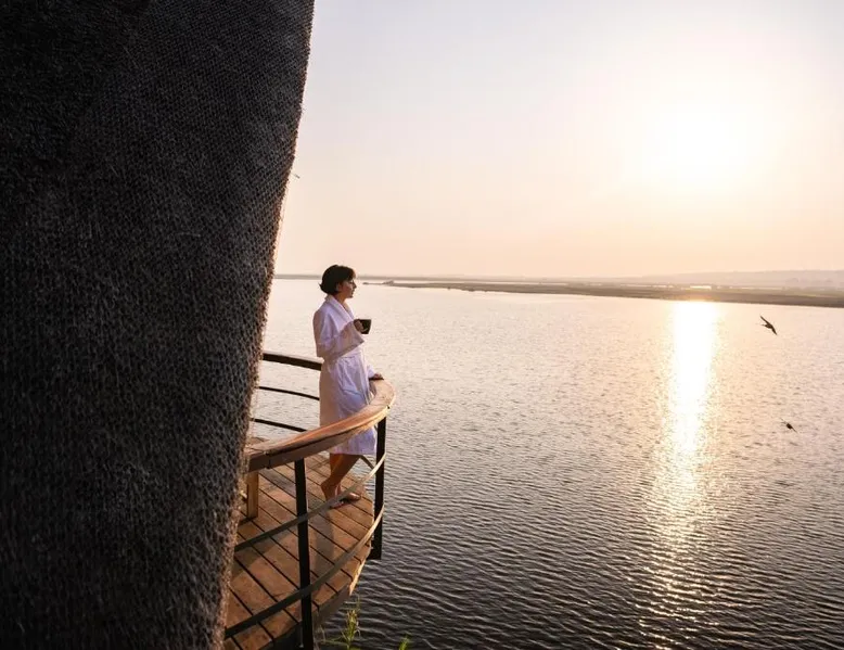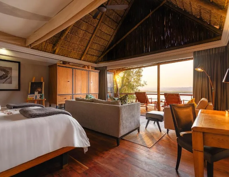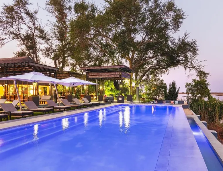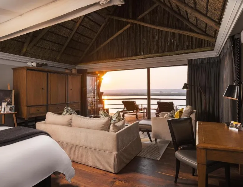 Discover Chobe Water Villas, a luxurious sanctuary located where two mighty rivers meet, creating a wetland paradise teeming with wildlife. Located on the Chobe River in Namibia's Zambezi Region, this handpicked destination offers breathtaking scenery and unforgettable experiences within Chobe National Park. Chobe Water Villas seamlessly blend world-class hospitality with immersive wildlife encounters, providing an all-inclusive escape where nature's unique wonders are celebrated and personalized service ensures an impeccable stay. Room The 16 private all-inclusive luxury water villas offer unparalleled views of the Chobe River and National Park. Each suite-style villa features: • Unobstructed 180-degree river and park views • Private balcony with sun-loungers • Open-plan lounge and bedroom area with floor-to-ceiling glass doors • Amenities: o Coffee and tea-making set o Stocked mini bar o Hairdryer o Safe o Robes/slippers o Binoculars o Art Easel o Evening breeze cooling system o Shower & bath o Internet available o Desk Food Chobe Water Villas provide an all-inclusive fine dining experience, elevated by a caring and passionate team. Meticulously crafted breakfast, lunch and dinner menus cater to diverse tastes. Rotating through three distinct lunch and dinner menus ensures a variety of flavors and cuisines. Guests can also indulge in an elegant High Tea with delectable sweets, pastries, fresh fruit and scones, paired with premium teas or sparkling wine while marveling at breathtaking Chobe River views. Sports & entertainment Chobe Water Villas offers a range of enriching experiences, from tranquil relaxation to spectacular wildlife encounters. The Haven Spa provides a unique sanctuary of wellness where guests can enjoy rejuvenating treatments with personalized care, surrounded by the breathtaking natural beauty. Beyond relaxation, Guests can embark on professionally guided game safaris, exploring the diverse wildlife on land and water. Authentic cultural experiences, such as tours of a local dance village, offer insights into the region's rich heritage and recreational fishing provides a relaxing way to connect with the scenic nature. The villas themselves offer a host of amenities designed for comfort and convenience. Guests can enjoy complimentary Wi-Fi in public areas, take a refreshing dip in the infinity pool or relax in conversation pits with open fires along the riverbank. The pool deck provides ample space for lounging, dining and sunbathing. Other amenities include a gym, a sundowner deck for enjoying spectacular sunsets and a river boat viewer for observing wildlife. Location Chobe Water Villas is an exclusive boutique lodge located at the eastern tip of the Zambezi region. Privately located within the 93 mi² Kasika Conservancy, the lodge sits directly on the banks of the Chobe River, offering unobstructed views of the renowned Chobe National Park and Sedudu Island, opposite Kasane, Botswana. Services Located at the convergence of the Chobe and Zambezi Rivers, where Namibia, Botswana, Zambia and Zimbabwe meet, Chobe Water Villas features spectacular views of untamed Africa from its 16 exclusive water villas. The lodge’s prime location offers unrivaled access to the Chobe National Park, home to over 80 000 elephants. Other animal marvels include hippos, buffalo and crocodiles—and more than 50 bird species, making it one of Africa’s most diverse wildlife and birdlife sanctuaries. These villas are perched on stilts and offer views of the Chobe River and Chobe National Park. They each have an open-plan bedroom and lounge area, a spacious bathroom with bath and walk-in shower, and 2 terraces.