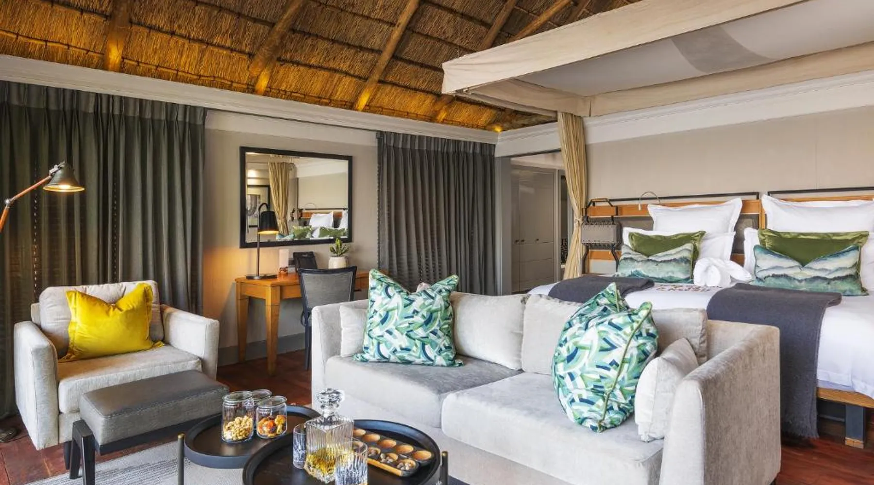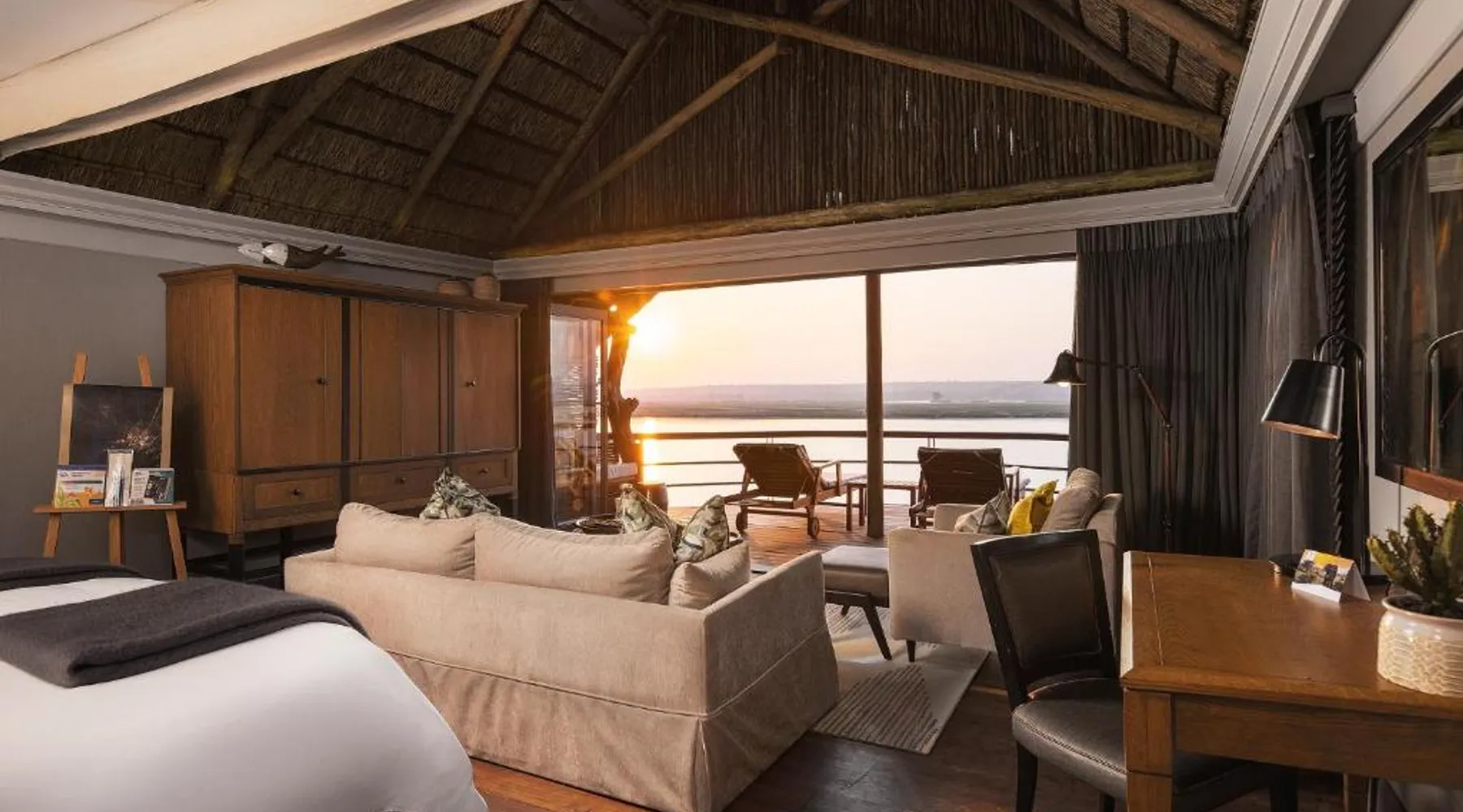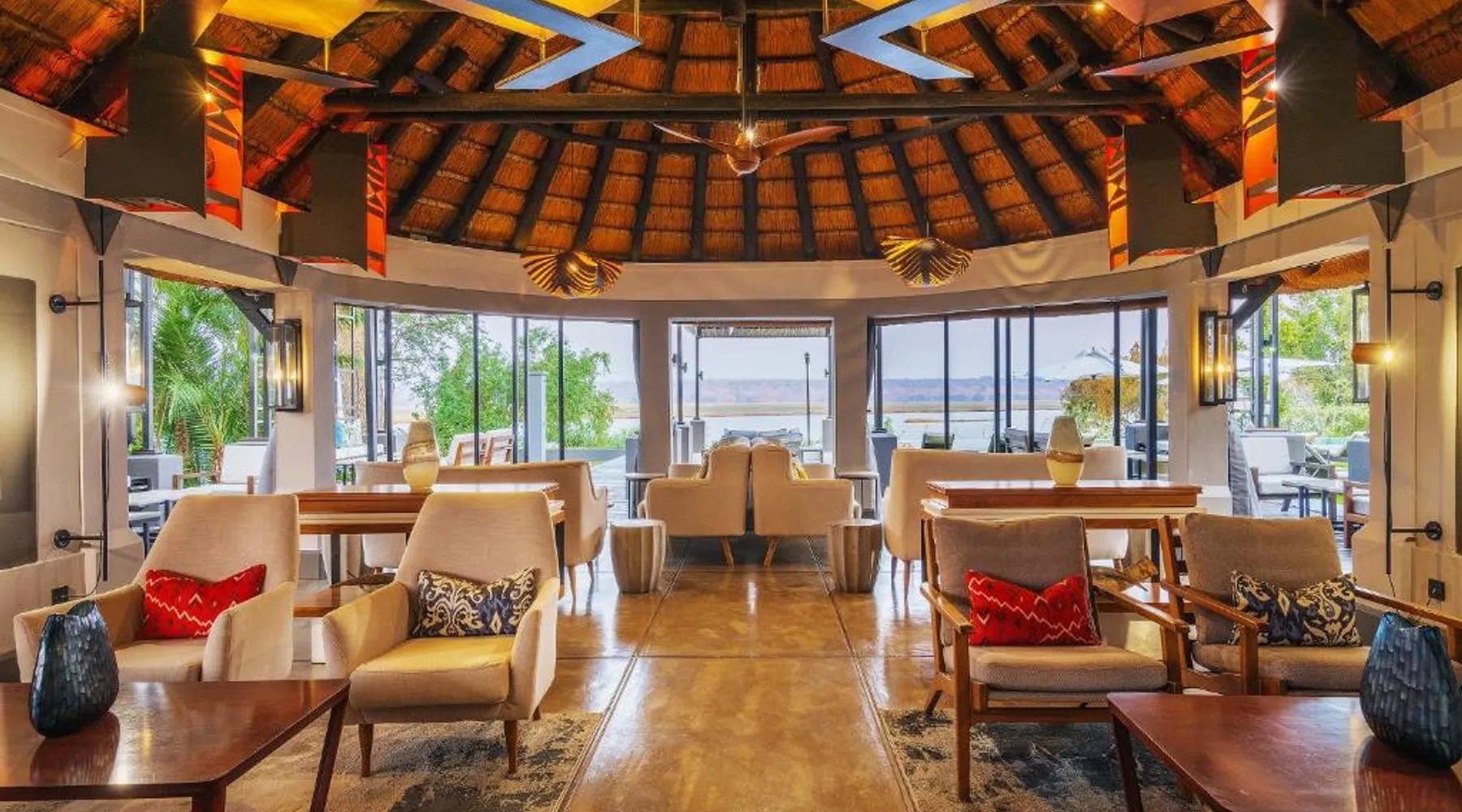 Discover Chobe Water Villas, a luxurious sanctuary located where two mighty rivers meet, creating a wetland paradise teeming with wildlife. Located on the Chobe River in Namibia's Zambezi Region, this handpicked destination offers breathtaking scenery and unforgettable experiences within Chobe National Park. Chobe Water Villas seamlessly blend world-class hospitality with immersive wildlife encounters, providing an all-inclusive escape where nature's unique wonders are celebrated and personalized service ensures an impeccable stay. Room The 16 private all-inclusive luxury water villas offer unparalleled views of the Chobe River and National Park. Each suite-style villa features: • Unobstructed 180-degree river and park views • Private balcony with sun-loungers • Open-plan lounge and bedroom area with floor-to-ceiling glass doors • Amenities: o Coffee and tea-making set o Stocked mini bar o Hairdryer o Safe o Robes/slippers o Binoculars o Art Easel o Evening breeze cooling system o Shower & bath o Internet available o Desk Food Chobe Water Villas provide an all-inclusive fine dining experience, elevated by a caring and passionate team. Meticulously crafted breakfast, lunch and dinner menus cater to diverse tastes. Rotating through three distinct lunch and dinner menus ensures a variety of flavors and cuisines. Guests can also indulge in an elegant High Tea with delectable sweets, pastries, fresh fruit and scones, paired with premium teas or sparkling wine while marveling at breathtaking Chobe River views. Sports & entertainment Chobe Water Villas offers a range of enriching experiences, from tranquil relaxation to spectacular wildlife encounters. The Haven Spa provides a unique sanctuary of wellness where guests can enjoy rejuvenating treatments with personalized care, surrounded by the breathtaking natural beauty. Beyond relaxation, Guests can embark on professionally guided game safaris, exploring the diverse wildlife on land and water. Authentic cultural experiences, such as tours of a local dance village, offer insights into the region's rich heritage and recreational fishing provides a relaxing way to connect with the scenic nature. The villas themselves offer a host of amenities designed for comfort and convenience. Guests can enjoy complimentary Wi-Fi in public areas, take a refreshing dip in the infinity pool or relax in conversation pits with open fires along the riverbank. The pool deck provides ample space for lounging, dining and sunbathing. Other amenities include a gym, a sundowner deck for enjoying spectacular sunsets and a river boat viewer for observing wildlife. Location Chobe Water Villas is an exclusive boutique lodge located at the eastern tip of the Zambezi region. Privately located within the 93 mi² Kasika Conservancy, the lodge sits directly on the banks of the Chobe River, offering unobstructed views of the renowned Chobe National Park and Sedudu Island, opposite Kasane, Botswana. Services Located at the convergence of the Chobe and Zambezi Rivers, where Namibia, Botswana, Zambia and Zimbabwe meet, Chobe Water Villas features spectacular views of untamed Africa from its 16 exclusive water villas. The lodge’s prime location offers unrivaled access to the Chobe National Park, home to over 80 000 elephants. Other animal marvels include hippos, buffalo and crocodiles—and more than 50 bird species, making it one of Africa’s most diverse wildlife and birdlife sanctuaries. These villas are perched on stilts and offer views of the Chobe River and Chobe National Park. They each have an open-plan bedroom and lounge area, a spacious bathroom with bath and walk-in shower, and 2 terraces.
