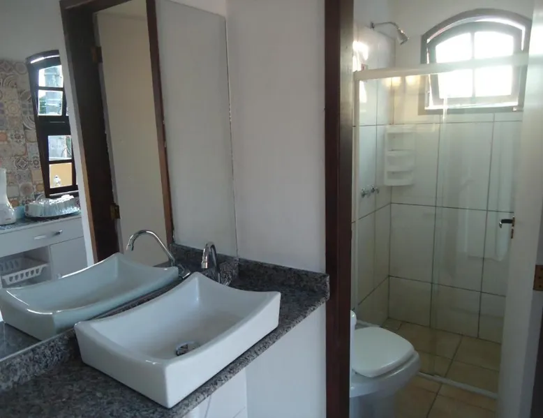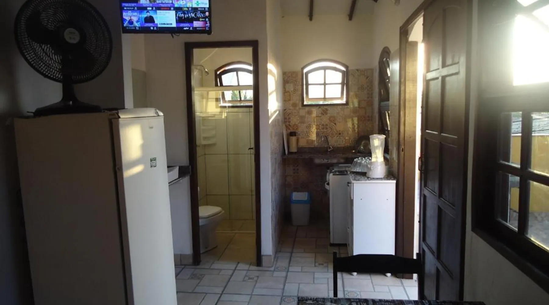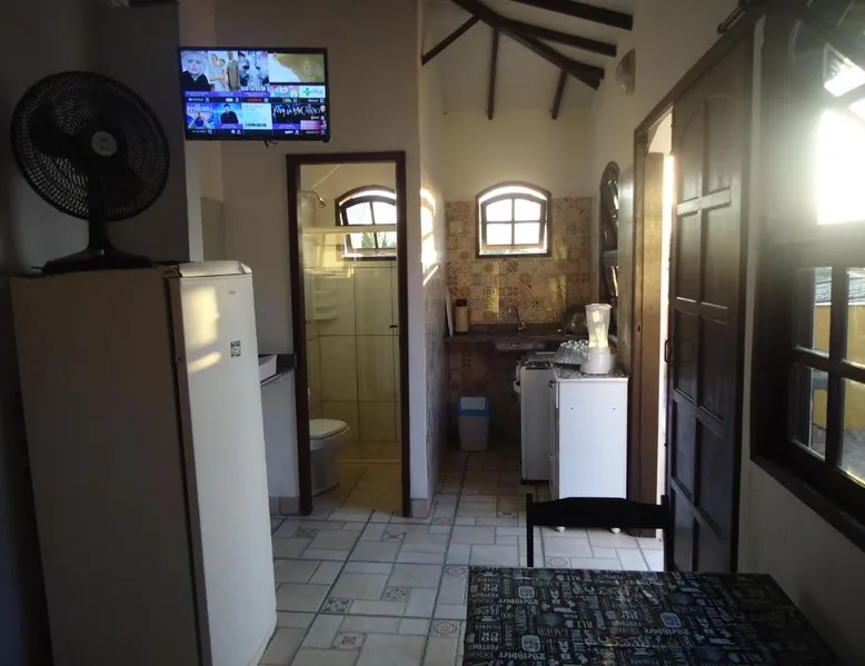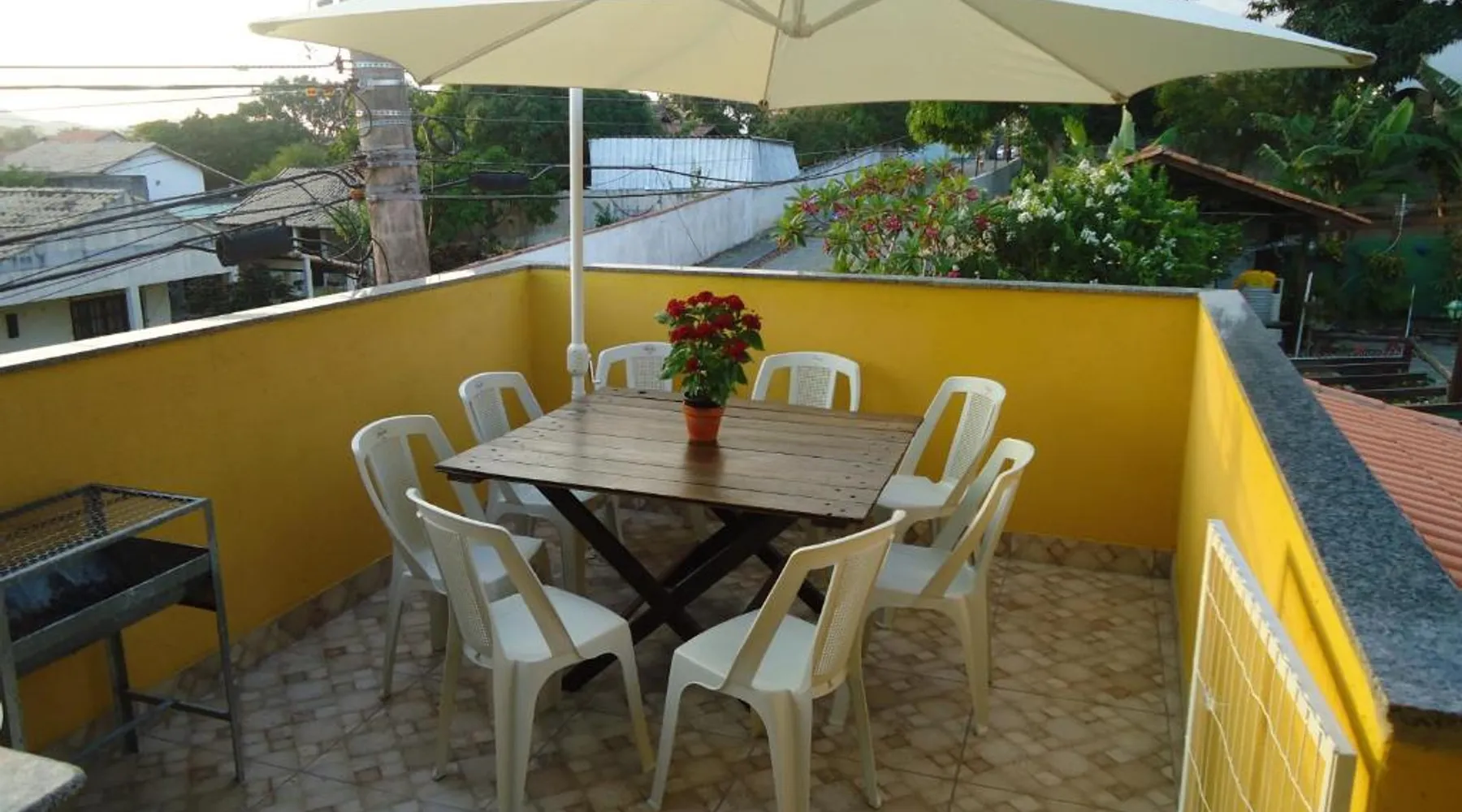 Elegant Holiday Home in Cabo Frio: Vila do Sossego offers a serene holiday home experience in Cabo Frio, Brazil. Guests enjoy a sun terrace, lush garden, and free WiFi throughout the property. Comfortable Accommodations: The holiday home features family rooms, private bathrooms, and a work desk. Additional amenities include a balcony with garden views, kitchenette, and washing machine. Convenient Facilities: Private check-in and check-out services, a minimarket, and an indoor play area enhance the stay. Free on-site parking, bicycle parking, and barbecue facilities are available. Local Attractions: Japanese Island and the Surf Museum are 5.6 mi away, while the Municipal Theater and Water Square are 6.2 mi distant. Cabo Frio International Airport is 8.7 mi from the property. This holiday home has a patio, stovetop and satellite TV.