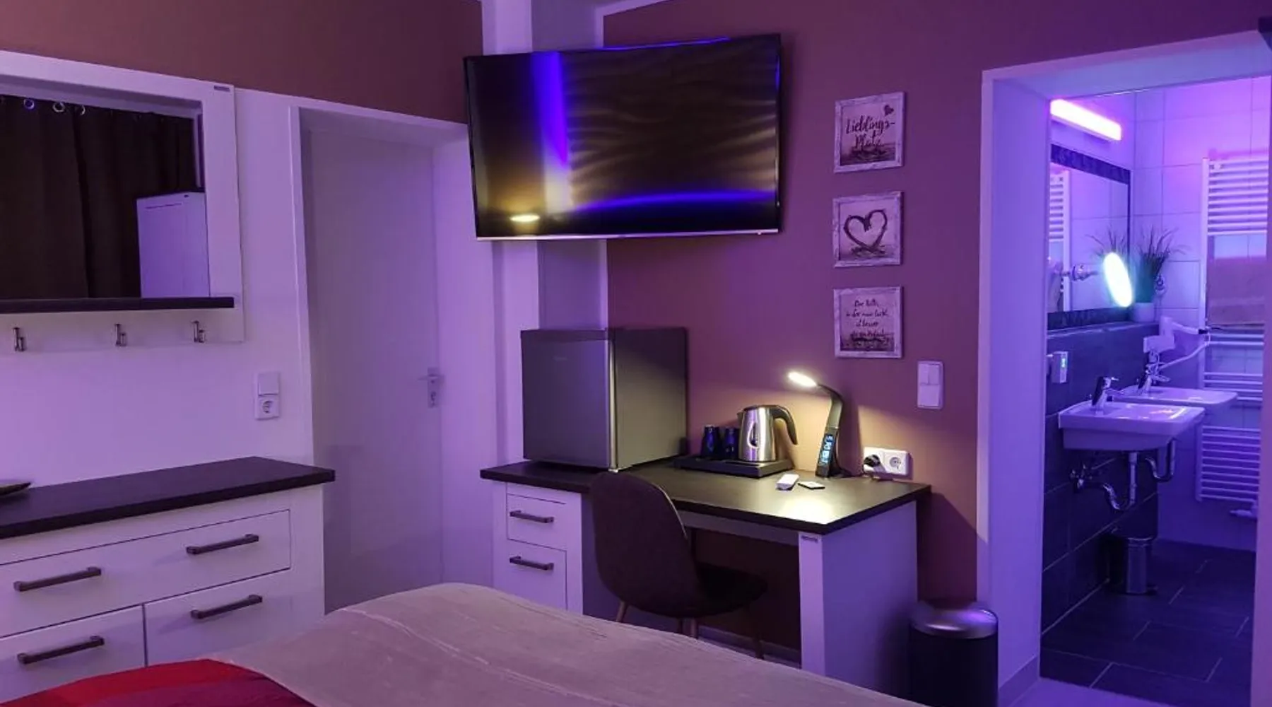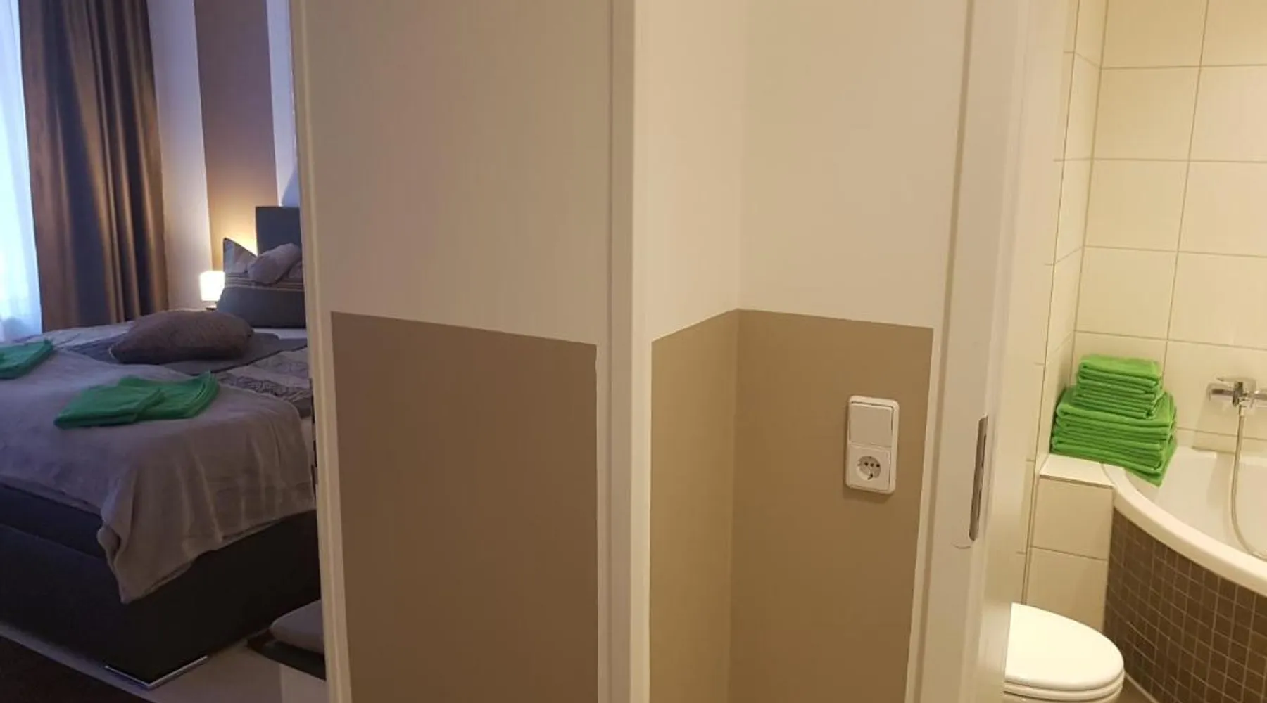 Comfortable Accommodations: Pension Hoefti in Chemnitz offers adults-only ground-floor units with private entrances. Each room features a private bathroom, hypoallergenic bedding, and soundproofing. Guests enjoy garden views and a private entrance. Modern Amenities: The guest house provides free WiFi, a garden, and a hot tub. Additional facilities include a shared kitchen, outdoor seating area, and bicycle parking. Private check-in and check-out services ensure a smooth arrival and departure. Convenient Location: Located 48 mi from Dresden Airport, Pension Hoefti is an 8-minute walk from Playhouse Chemnitz. Nearby attractions include Karl Marx Monument (1.2 mi), Chemnitz Central Station (1.2 mi), and Chemnitz Technical University (1.2 mi). Boating is available in the surroundings. Guest Satisfaction: Highly rated for room cleanliness, comfort, and bathroom cleanliness, Pension Hoefti ensures a pleasant stay for all guests. Featuring free toiletries, this double room includes a private bathroom with a shower and a hairdryer. The double room features a flat-screen TV with streaming services, a private entrance, soundproof walls, a tea and coffee maker as well as a quiet street view. The unit has 1 bed.