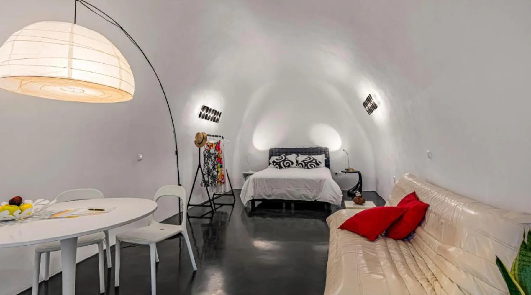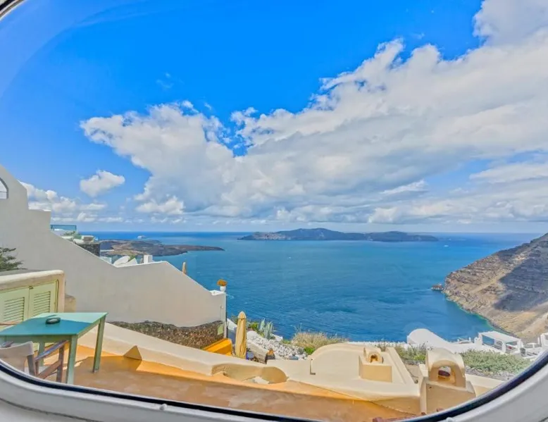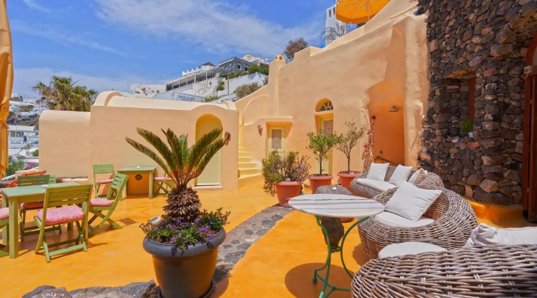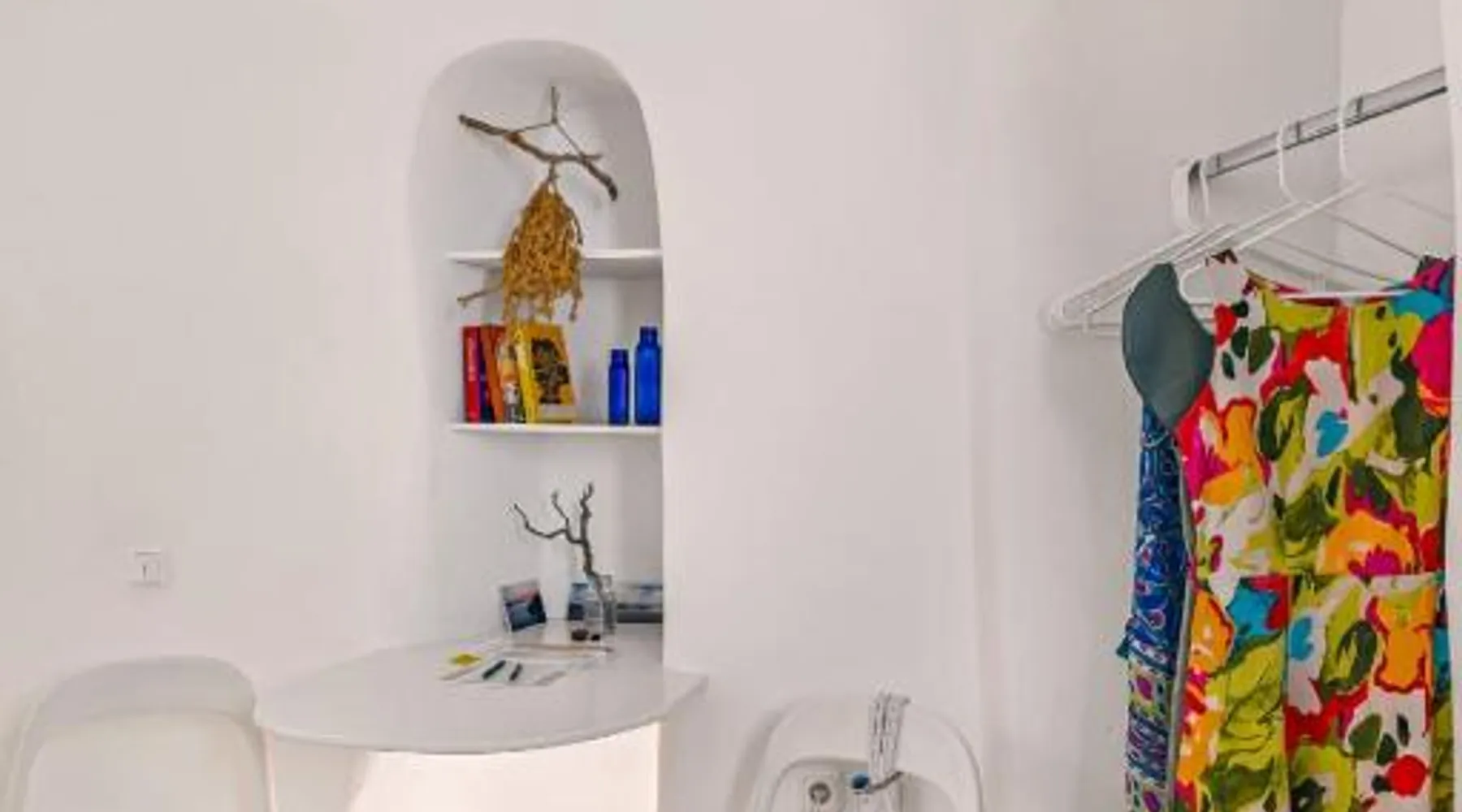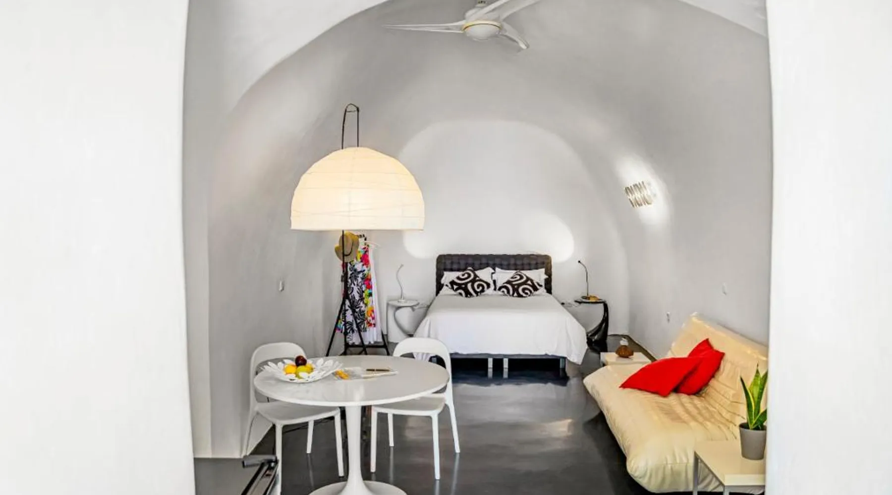Historic Setting: Sensyo Caves in Firostefani offers a unique apartment housed in a historic building. Guests enjoy sea views and a private terrace, complemented by free WiFi. Comfortable Amenities: The apartment features air-conditioning, a kitchenette, and a private bathroom. Additional amenities include a balcony, patio, and outdoor seating area. Convenient Services: Private check-in and check-out, a paid shuttle service, concierge, and daily housekeeping ensure a comfortable stay. Bike hire and luggage storage are also available. Local Attractions: Located 4.3 mi from Santorini International Airport, the property is near the Archaeological Museum of Thera (8-minute walk) and Megaro Gyzi (1969 feet). Boating and scuba diving are popular activities in the surroundings. Offering direct views over the caldera from its shared terrace, this studio has a toaster and soundproofing. Has sofa, and kitchenette .
