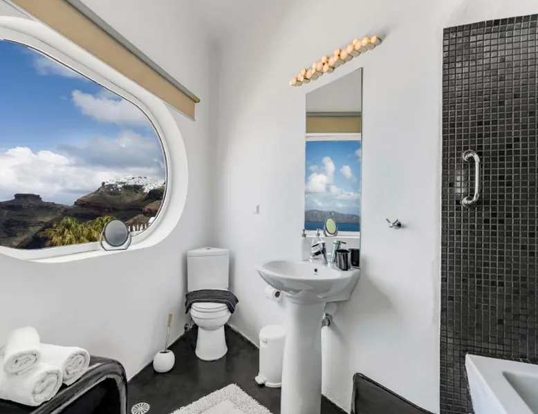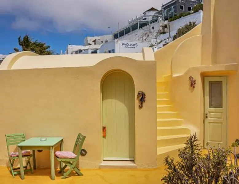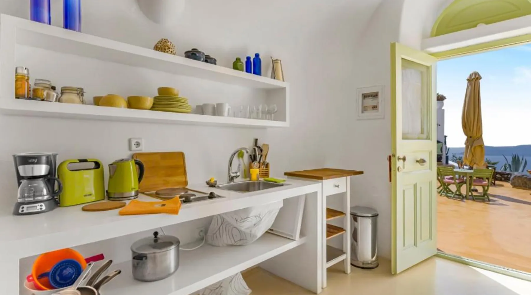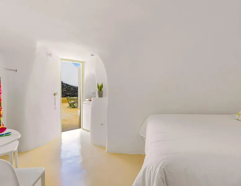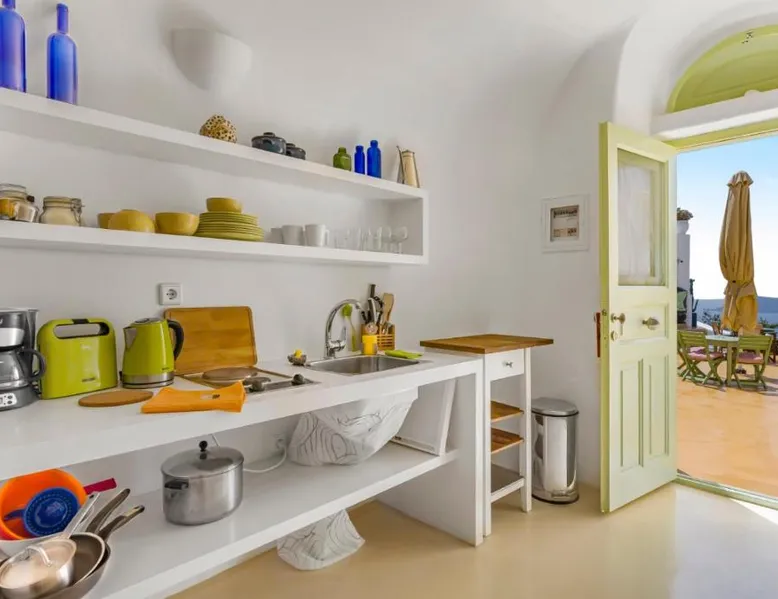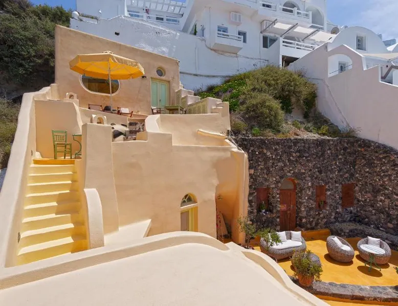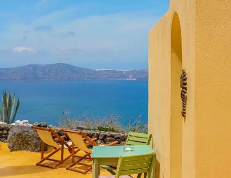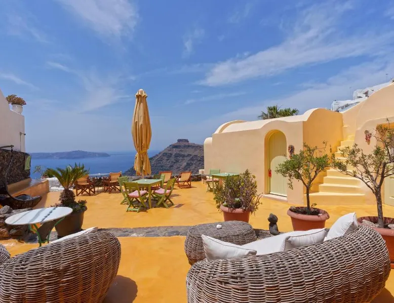Historic Setting: Sensyo Caves in Firostefani offers a unique apartment housed in a historic building. Guests enjoy sea views and a private terrace, complemented by free WiFi. Comfortable Amenities: The apartment features air-conditioning, a kitchenette, and a private bathroom. Additional amenities include a balcony, patio, and outdoor seating area. Convenient Services: Private check-in and check-out, a paid shuttle service, concierge, and daily housekeeping ensure a comfortable stay. Bike hire and luggage storage are also available. Local Attractions: Located 4.3 mi from Santorini International Airport, the property is near the Archaeological Museum of Thera (8-minute walk) and Megaro Gyzi (1969 feet). Boating and scuba diving are popular activities in the surroundings. Offering direct views over the caldera from its shared terrace, this studio has a toaster and soundproofing. Has sofa, and kitchenette .