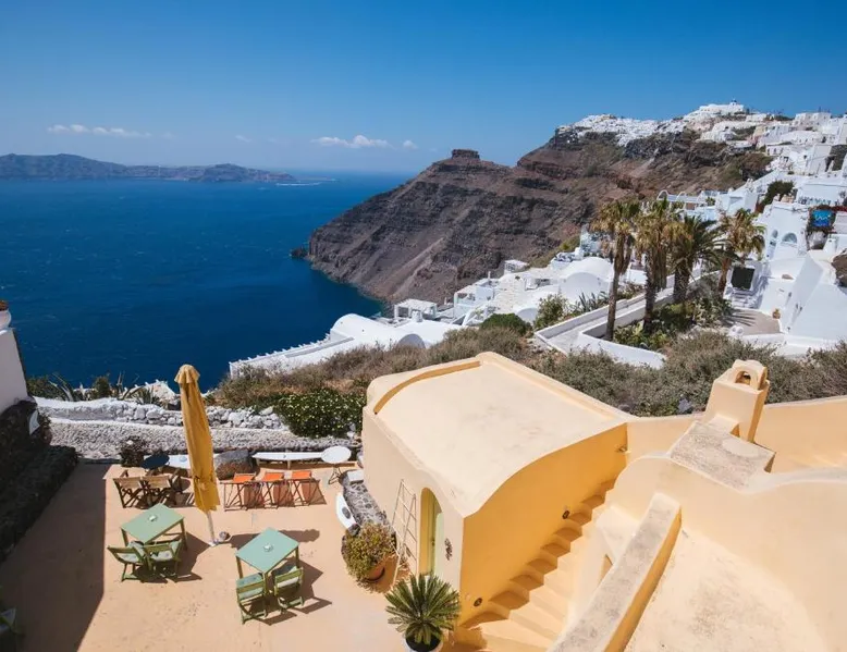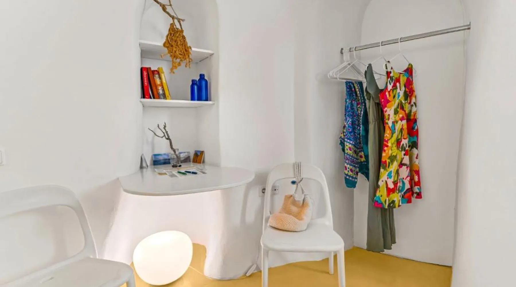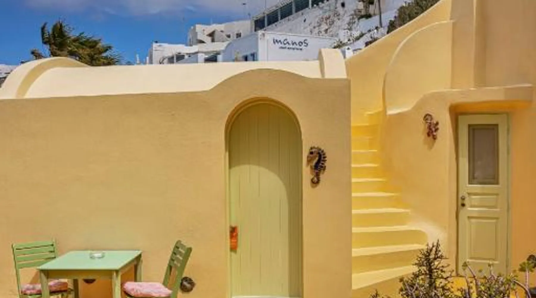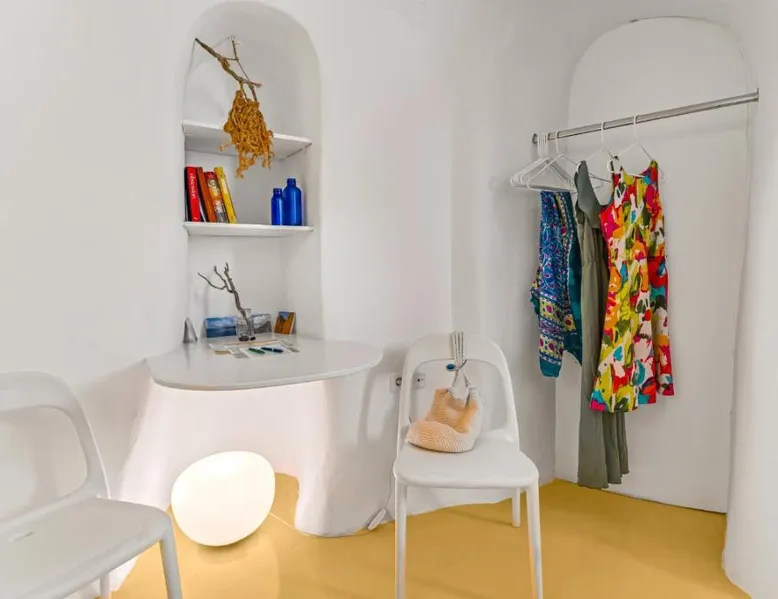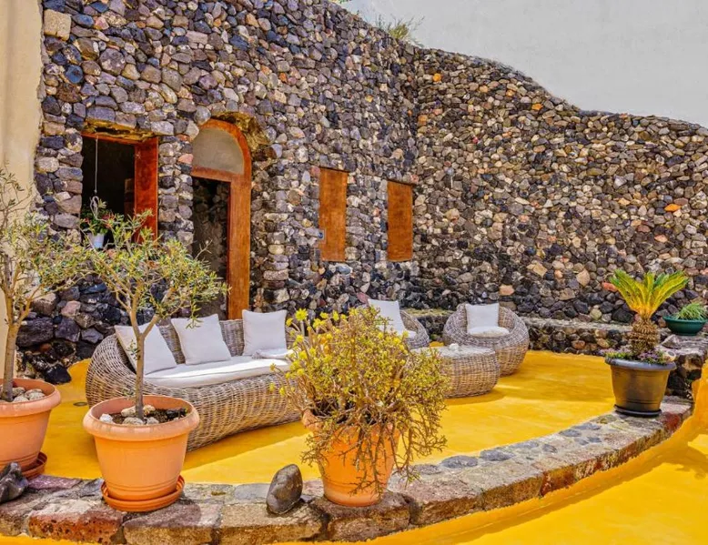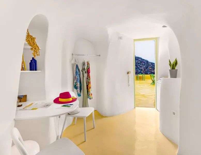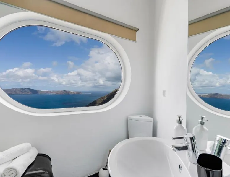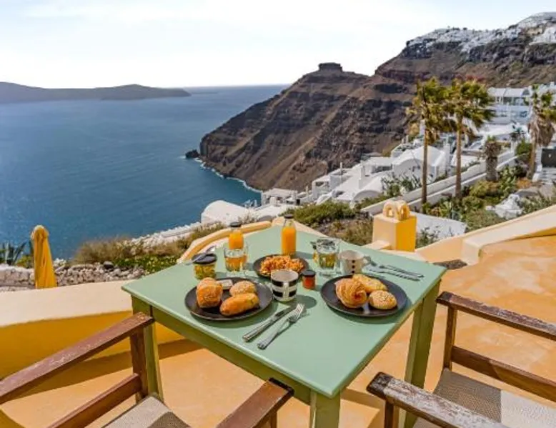 Historic Setting: Sensyo Caves in Firostefani offers a unique apartment housed in a historic building. Guests enjoy sea views and a private terrace, complemented by free WiFi. Comfortable Amenities: The apartment features air-conditioning, a kitchenette, and a private bathroom. Additional amenities include a balcony, patio, and outdoor seating area. Convenient Services: Private check-in and check-out, a paid shuttle service, concierge, and daily housekeeping ensure a comfortable stay. Bike hire and luggage storage are also available. Local Attractions: Located 4.3 mi from Santorini International Airport, the property is near the Archaeological Museum of Thera (8-minute walk) and Megaro Gyzi (1969 feet). Boating and scuba diving are popular activities in the surroundings. Offering direct views over the caldera from its shared terrace, this studio has a toaster and soundproofing. Has sofa, and kitchenette .