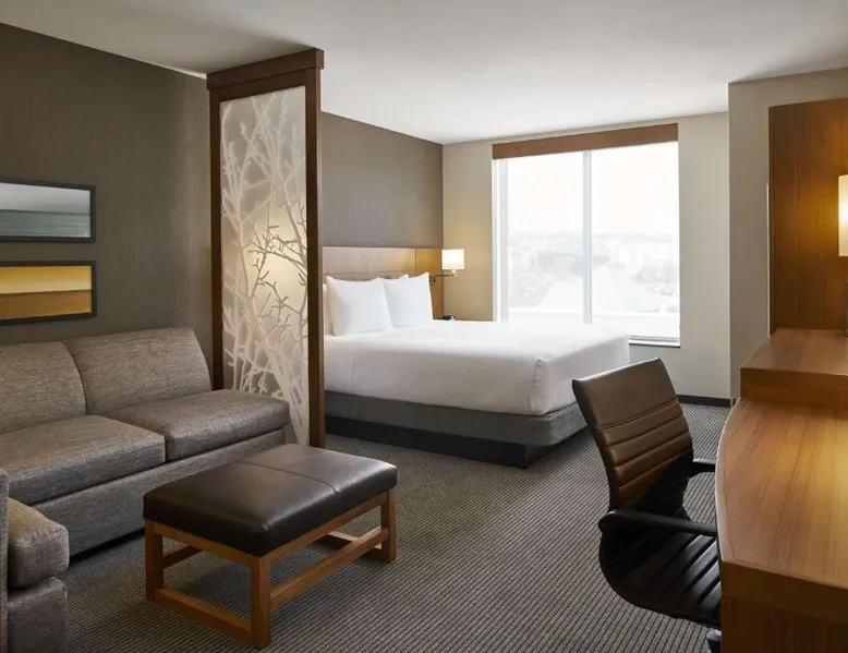 Comfortable Accommodations: Hyatt Place Wilmington Riverfront in Wilmington offers family rooms with air-conditioning, private bathrooms, and river views. Each room includes a work desk, sofa bed, and free WiFi. Dining and Leisure: The modern restaurant serves American cuisine with vegetarian and gluten-free options. Guests can enjoy breakfast, lunch, and dinner, alongside cocktails at the bar. Free bicycles and a fitness center enhance the stay. Convenient Location: Located 5.6 mi from New Castle Airport, the hotel is near attractions such as Old Dutch House and Delaware Museum Of Natural History, each 6.2 mi away. Free on-site private parking is available. Featuring free toiletries, this quadruple room includes a private bathroom with a bath or a shower and a hairdryer. The air-conditioned quadruple room features a flat-screen TV with cable channels, a tea and coffee maker, a seating area, a wardrobe as well as river views. The unit has 2 beds.