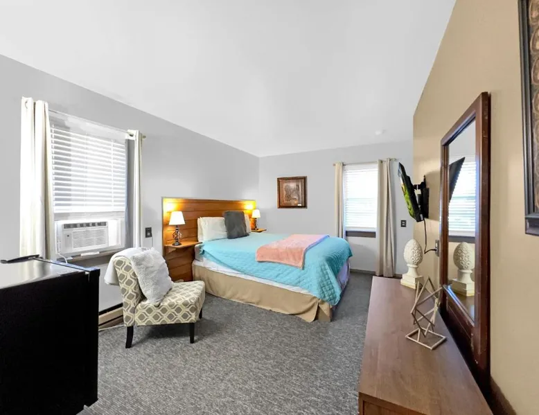 Comfortable Accommodations: Timberline Lodge in Ellicottville offers family rooms with private bathrooms, air-conditioning, and free WiFi. Each room includes a tea and coffee maker, refrigerator, and TV. Relaxing Facilities: Guests can enjoy a sun terrace, garden, and outdoor fireplace. Additional amenities include a hot tub, sofa bed, and interconnected rooms. Convenient Services: The hotel provides private and express check-in and check-out, a lounge, and a shared kitchen. Free on-site private parking is available. Local Attractions: Located 39 mi from Bradford Regional Airport, the hotel is near Griffis Sculpture Park (8.1 mi) and St. Bonaventure University (26 mi). Winter sports and skiing are popular activities in the surrounding area. Featuring free toiletries, this double room includes a private bathroom with a bath, a shower and a hairdryer. The double room features air conditioning, a tea and coffee maker, heating and a flat-screen TV with streaming services. The unit has 1 bed.