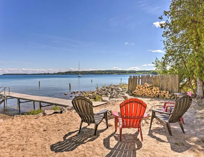 Comfortable Accommodations: Less Than 1 Mi to Dtwn Suttons Bay! Studio with Shared Beach in Suttons Bay offers a spacious apartment with a private entrance. Guests enjoy air-conditioning, a fully equipped kitchen, and a private bathroom with free toiletries. Wellness and Connectivity: The property features a spa and wellness center and free WiFi. Additional amenities include a refrigerator, microwave, oven, stovetop, TV, and kitchenware, ensuring a pleasant and convenient stay. Local Attractions: Located 18 mi from Cherry Capital Airport, the apartment is near Lucy Craft Laney Museum Of Black History (5 mi), Dennos Museum Center At Northwestern Michigan College (17 mi), and Great Wolf Lodge Traverse City (17 mi). Other points of interest include Clinch Park and City Opera House Historical Marker, each 16 mi away. Guest Satisfaction: Highly rated by guests, the apartment provides paid on-site parking and is located in a quiet area, offering a peaceful retreat. Guests can make meals in the kitchen that is equipped with a stovetop, a refrigerator, kitchenware and an oven. This air-conditioned apartment features a private bathroom, a private entrance and heating.