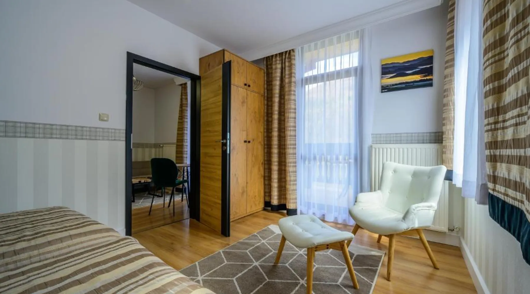 Sowia Dolina - Góry Sowie is located in Pieszyce in the Lower Silesia Region, 5.6 mi from Dzierżoniów and 19 mi from Polanica-Zdrój. Guests can enjoy the on-site bar. Free high speed WiFi is featured throughout the property and free private parking is available on site. Every room includes a flat-screen TV. Certain rooms feature a seating area where you can relax. A terrace or balcony are featured in certain rooms. The rooms include a private bathroom. There is a shared lounge at the property. A selection of activities are offered in the area, such as skiing and horse riding. The bed and breakfast also offers ski equipment hire, bike hire, and car hire. Kudowa-Zdrój is 21 mi from Sowia Dolina - Góry Sowie, while Lądek-Zdrój is 27 mi from the property. The nearest airport is Wroclaw – Copernicus Airport, 34 mi from Sowia Dolina - Góry Sowie. Guests will have a special experience as this single room provides a pool with a view. Offering free toiletries, this single room includes a private bathroom with a shower and a hairdryer. The single room offers a tea and coffee maker, executive lounge access, a wardrobe, a flat-screen TV with cable channels, as well as an inner courtyard view. The unit offers 1 bed.