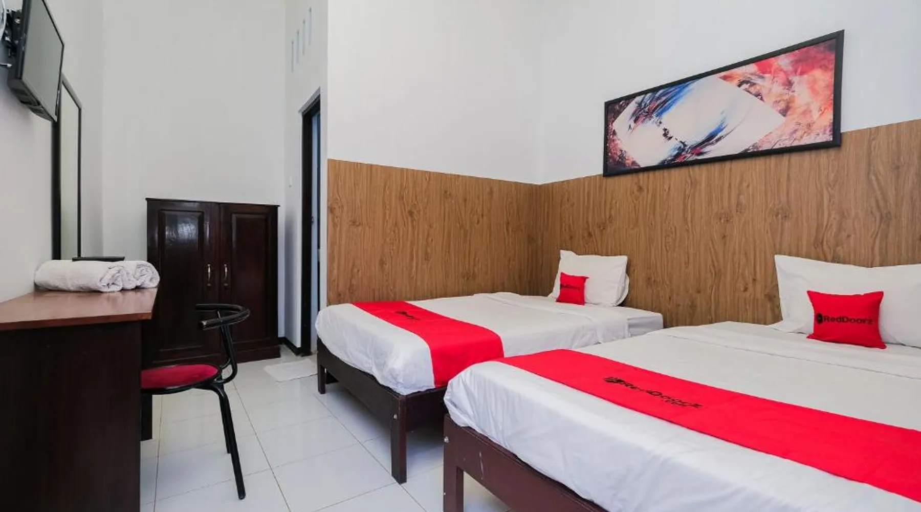 Comfortable Accommodations: RedDoorz Syariah near RSUD Tuban in Tuban offers air-conditioned rooms with private bathrooms. Each room includes free toiletries, a shower, TV, and wardrobe. Convenient Facilities: Guests benefit from a 24-hour front desk and a shared kitchen. Additional amenities include a refrigerator, ensuring a pleasant stay. Prime Location: Located 72 mi from Juanda International Airport, the hotel is 1.9 mi from Boom Beach and 24 mi from Lamongan Marine Tourism. A quiet street provides a peaceful environment. This air-conditioned double room is consisted of of a flat-screen TV with cable channels and a private bathroom. The unit has 1 bed.